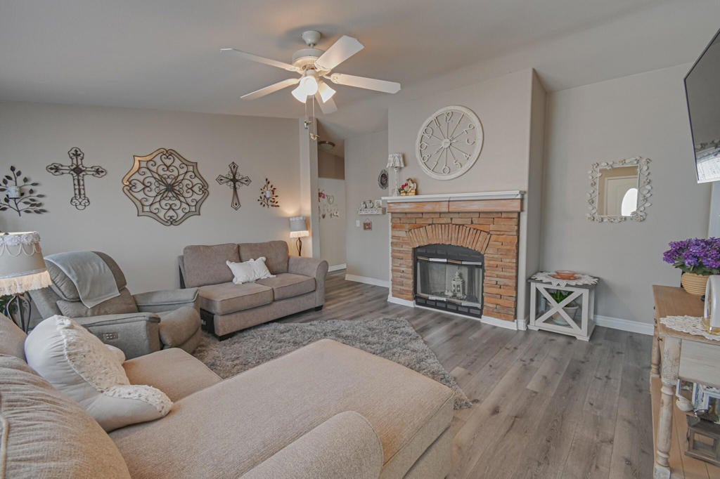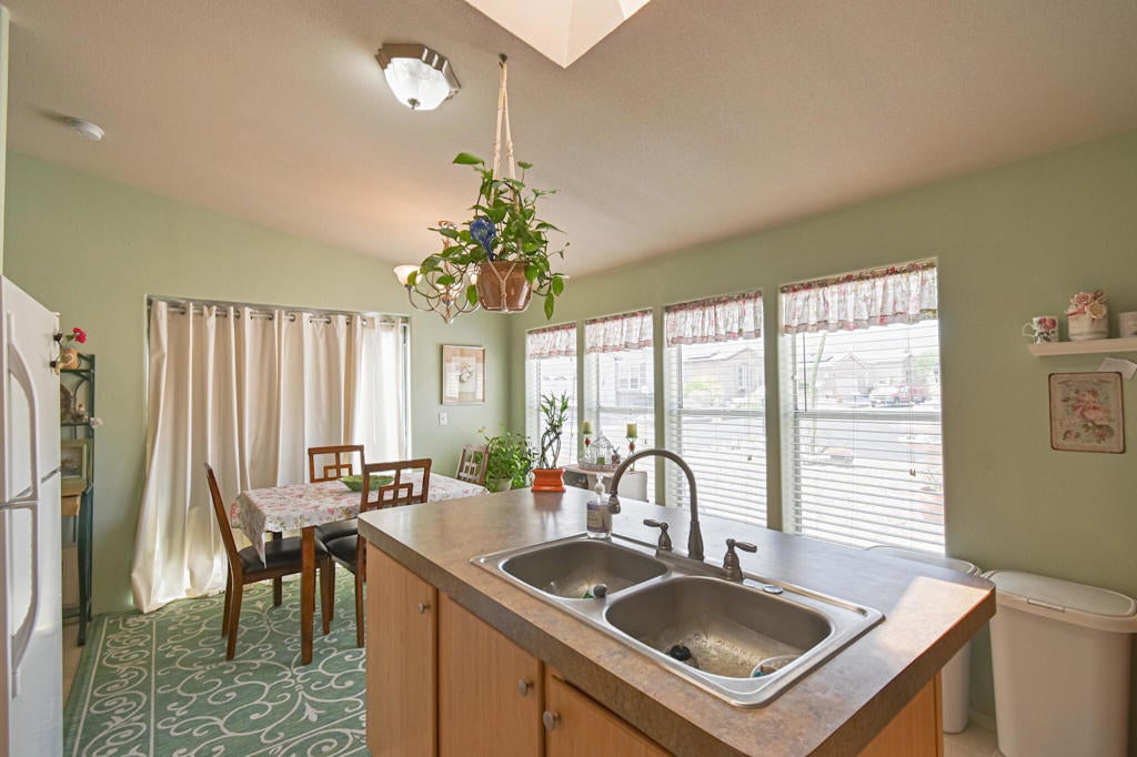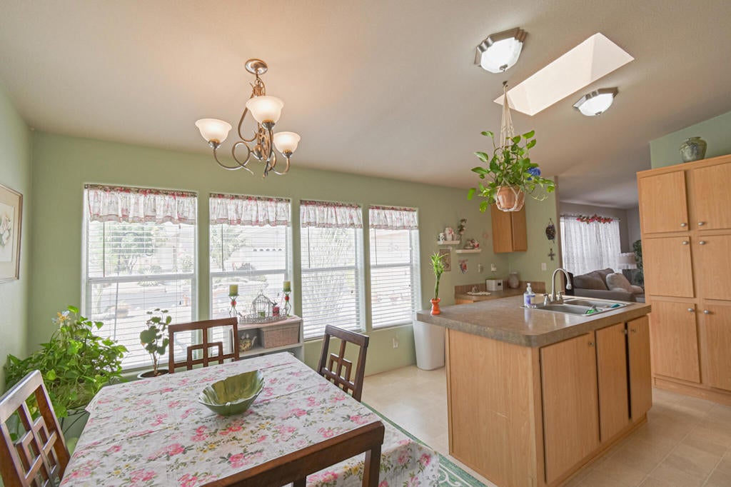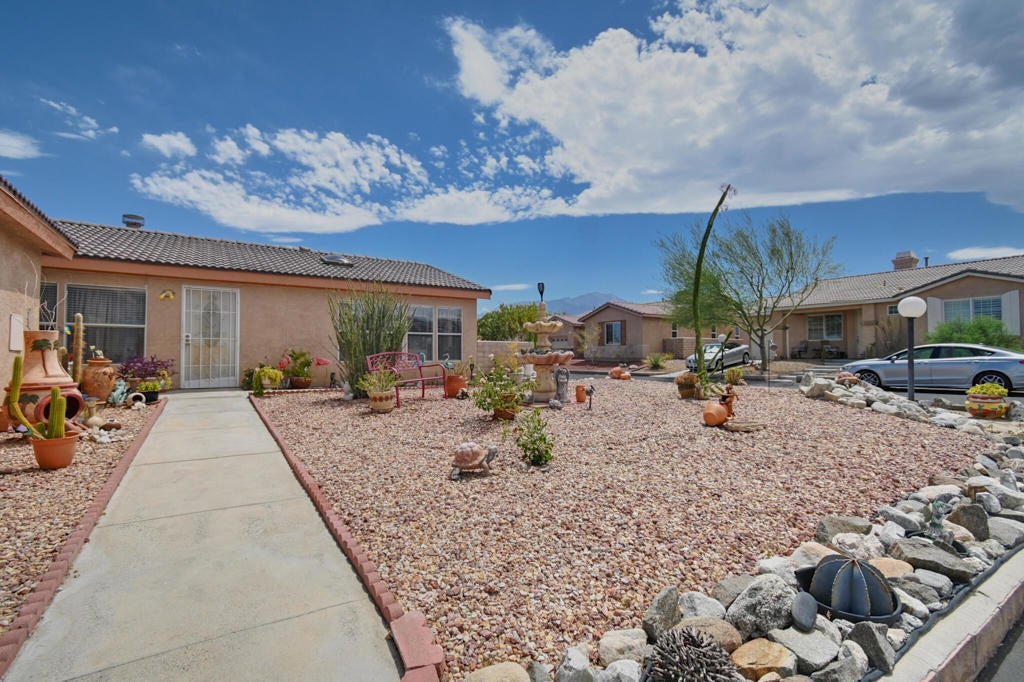 OUTSTANDING! 55+ Community large corner property with 3 bedrooms and two baths.The home is unique since it has a tile roof and stucco siding.....It offers beautiful unobstructed southerly views from the backyard. It has great potential to be a marvelous entertaining area! All appliances are included, and most furnishings are also included. The living room boasts a dramatic wood-burning stone fireplace.