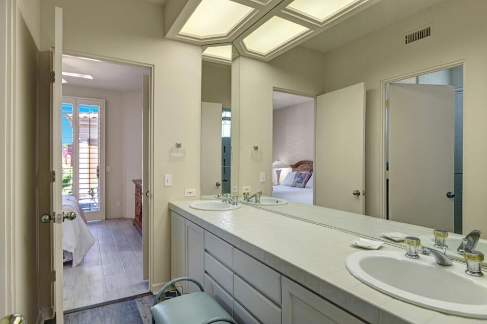 Desert Retreat in Indian Ridge Country Club! Available November 2025 - April 2026. Escape to this inviting seasonal lease where desert beauty and resort style living meet. From the south facing patio, take in sweeping views of the fairway, mountains, and tranquil lake while basking in the warm winter sun. Overlooking the 7th green of the Grove Course, the elevated patio is the perfect perch for a morning coffee or an evening glass of wine as golfers pass by. Inside, the great room design features a dual sided fireplace linking the living and family rooms, creating an open, welcoming space. A light filled kitchen with a sit down breakfast bar flows seamlessly into the family room - ideal for gathering with friends and loved ones. The step up dining room, accented with floor to ceiling mirrors, adds a touch of elegance. Throughout the home you'll find custom wood shutters, ceiling fans, abundant lighting, neutral tones, and tasteful furnishings. The serene primary suite is tucked off a private front courtyard, complemented by beautifully tiled baths for both primary and guest suites. Recent upgrades include a new soft water system and reverse osmosis drinking water. Landlord pays monthly HOA dues that include cable and wifi. Owners golf cart available for use! Indian Ridge stands as one of the desert's premier private country club communities, centrally located near Palm Springs, with easy access to I 10 and the airport. A true retreat to savor.
