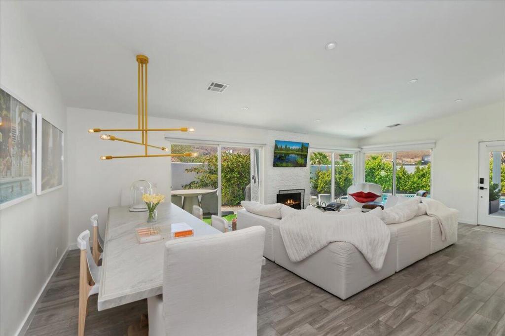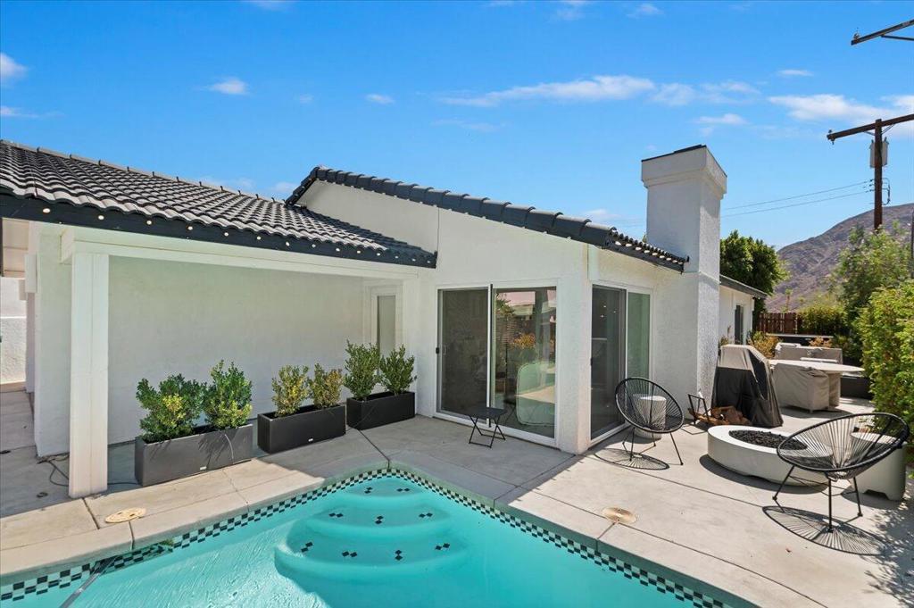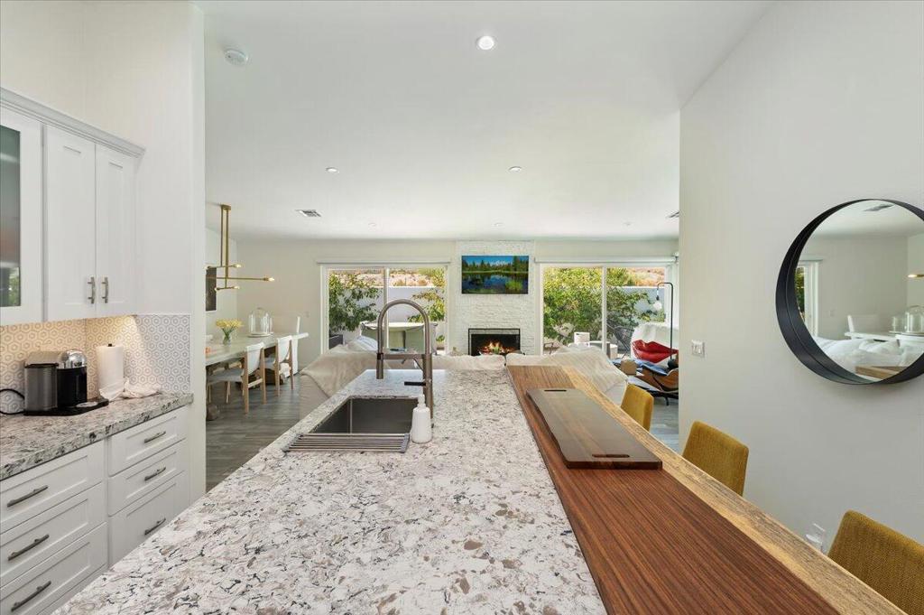 Located on an elevated corner lot in the sought-after La Quinta Cove, this beautifully maintained home offers a unique blend of style, comfort, and natural surroundings. Just steps from scenic hiking trails, the property captures impressive mountain vistas and a sense of peaceful seclusion. Inside, you'll find a light-filled, open floor plan that promotes easy living and entertaining. The living area features a sleek fireplace and flows effortlessly into a well-defined dining space, perfect for both casual meals and special occasions. The kitchen is thoughtfully designed with quality appliances, ample counter space, and a large island that serves as the heart of the home. The primary bedroom suite is a private retreat, complete with outdoor access and a peaceful sitting nook. The ensuite bathroom includes a spacious walk-in shower, double vanities, and plenty of storage. Outdoor living is equally inviting with several patio areas designed for lounging, dining, and entertaining under the stars. A covered section provides shade and comfort for year-round use. Additional features include updated HVAC systems for energy-efficient comfort. Whether you're looking for a tranquil escape or a stylish space to host, this home captures the best of desert living.