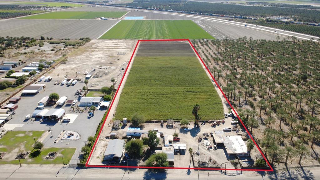 A rare opportunity to own a premier 10.25-acre ranch estate in Thermal, CA, zoned A-2-20 and offering a blend of privacy, income potential, and development flexibility. The property features one private well, 80 feet deep, servicing both domestic and agricultural needs. Approximately 8.5 acres are currently producing fruits and vegetables, with expansive mountain views and direct access from a paved road. Located less than 15 minutes from the exclusive Thermal Club and under 10 minutes to Jacqueline Cochran Regional Airport, the property is ideally situated for motorsport enthusiasts, private aviation travelers, or short-term rental investors catering to a luxury market. Zoning allows for a wide range of possibilities, including building a custom estate, equestrian facilities, a vineyard, or a private retreat. With its prime location, natural beauty, and endless potential, this ranch presents an extraordinary investment opportunity in the Coachella Valley. Una oportunidad unica para ser propietario de un exclusivo rancho de 10.25 acres en Thermal, CA, con zonificacion A-2-20 y que ofrece una combinacion de privacidad, potencial de ingresos y flexibilidad de desarrollo. La propiedad cuenta con un pozo privado de 80 pies de profundidad que abastece tanto las necesidades domesticas como agricolas. Aproximadamente 8.5 acres estan actualmente en produccion, cultivando frutas y verduras, con impresionantes vistas a las montanas y acceso directo desde una calle pavimentada. Ubicada a menos de 15 minutos del exclusivo Thermal Club y a menos de 10 minutos del Aeropuerto Regional Jacqueline Cochran, esta propiedad es ideal para entusiastas del automovilismo, viajeros de aviacion privada o inversionistas interesados en rentas de corto plazo para un mercado de lujo. La zonificacion permite una variedad de usos, como construir una residencia personalizada, instalaciones ecuestres, un vinedo o un centro de retiro privado. Por su ubicacion privilegiada, belleza natural y enorme potencial, este rancho representa una oportunidad de inversion extraordinaria en el Valle de Coachella.