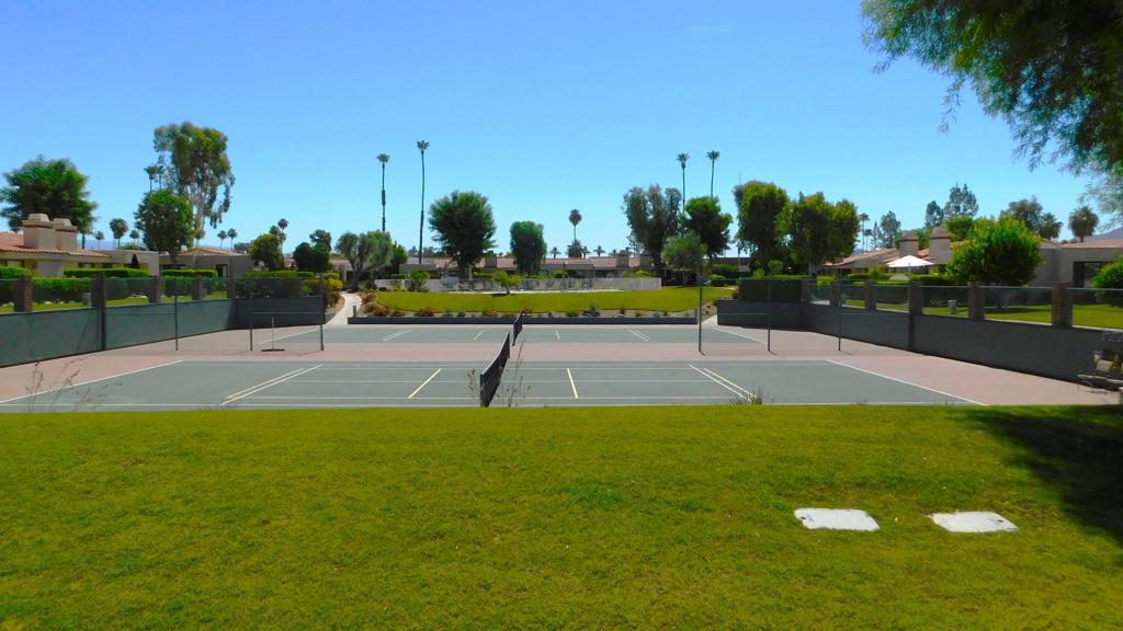 Turnkey furnished, seasonal rental. The best kept secret in the valley, Monterey Sands is a hidden gem. A gated community of 50 homes hidden away with two beautiful swimming pools and spas, plus tennis & pickleball courts. This two bedroom, two bathroom condo has been beautifully updated with a gorgeous upgraded kitchen, and bathrooms. All with new flooring and new paint. Take in the beautiful views while you bar-b-que and relax on your own large patio. Located within walking distance of College of the Desert, a short drive to El Paseo and all the shopping and dining it has to offer, the McCallum Theater. Restaurants, shopping and entertainment in this area abound and this condo is near it all. Summer Rate: $3000/MonthNovember - December: $3500/MonthJanuary - April: $4500/MonthSecurity Deposit: $2500Cleaning Fee: $300Utilities are capped at $150/MonthNot Available December 2025 through March 2026.