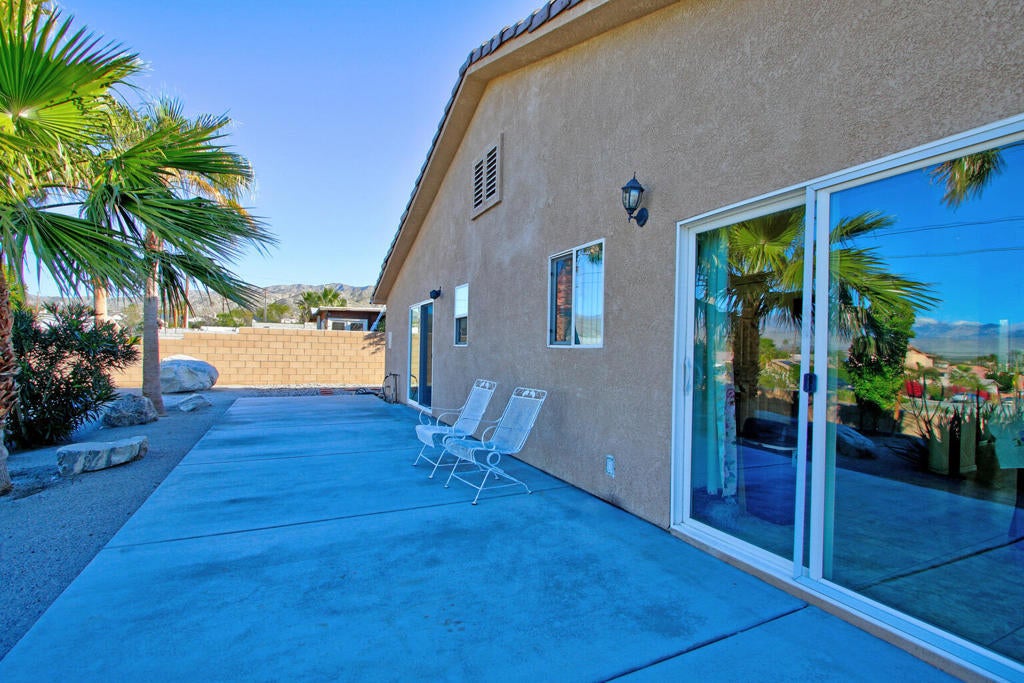 Welcome to The Desert Lifestyle! This 4 bd, 2 ba beautiful newer home was built on 2018 with 1,650 sqft, sits on an elevated lot. The front yard with professional landscaping designed invites you to enter into the impressive open floor plan with vaulted ceilings, and nice tile flooring throughout. Living room combined with dining area leads you towards the delightful kitchen featuring nice granite countertops, backsplashes, and abundant cabinetry. Master bedroom features walk-in closet, granite counters, and slided door. Step outside to your private oasis, dive into the tranquility of the backyard meticulously designed with rocks and palm trees. Two cars garage, very calm neighborhood. Enjoy the amazing mountain and city views. Desert Hot Springs is conveniently located minutes away from Hwy 1-10, Palm Springs Airport, Nice restaurants, casinos, and surrounded Desert Cities. This gems offers Solar Panels to avoid high electricity bills during summer. No HOA, you own the land.