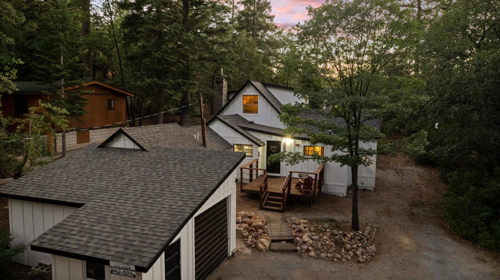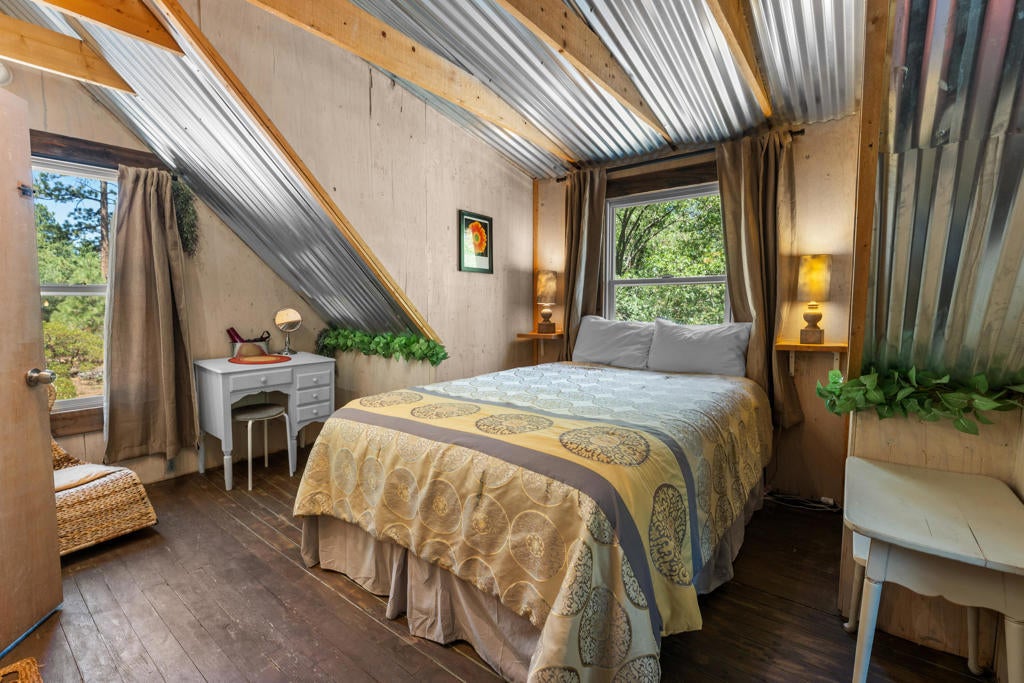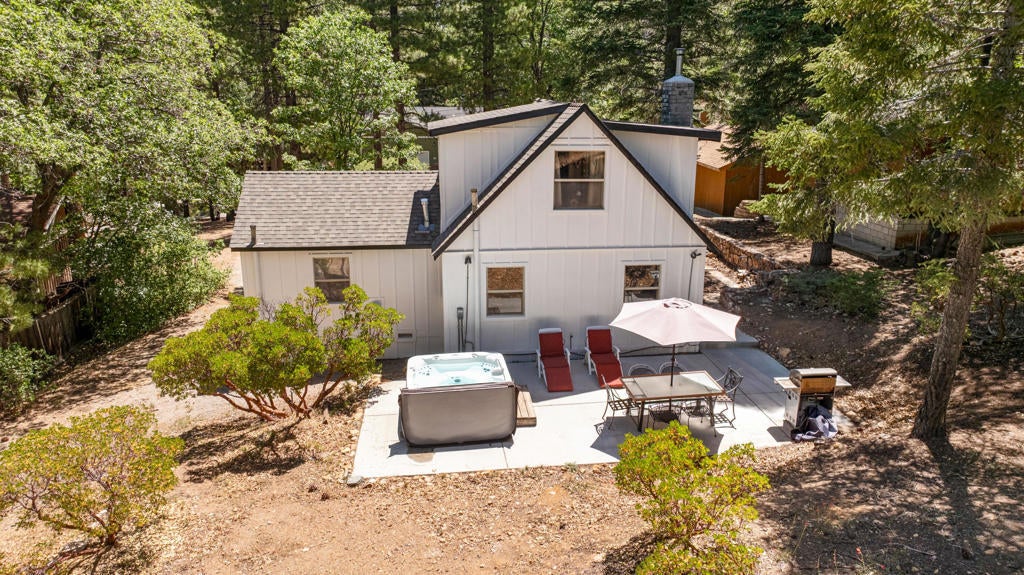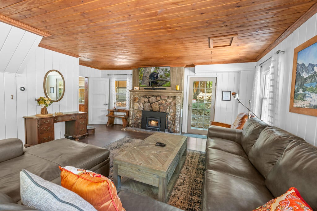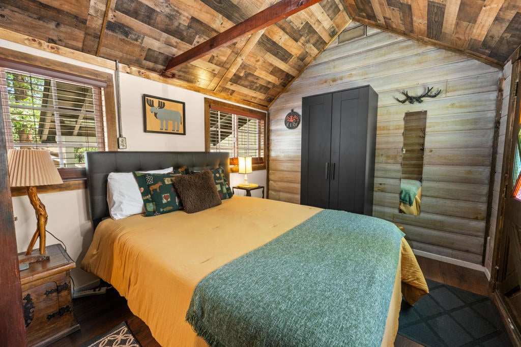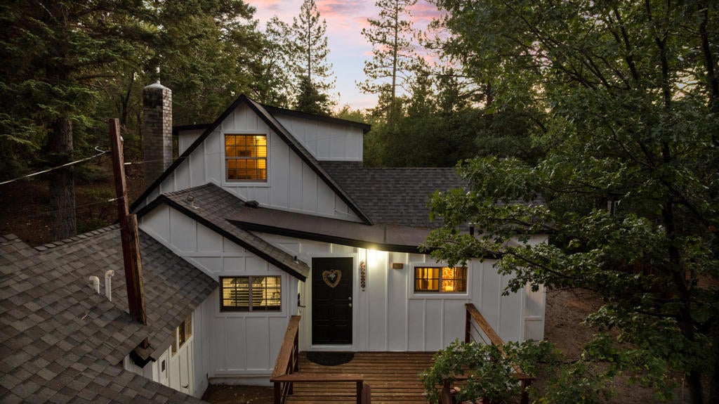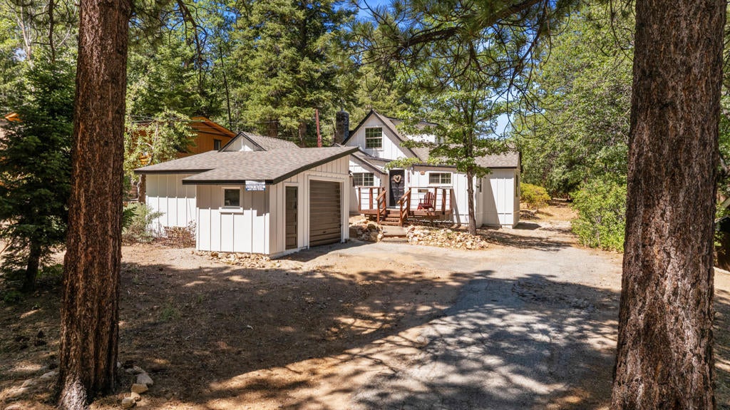 Step into a home that tells a story stretching back nearly a century--an enchanting and authentic Big Bear cabin that blends vintage charm with thoughtful updates. Tucked away on a huge, well-treed lot, this magical retreat offers a quiet, private setting just moments from the best of Big Bear: only 4 blocks to the lake, 5 blocks to the Village, and a mere 2 minutes to the ski slopes. National Forest access and the popular Town Trail are right around the corner. Inside, you'll find real wood floors, vaulted ceilings, and the warm glow of knotty pine T&G throughout. A beautiful rock fireplace anchors the living space, perfect for cozy winter evenings. The updated kitchen features new cabinets and stylish finishes, while the bathroom has been refreshed with a new sink and copper piping. A tankless water heater adds modern convenience, and a newer concrete patio off the back invites you to relax under the pines in your secluded backyard. With a bedroom and full bath on the main level plus a spacious loft-style suite upstairs, this cabin is ideal as a full-time home, weekend getaway, or vacation rental with excellent income potential. Fresh brand-new siding gives the home a crisp look while preserving its original spirit. This is more than a cabin--it's a piece of Big Bear history, lovingly refreshed for the next chapter. Whether you're hitting the slopes, hiking out your front door, or strolling to dinner in the Village, the location couldn't be more perfect. Don't miss this rare opportunity to own a true mountain gem.