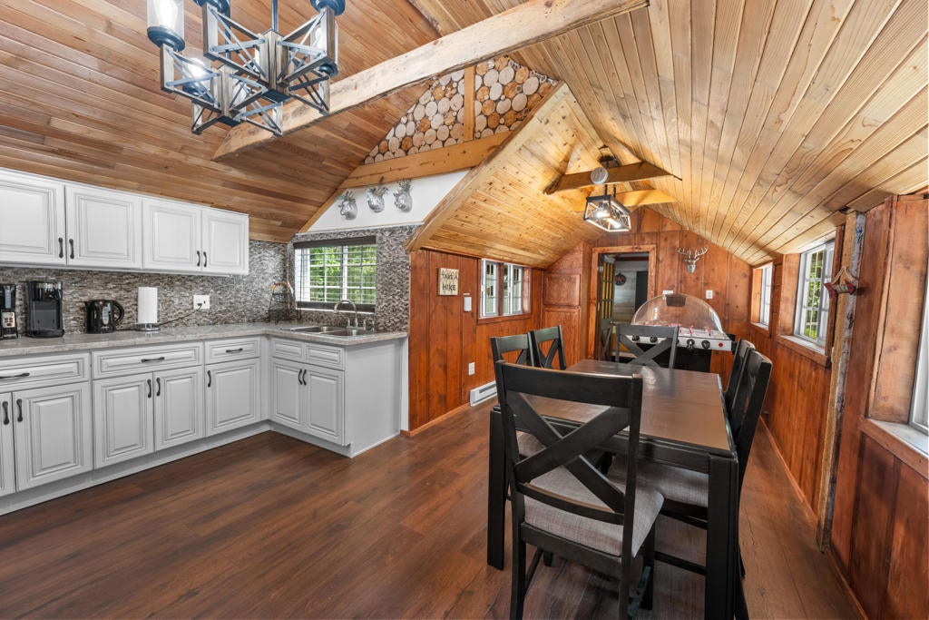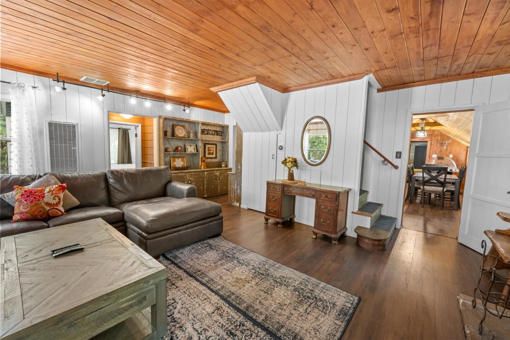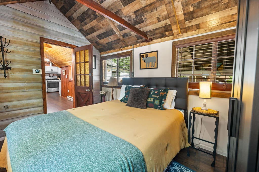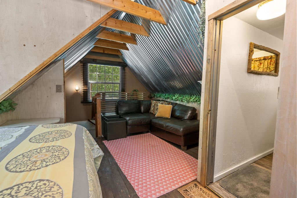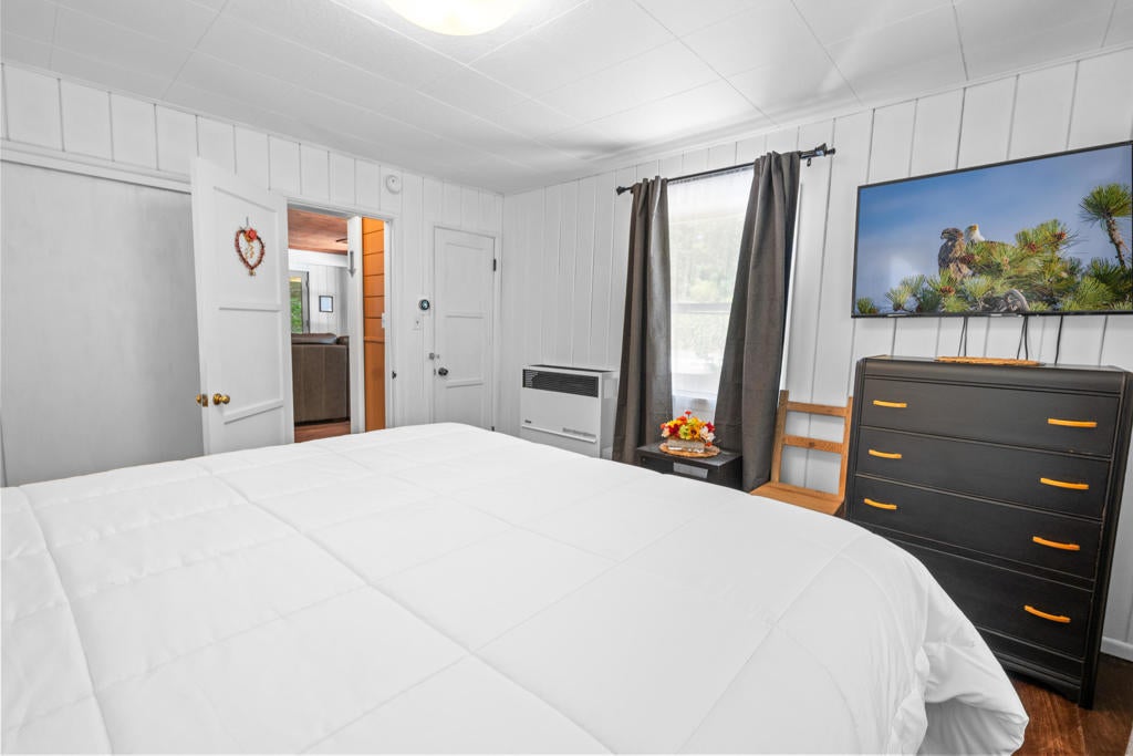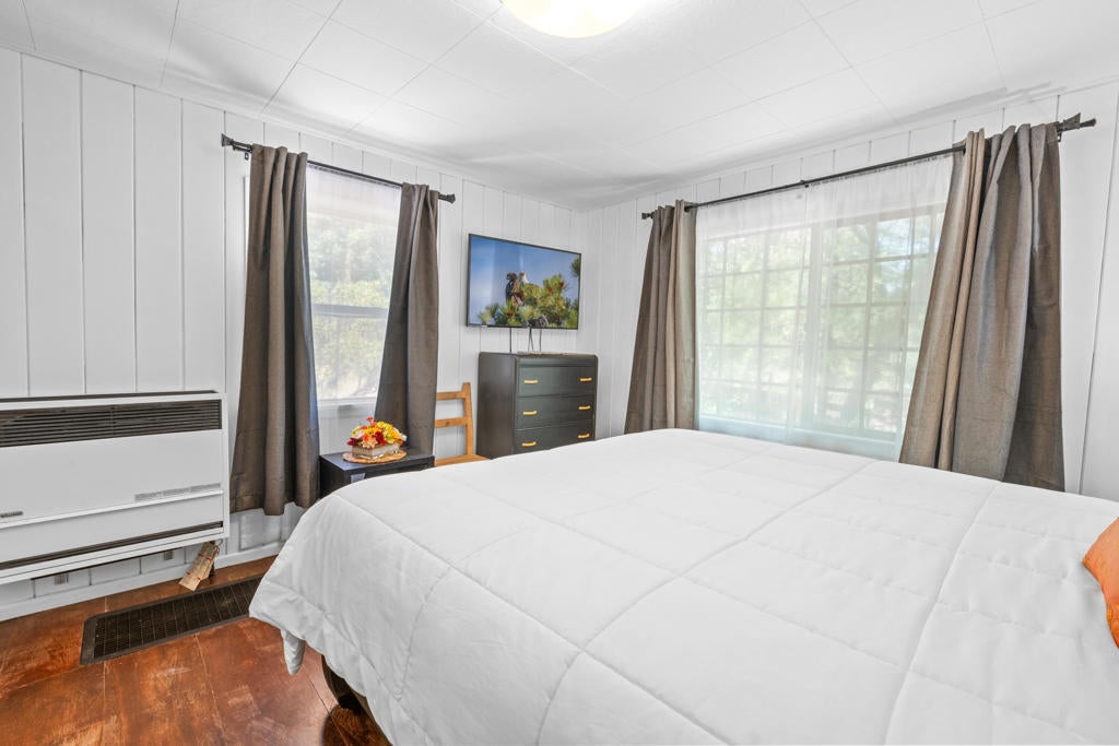 Step into a home that tells a story stretching back nearly a century--an enchanting and authentic Big Bear cabin that blends vintage charm with thoughtful updates. Tucked away on a huge, well-treed lot, this magical retreat offers a quiet, private setting just moments from the best of Big Bear: only 4 blocks to the lake, 5 blocks to the Village, and a mere 2 minutes to the ski slopes. National Forest access and the popular Town Trail are right around the corner. Inside, you'll find real wood floors, vaulted ceilings, and the warm glow of knotty pine T&G throughout. A beautiful rock fireplace anchors the living space, perfect for cozy winter evenings. The updated kitchen features new cabinets and stylish finishes, while the bathroom has been refreshed with a new sink and copper piping. A tankless water heater adds modern convenience, and a newer concrete patio off the back invites you to relax under the pines in your secluded backyard. With a bedroom and full bath on the main level plus a spacious loft-style suite upstairs, this cabin is ideal as a full-time home, weekend getaway, or vacation rental with excellent income potential. Fresh brand-new siding gives the home a crisp look while preserving its original spirit. This is more than a cabin--it's a piece of Big Bear history, lovingly refreshed for the next chapter. Whether you're hitting the slopes, hiking out your front door, or strolling to dinner in the Village, the location couldn't be more perfect. Don't miss this rare opportunity to own a true mountain gem.