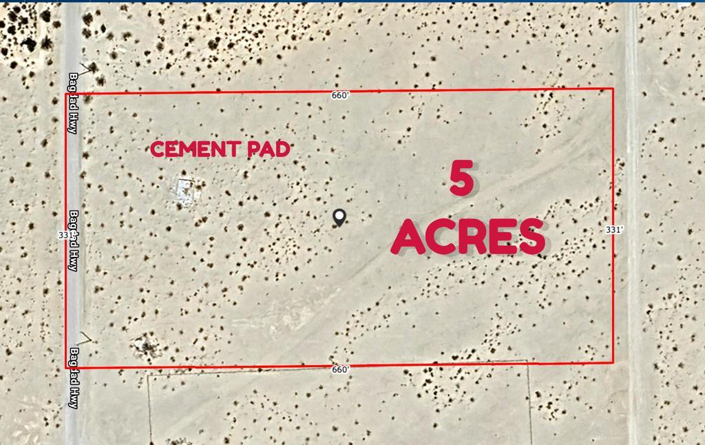 BAGDAD HIGHWAY, 29 PALMS $29,000.00: This 5 acres features a well-maintained dirt road located about a mile north of a paved road, ensuring easy accessibility. Water and power utilities are available along the street in front of the land.. It includes cement pad. Land offers beautiful views of the surrounding hills. The property is situated near the 29 Palms Marine base. A chain link fence along its southern boundary. A fire hydrant is conveniently located nearby. Might have old survey markers on land. The neighborhood boasts a variety of pleasant homes, creating a nice residential environment. Owner will carry loan of $23,200.00 with 20% down $5,800.00 @ 7% interest amortized over 5 years payable $459.39 per month + $15.00 month loan service fee. APN 0622-251-35-0000.DIRECTIONS: From Adobe Road take a right on Amboy Road to left on Bagdad Highway go up a few miles on the paved road then dirt road about a mile. Land is on right side look for FOR SALE sign. Also land is one lot north of 3073 Bagdad Hwy.(google address)