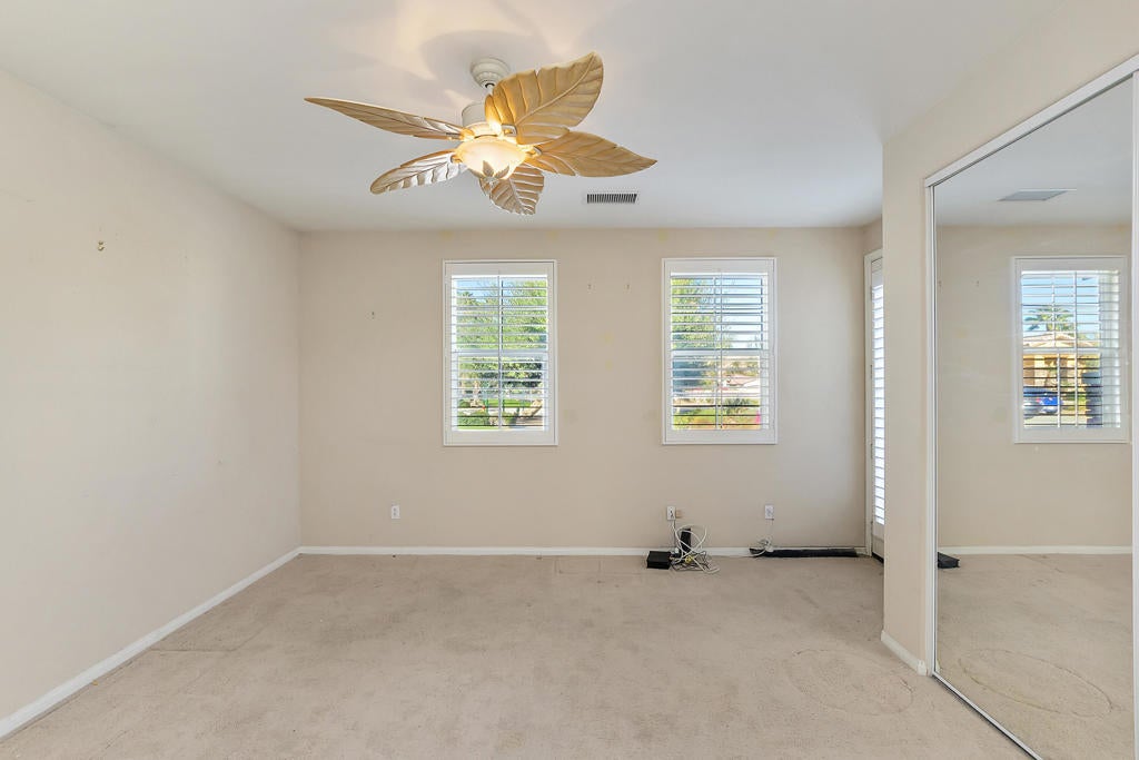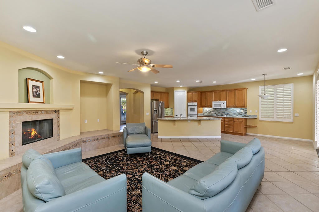 Hurry!! Lowest & Best Priced Home in Gated sought after Tuscany Community! Ideal for a 1031 tax-deferred Exchange !!This home has a lot to offer.... most of the home has been remodeled from the original plan.... includes the Private Courtyard which leads into the elegant foyer, inviting gourmet spacious kitchen, decorative tile flooring, ceilings fans, Great Room w/ fireplace, wood shutters. and spacious master bedroom and master bath suite with soaking tub and separate shower, plus a walk-in closet. Also Popular in this well -designed model is the 2nd Master bedroom/Casita like with separate entrance from the private front entrance courtyard ! You'll find French doors leading out to the large covered patio and a glorious private backyard professionally landscaped with views of the Jacinto mountains and Amazing Sunsets ! You're going appreciate the low HOA fees of only $227 per month which includes cable and internet...plus just steps away to the Community Pool & Spa. Also featured behind Tuscany's Gated Community it has blocks of Open space with paved sidewalks for strolling around the neighborhood or jogging etc. along with a Dog Park and Tot Lot.