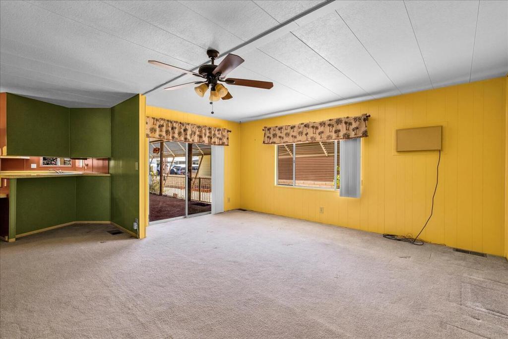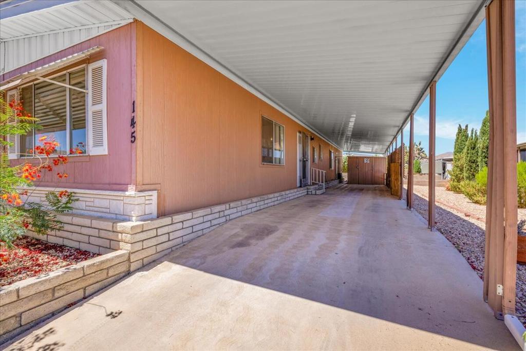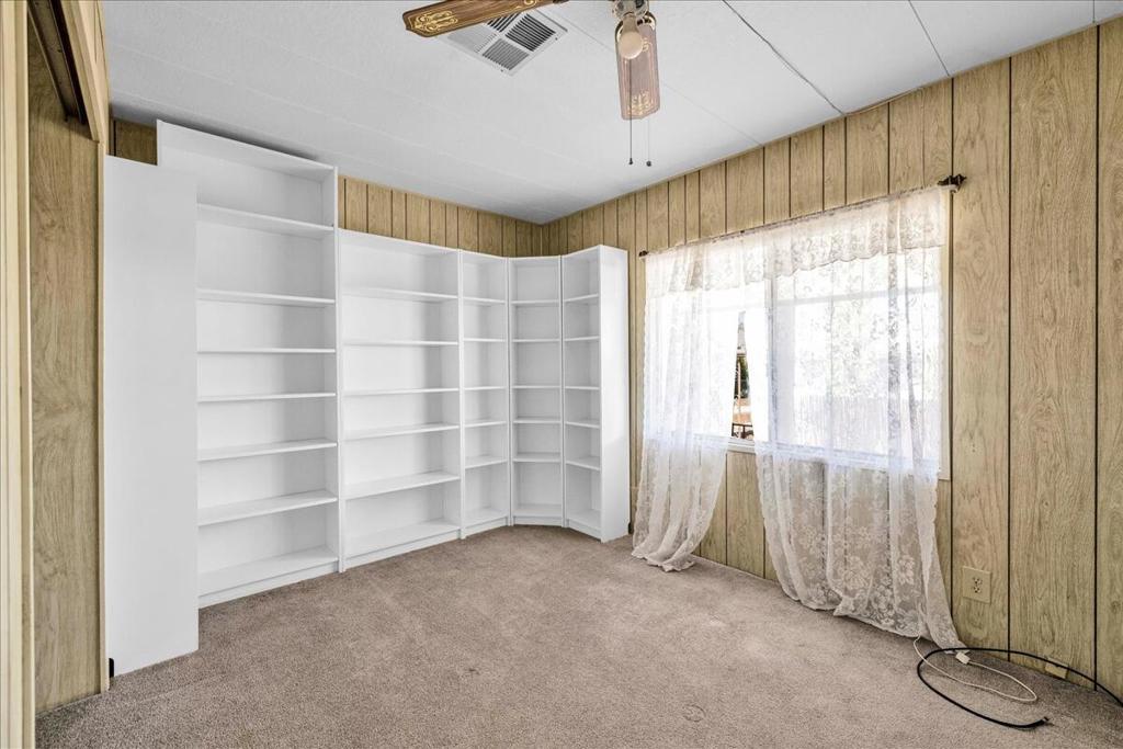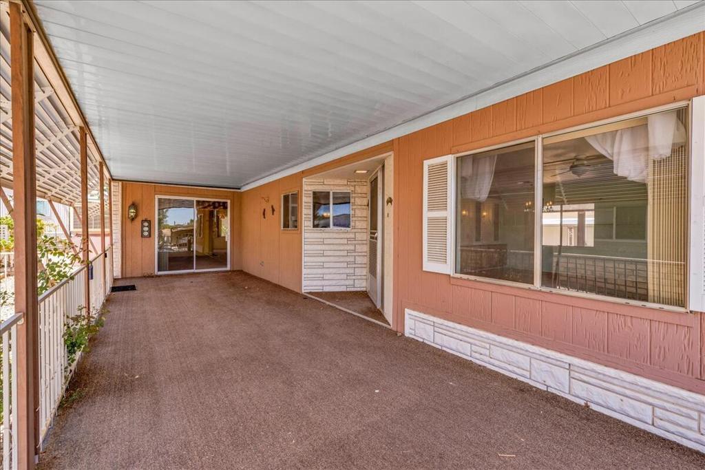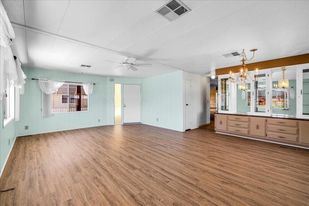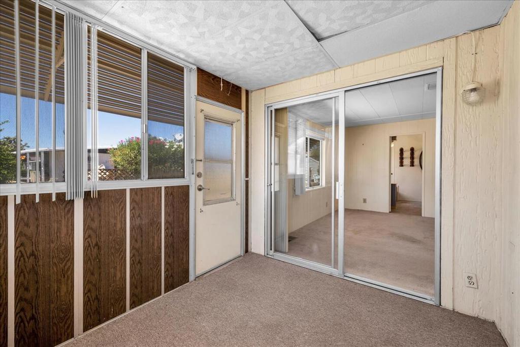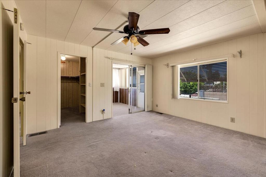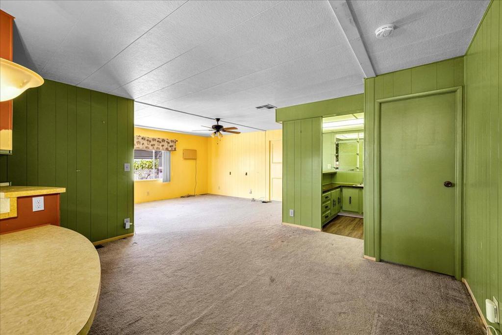 This vintage manufactured home in the wonderful 55+ Gates of Spain Mobile Estates is a fantastic opportunity! This 2 bedroom/2 bath home has wonderful vintage features and can be enjoyed as-is or bring your contractor and designer to raise this home to a new standard of living. With 1856 square feet of space, this is one of the larger homes in the park. Through your front door is a grand living room with brand-new floors and a built-in china cabinet. The groovy curved kitchen has lots of storage, spacious pantry and 5 burner cook top. The kitchen is open to a large family room with wet bar - perfect for entertaining. The primary bedroom has a walk-in closet and a slider to an enclosed patio. The primary bathroom has separate tub and shower and is filled with original vintage detail. The laundry room is big too, with more room for storage. The guest bedroom has been outfitted with rows of bookshelves - perfect for a voracious reader or collector! The front patio is spacious and bathed in light. Carport can easily fit two cars, and possibly three. An 8x12 shed with electricity can be a workshop or simply a great place to store seasonal decor or collectibles. Gates of Spain has a community club house with pool and an indoor spa/hot tub. Trash service is included in the space rent. Prospective buyers must apply for residency with the park manager. Space rent is currently $734/month. The space rent for the new owner may be different/higher than what is paid by the current owner. Come see it today!