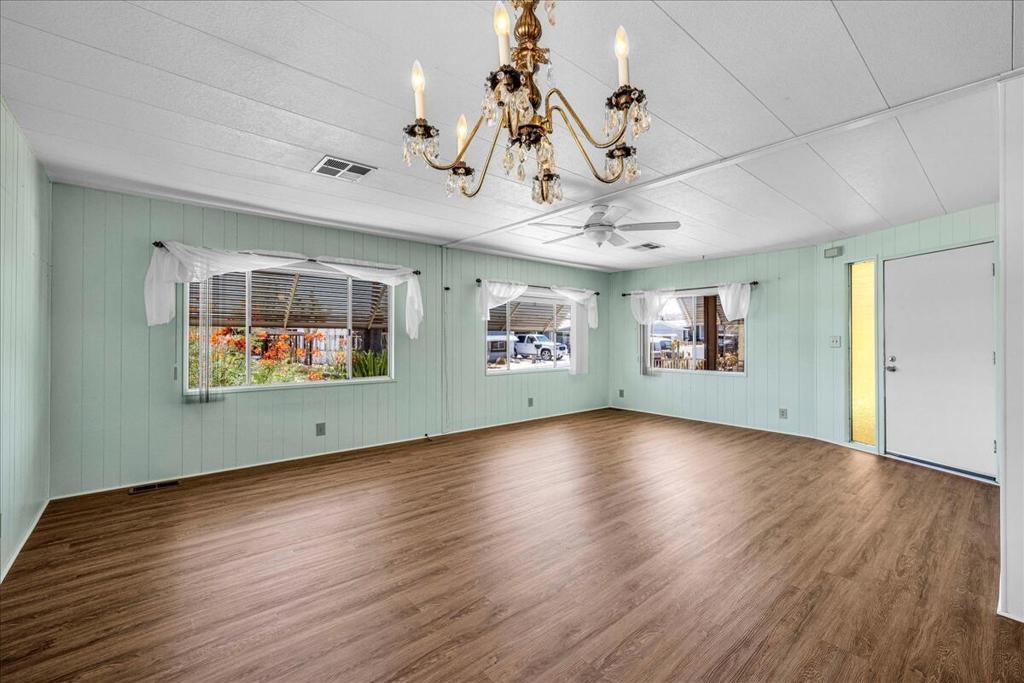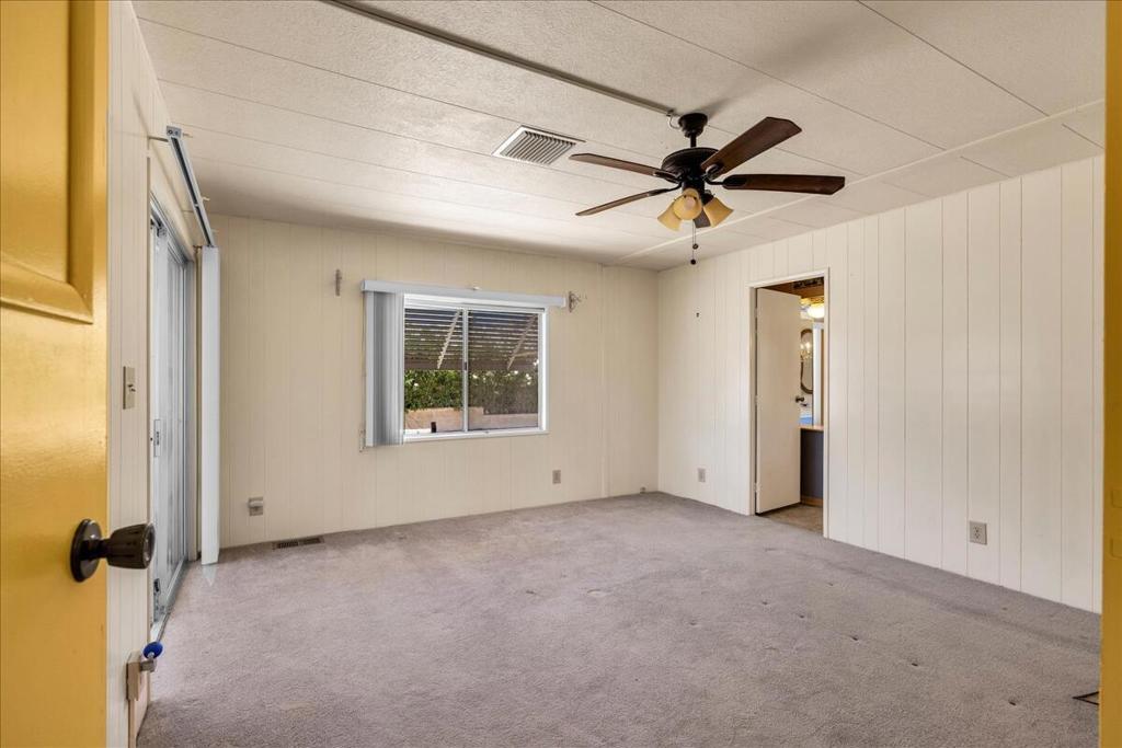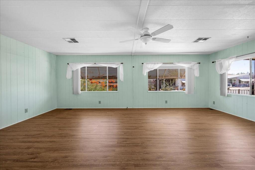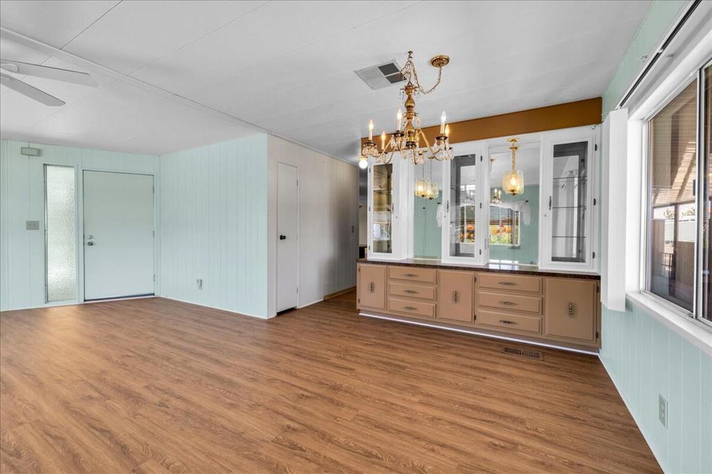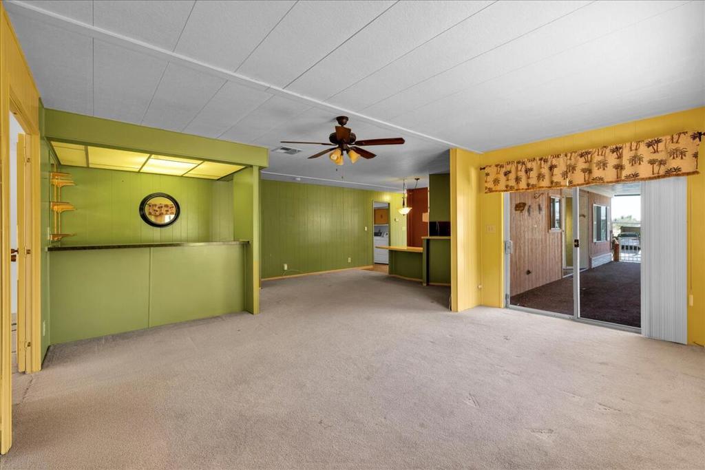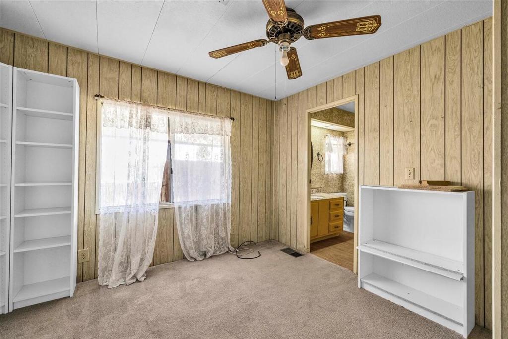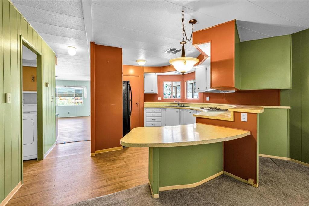 This vintage manufactured home in the wonderful 55+ Gates of Spain Mobile Estates is a fantastic opportunity! This 2 bedroom/2 bath home has wonderful vintage features and can be enjoyed as-is or bring your contractor and designer to raise this home to a new standard of living. With 1856 square feet of space, this is one of the larger homes in the park. Through your front door is a grand living room with brand-new floors and a built-in china cabinet. The groovy curved kitchen has lots of storage, spacious pantry and 5 burner cook top. The kitchen is open to a large family room with wet bar - perfect for entertaining. The primary bedroom has a walk-in closet and a slider to an enclosed patio. The primary bathroom has separate tub and shower and is filled with original vintage detail. The laundry room is big too, with more room for storage. The guest bedroom has been outfitted with rows of bookshelves - perfect for a voracious reader or collector! The front patio is spacious and bathed in light. Carport can easily fit two cars, and possibly three. An 8x12 shed with electricity can be a workshop or simply a great place to store seasonal decor or collectibles. Gates of Spain has a community club house with pool and an indoor spa/hot tub. Trash service is included in the space rent. Prospective buyers must apply for residency with the park manager. Space rent is currently $734/month. The space rent for the new owner may be different/higher than what is paid by the current owner. Come see it today!