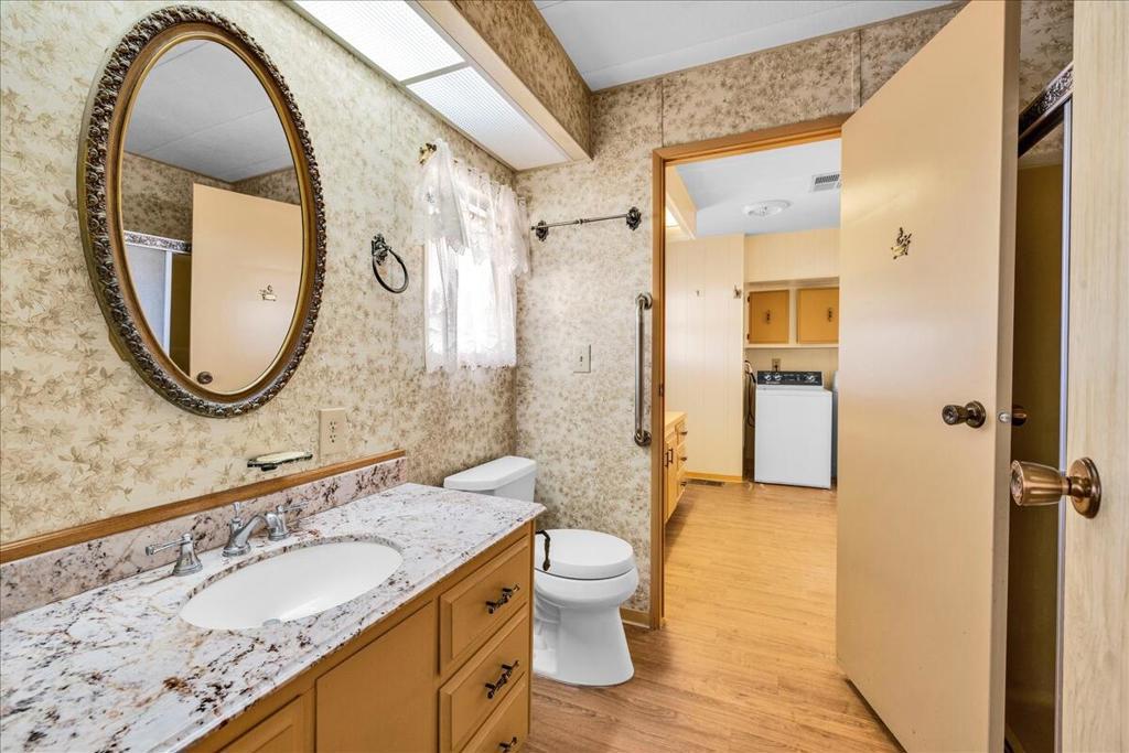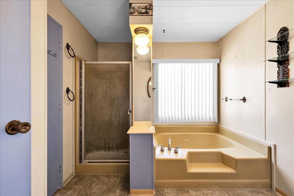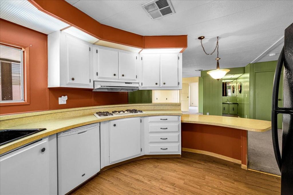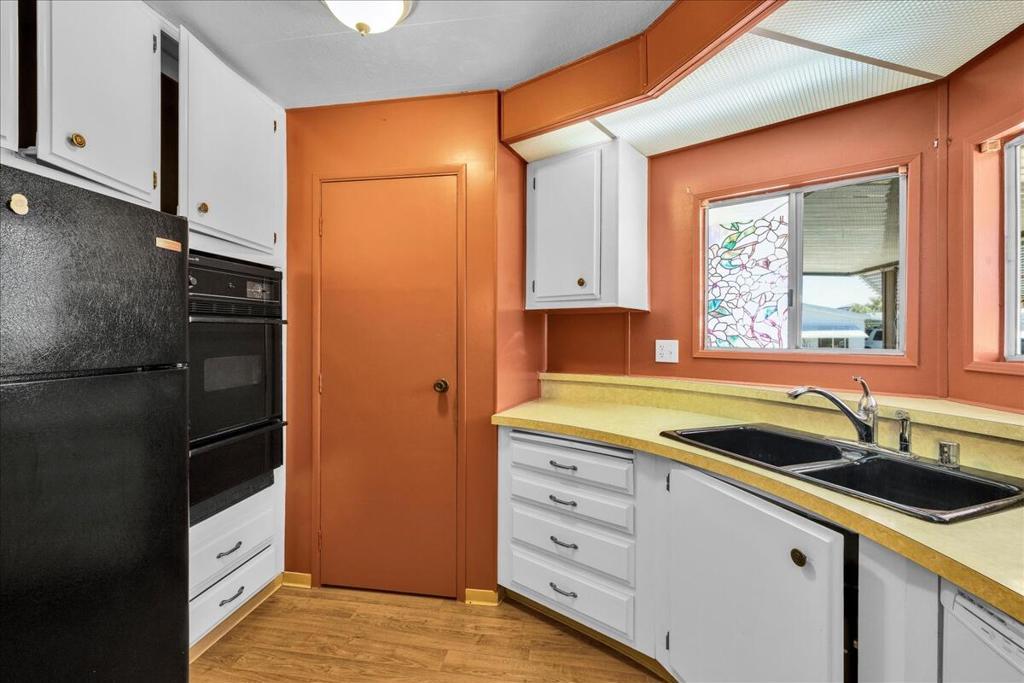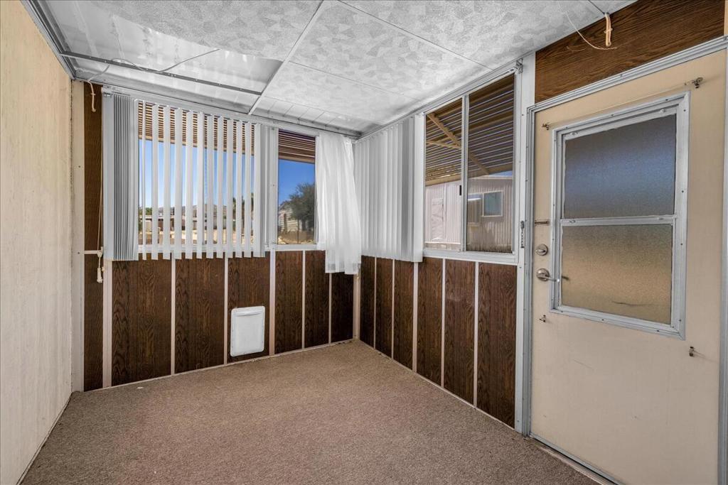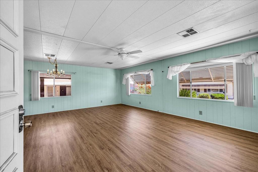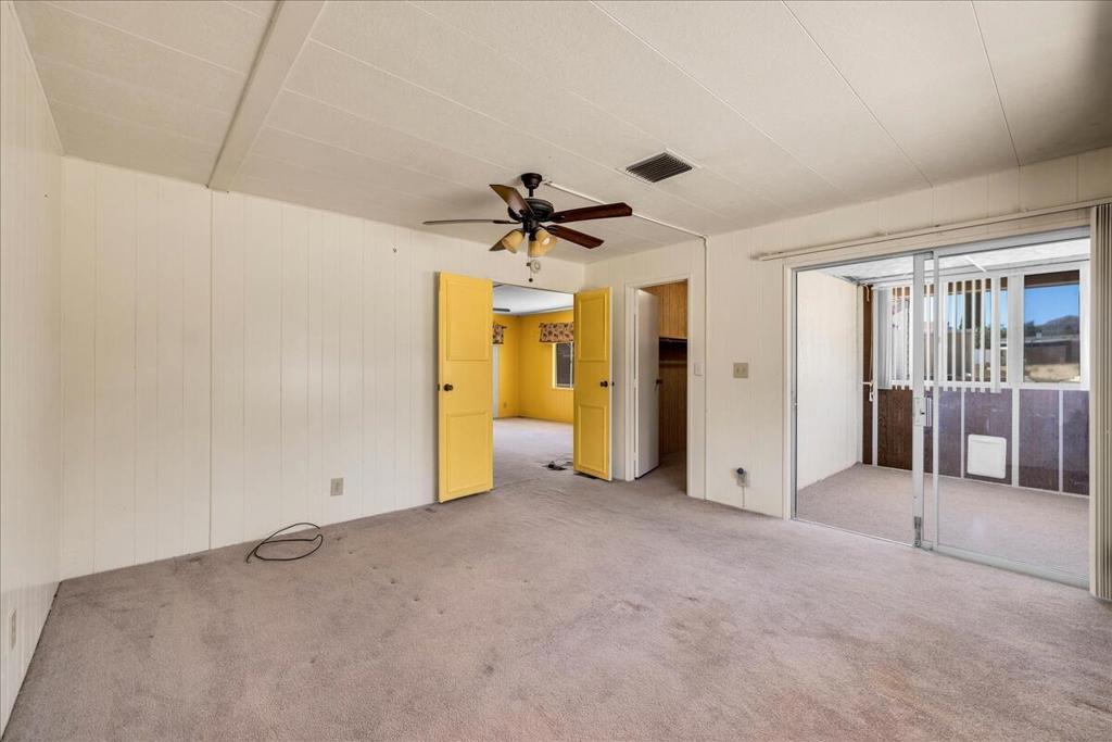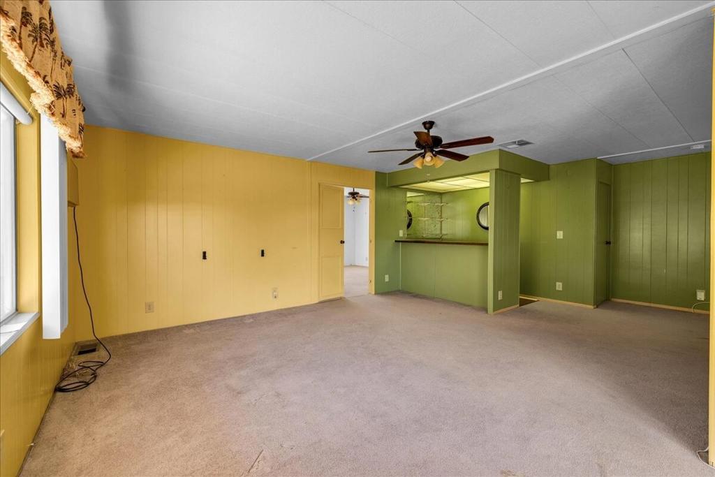 This vintage manufactured home in the wonderful 55+ Gates of Spain Mobile Estates is a fantastic opportunity! This 2 bedroom/2 bath home has wonderful vintage features and can be enjoyed as-is or bring your contractor and designer to raise this home to a new standard of living. With 1856 square feet of space, this is one of the larger homes in the park. Through your front door is a grand living room with brand-new floors and a built-in china cabinet. The groovy curved kitchen has lots of storage, spacious pantry and 5 burner cook top. The kitchen is open to a large family room with wet bar - perfect for entertaining. The primary bedroom has a walk-in closet and a slider to an enclosed patio. The primary bathroom has separate tub and shower and is filled with original vintage detail. The laundry room is big too, with more room for storage. The guest bedroom has been outfitted with rows of bookshelves - perfect for a voracious reader or collector! The front patio is spacious and bathed in light. Carport can easily fit two cars, and possibly three. An 8x12 shed with electricity can be a workshop or simply a great place to store seasonal decor or collectibles. Gates of Spain has a community club house with pool and an indoor spa/hot tub. Trash service is included in the space rent. Prospective buyers must apply for residency with the park manager. Space rent is currently $734/month. The space rent for the new owner may be different/higher than what is paid by the current owner. Come see it today!