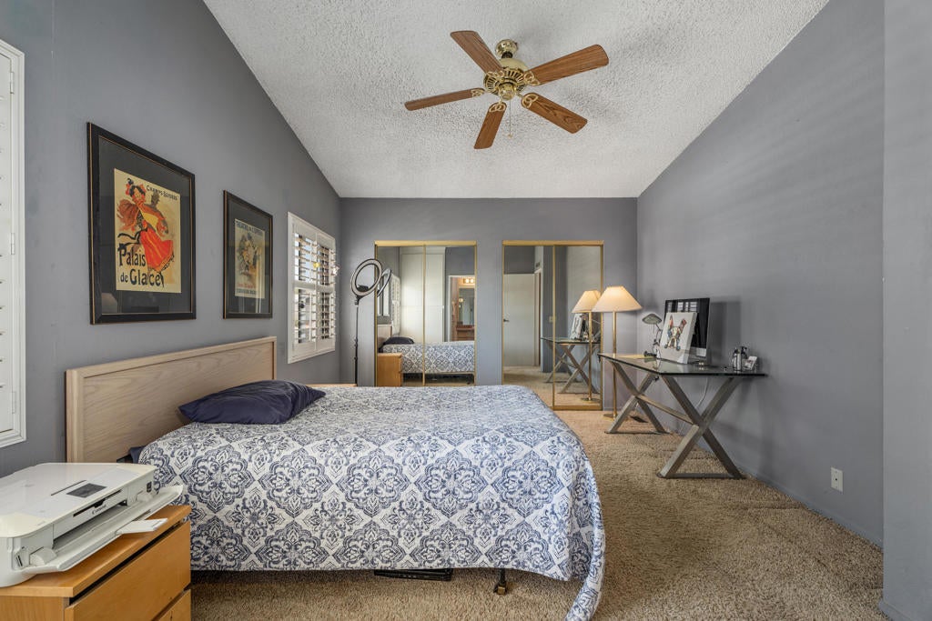 RIDICULOUSLY LOW PRICE just 7 MILES to Palm Springs! This 1,430 sq ft, 2 bedroom + den, 2 bathroom former model home has been lovingly maintained by the original owner. Features include large, covered, elevated front porch, two primary bedroom suites complete with en-suite bathrooms, vaulted ceilings with ceiling fans throughout, large den/bonus room with separate sliding patio door front porch access, stainless steel kitchen appliances with gas cooktop, tandem two car attached carport with large storage room and low maintenance desert-scape landscaping. Partially furnished too. Great price for this quiet, comfy home in the guard-gated Vista Montana community in Desert Hot Springs. Rather than haggle over price or repairs, the Trust has priced this home to sell! Community amenities include: clubhouse, 2 pools & spas, fitness room, billiard room, card room, hobby room, outdoor shuffleboard courts and a dog park. This 55+ active seniors community is predominantly fee land but this home is on leased land. The land is available for purchase from the original developer for $48,500. as a separate transaction, or the home may also be purchased and moved to another location. Pet Restriction: 30 pound maximum. Don't miss this affordable opportunity for freedom, friendship and fun!