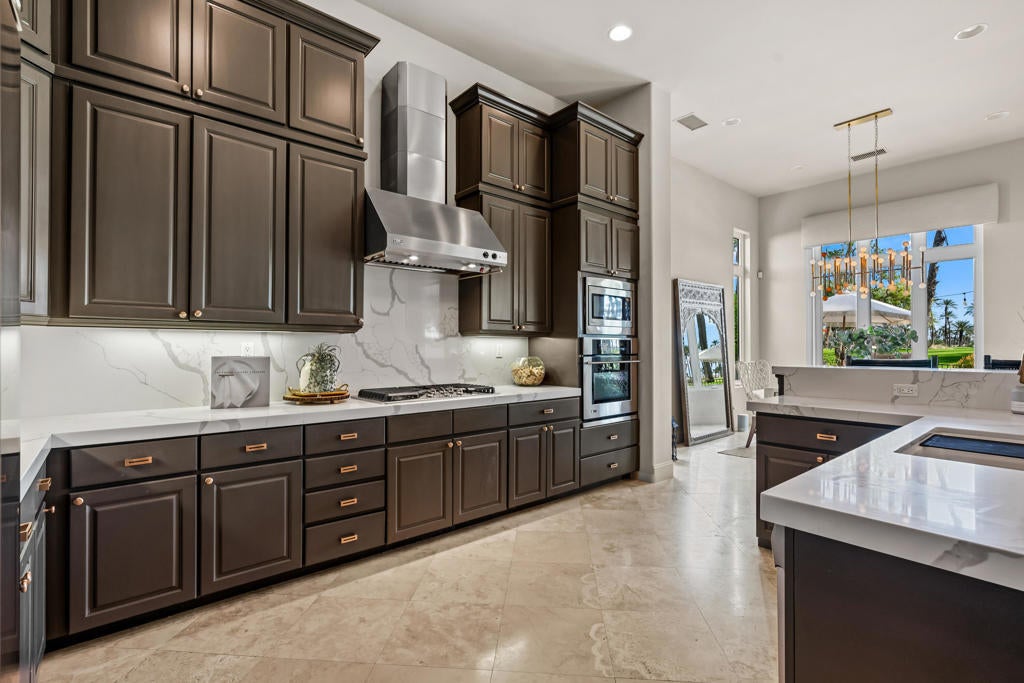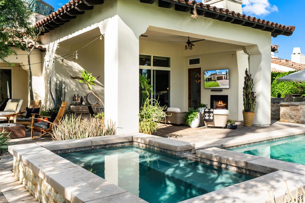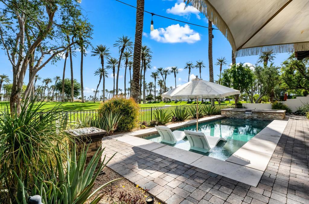 Tucked behind the gates of the exclusive Palms Golf Club, this single-level transitional Spanish villa sits proudly on the 10th tee box -- a front-row seat to the desert's most coveted views. Designed with soul and intention, every inch of this 3-bedroom + den/office retreat has been curated for the discerning guest who values beauty, privacy, and connection.Step through the private courtyard and into a home where light, texture, and clean lines bring timeless warmth to modern living. Vaulted ceilings, hand-selected furnishings, and natural materials create a seamless blend of California casual and European-inspired elegance. The heart of the home -- a chef's kitchen with quartz counters, stainless appliances, and a custom bar -- opens to a sunlit great room, where oversized glass doors lead to the show-stopping backyard.Outdoors, life unfolds around the pool, spa, and rustic-modern fire feature. Host alfresco dinners under the stars in the outdoor kitchen and dining pavilion, unwind in the spa after a round of golf, or gather for golden hour cocktails as the sun melts over the fairway. Every space is built for celebration, conversation, and restoration.The primary suite offers a tranquil escape with a king bed, soaking tub, and serene views. A private guest room with queen bed ensures comfort for visitors, while the detached casita -- with its own entrance and king bed -- offers a luxury stay all its own.This is not just a home -- it's a destination. A place where mornings begin slowly, afternoons are meant for play, and every evening invites connection. Now booking for the 2025/2026 season.'