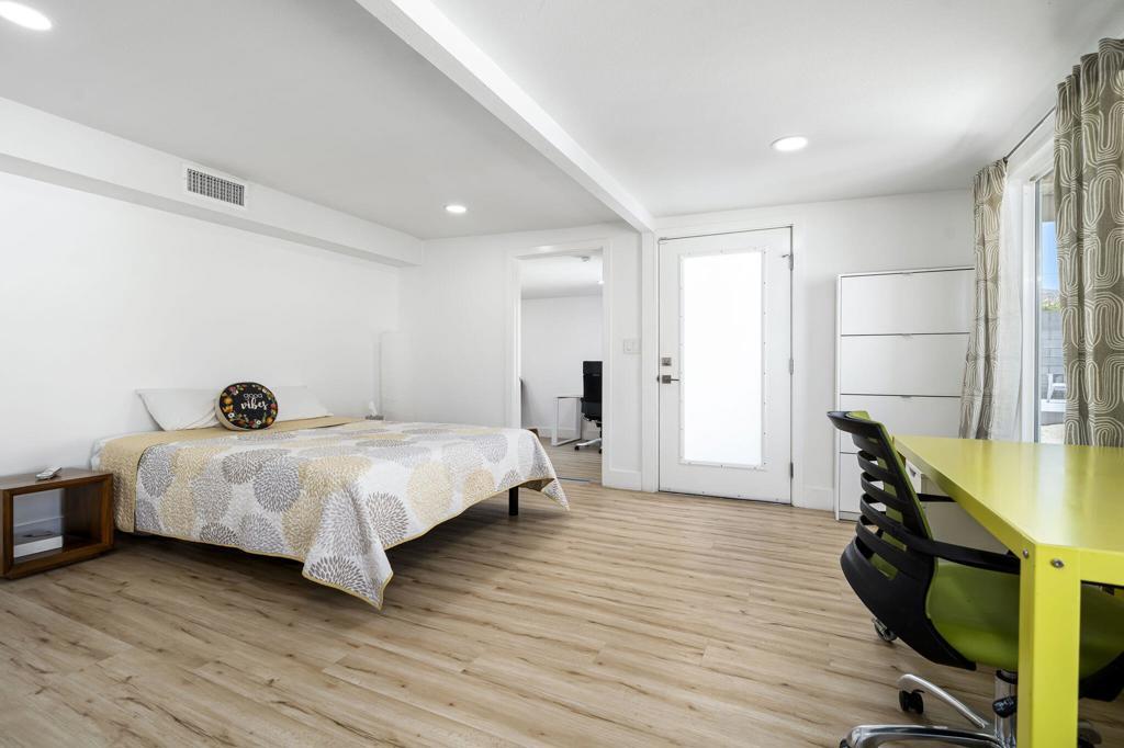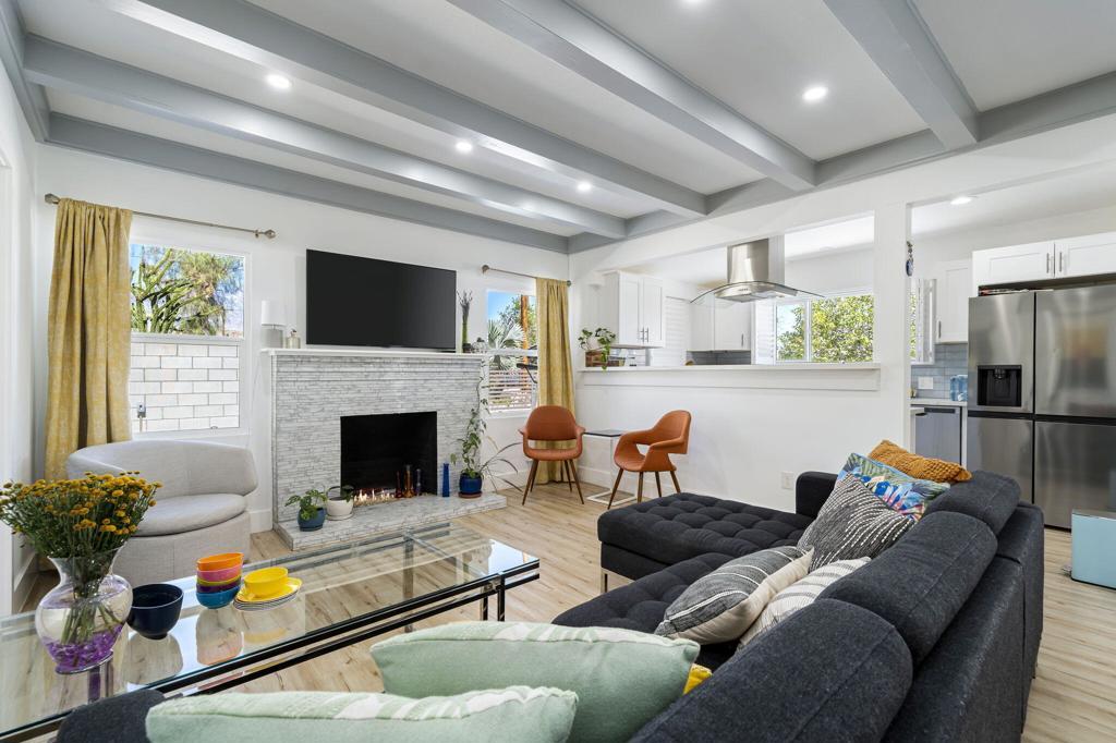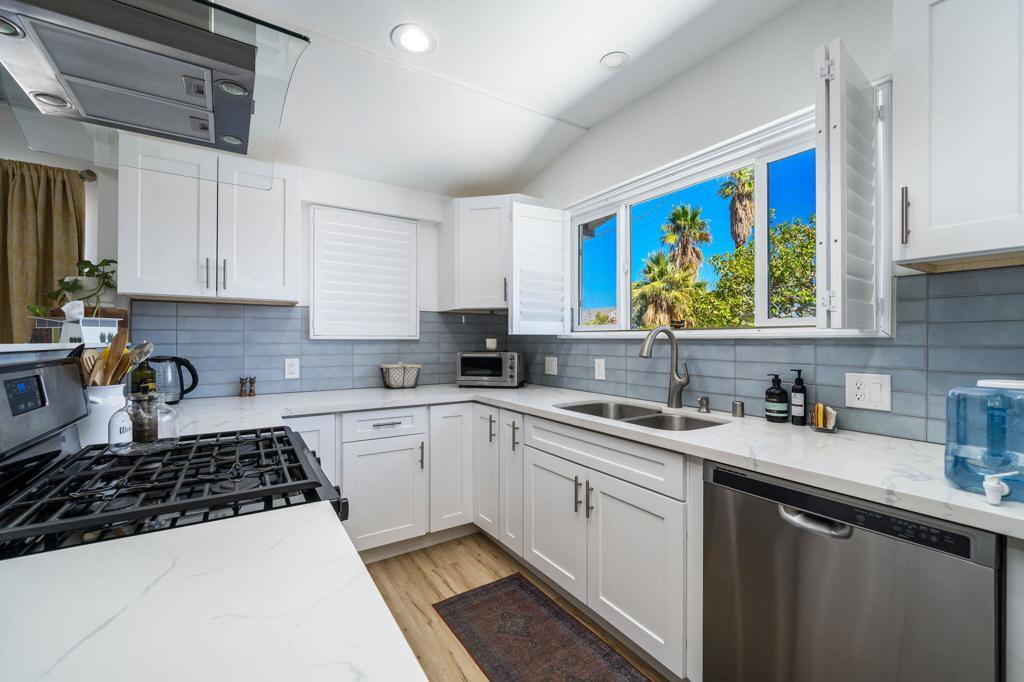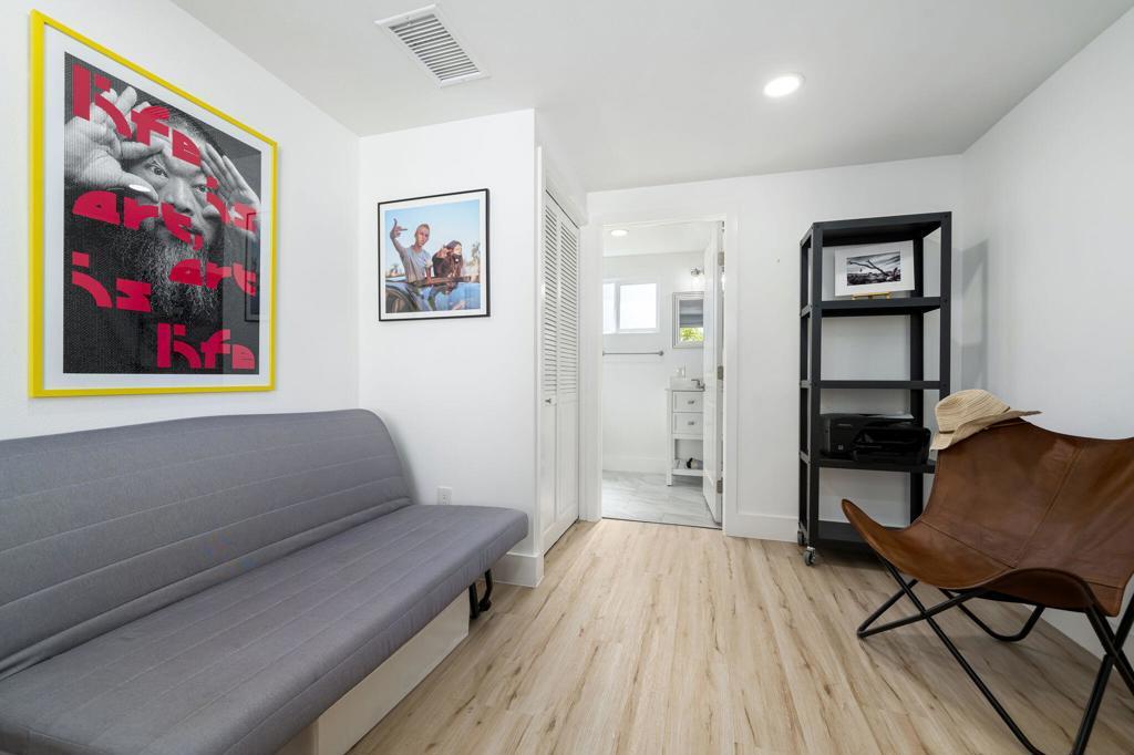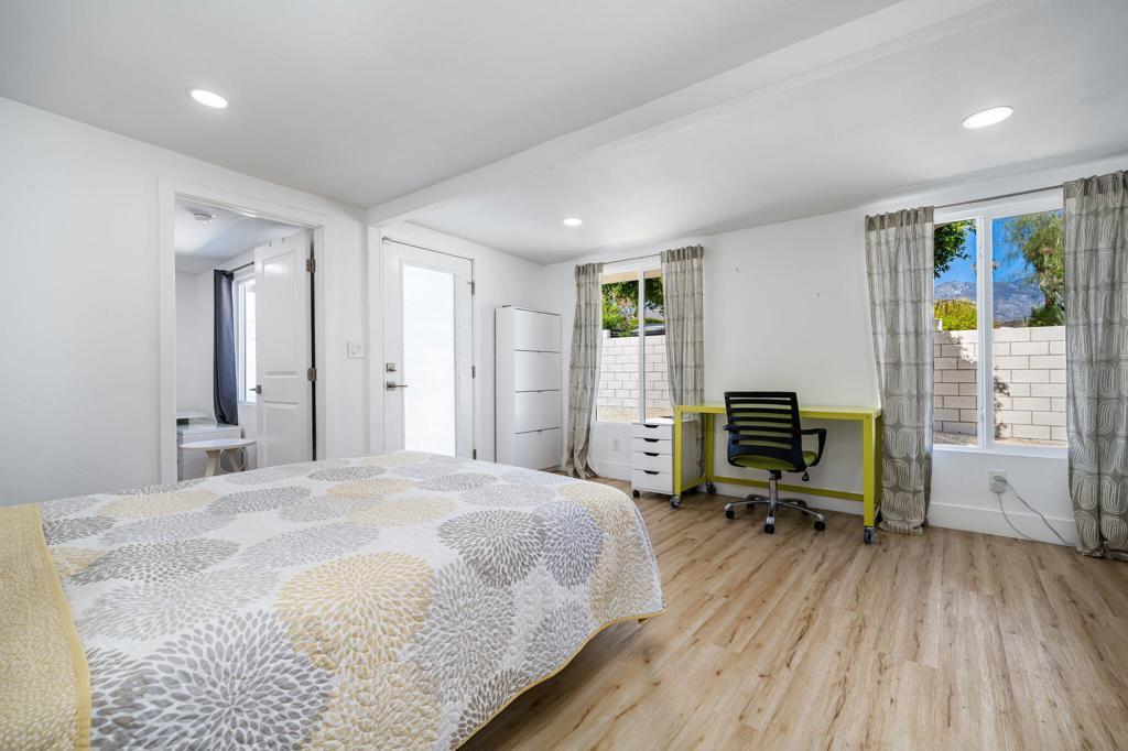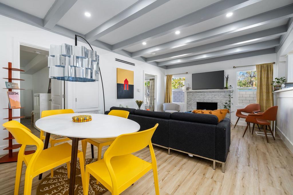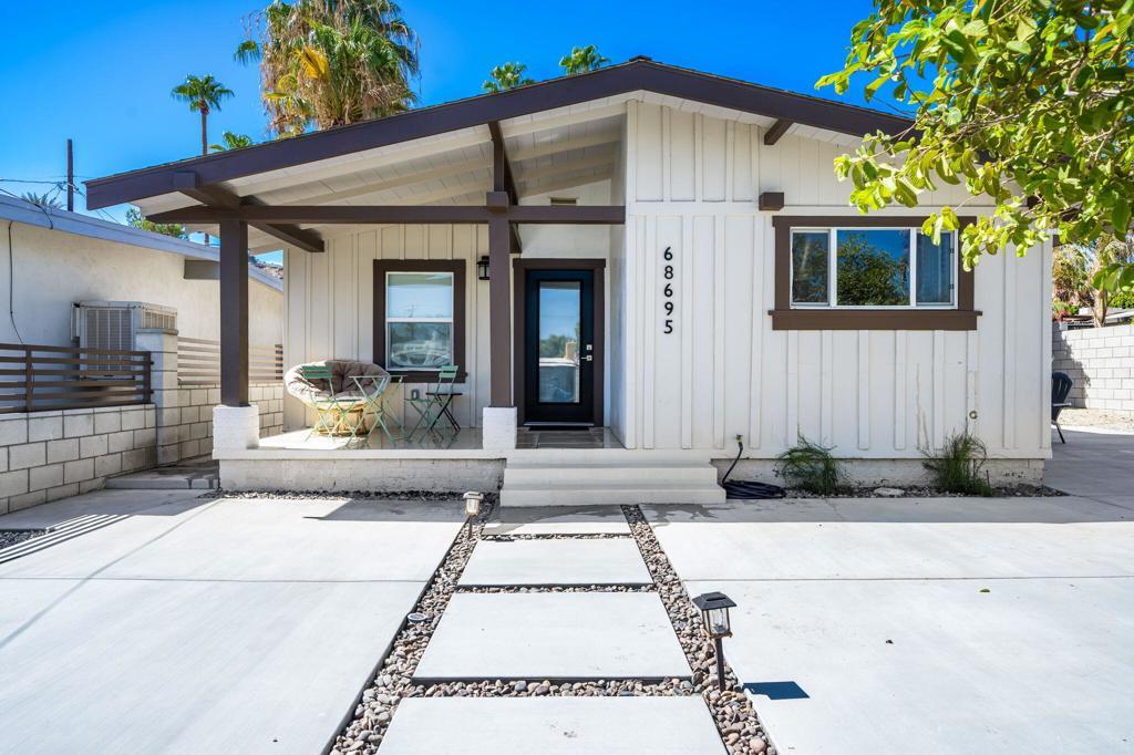 Impressive, Remodeled Craftsman in the Coveted Cathedral City Cove! SEASONAL RENTAL AVAILABLE ALL MONTHS. Bright and beautifully updated, this 2+ bedroom, 2.5 bath single-family home blends timeless charm with modern amenities. Enjoy sweeping mountain views, Luxury Vinyl Plank flooring, and newer dual-pane windows and doors--all just 4 years old. The open-concept kitchen shines with soft-close white cabinetry, white quartz countertops, stainless steel appliances, and a gas cooktop. Three fully remodeled bathrooms include two elegant full baths and a chic powder room off the living area.Recessed LED lighting, a sleek all-glass gas fireplace, and a versatile bonus room--ideal for a home office or creative space--add style and flexibility. Interior laundry with upgraded closet for stackable washer/dryer, high-efficiency HVAC system, and low-maintenance landscaping make daily living easy.Fully gated for privacy, the property features dual driveways (front and rear) with parking for up to 5 vehicles--or bring your RV! Located on a great street in sought-after The Cove, this home is move-in ready and truly stands out.