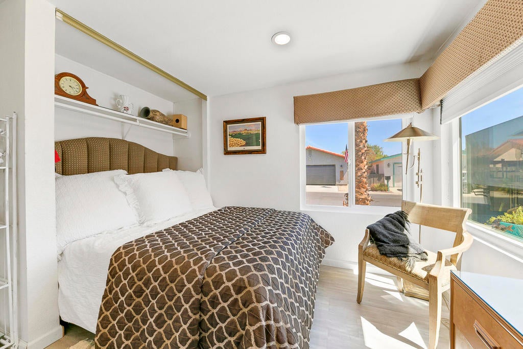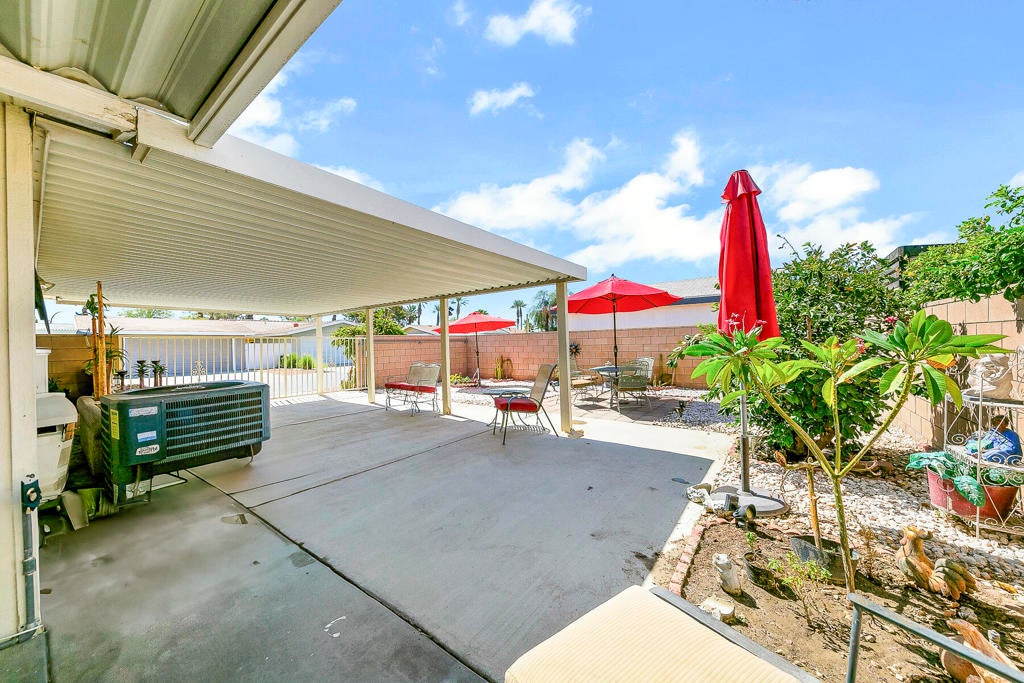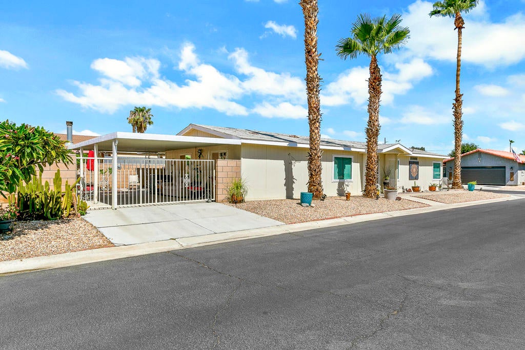 Available October 2025 - May 2026 Furnished Seasonal LeaseWelcome to Desert Groves, a gated 55+ community offering resort-style amenities and a relaxed lifestyle. This well-maintained 2-bedroom, 2-bath double-wide home features an open-concept great room with vaulted ceilings, a cozy den with fireplace, and a split floor plan for added privacy. The spacious primary suite includes a jetted tub and separate stall shower. Enjoy a private, gated carport, a one-car garage, and additional community parking for guests. Lease is fully furnished per seller's inventory. Community amenities include two pools, a clubhouse, and RV parking--perfect for your desert getaway!