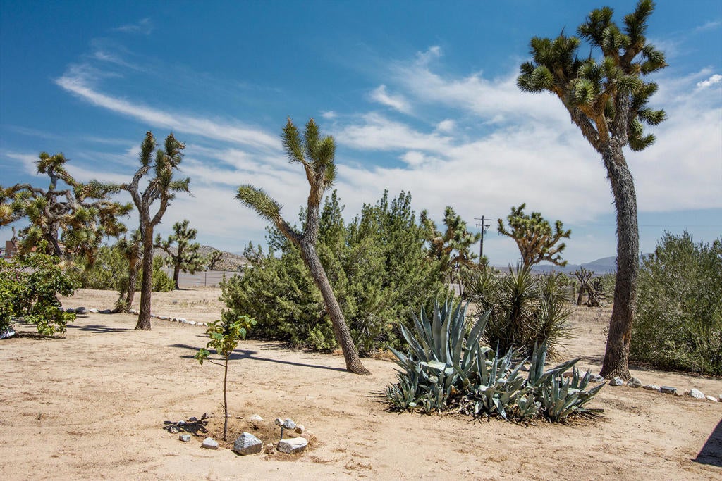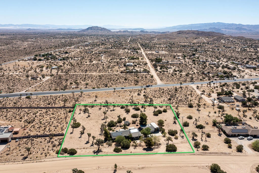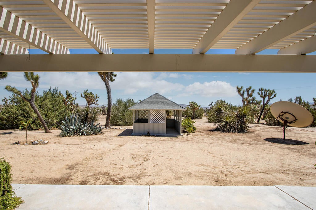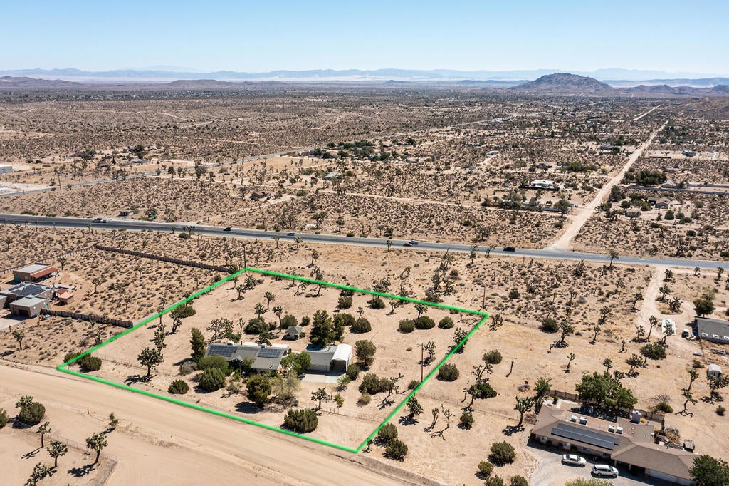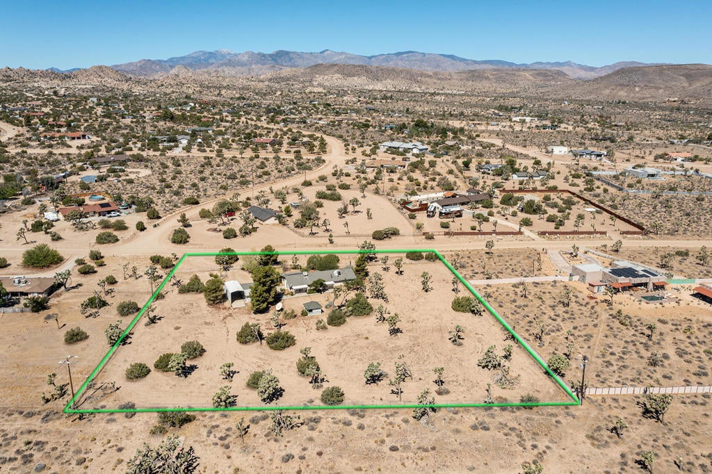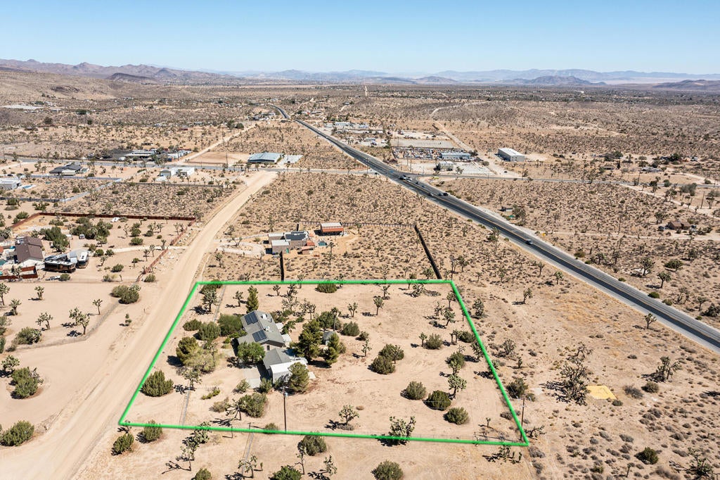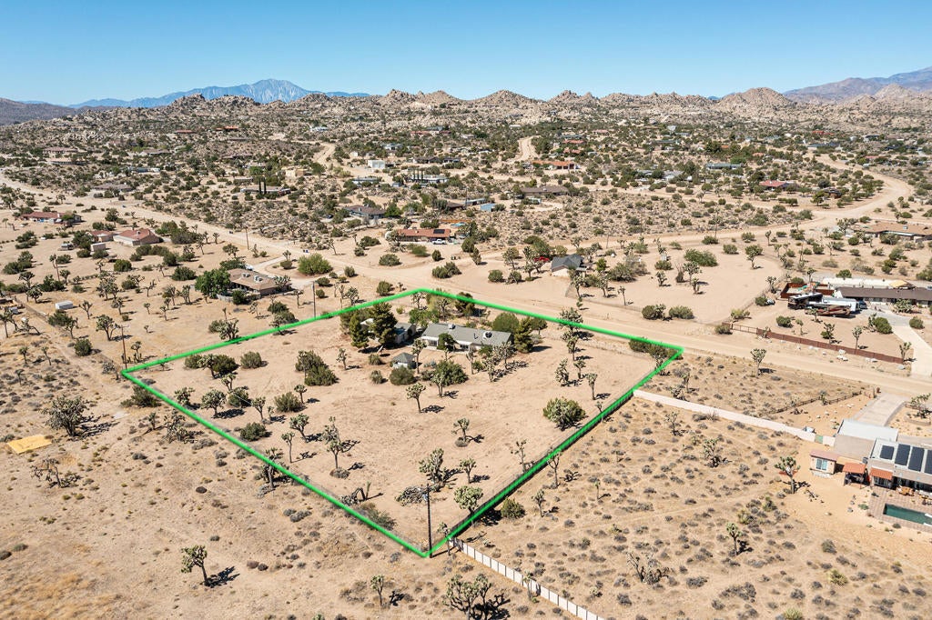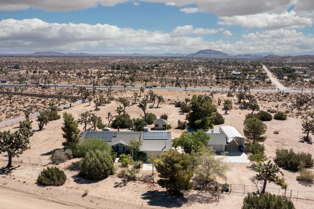 Wonderful family home set on over 2 acres in prestigious Rancho Mesa Estates. Surpassing over 2,100 square feet this large home features 3 bedrooms, 2 bathrooms, vaulted entry, living, dining and family rooms, with an additional large bonus room with woodburning stove. The large laundry room has ample storage and counterspace. Glass doors from the living room and family room open to covered patios providing sweeping sunrise to sunset views. The entire property is fenced and gated with an electronic keypad and remote control access. As you enter the gate the oversized 2.5 car garage provides easy access, ample storage, built-in cabinetry, a half bathroom, and a dedicated workshop with a woodburning stove, skylights and more tranquil views. Next to the garage is a covered RV parking area. The property also features mature trees and landscaping and a lovely covered gazebo. Property has been well maintained and includes a solar system for energy efficient year round enjoyment. Perfect location within minutes to all the amenities, restaurants, and recreational opportunities in Joshua Tree, Pioneertown, and Yucca Valley. This would be a perfect full-time residence, investment, and rental. Don't wait on this one - schedule your showing today.