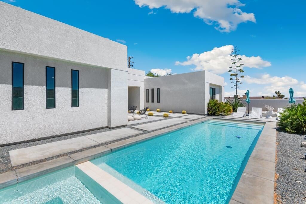 *An excellent opportunity to secure a property before year-end and potentially take advantage of available tax depreciation benefits. Consult your tax professional for eligibility* Come and see your desert resort home! Modern 3-bedroom, 3.5-bath home with breathtaking mountain views in a peaceful rural setting. This turnkey property features soaring ceilings, an open floor plan, and stylish built-in details throughout. The chef's kitchen impresses with a large quartz island, walk-in pantry, and premium appliances including gas cooktop, oven, microwave, and refrigerator. The luxurious primary suite offers a soaking tub, walk-in shower, double sinks, quartz counters, and a spacious walk-in closet. Sliding doors open to a private backyard retreat with in-ground pool, spa, and outdoor fire pit--perfect for relaxing or entertaining. Additional highlights include central air/heat, concrete floors, inside laundry, privacy fencing, desert landscaping, and a covered patio. An attached 2-car garage with driveway parking adds convenience. The home is currently on septic with a public sewer connection scheduled by late August. This stunning home blends modern design, everyday comfort, and resort-style living.