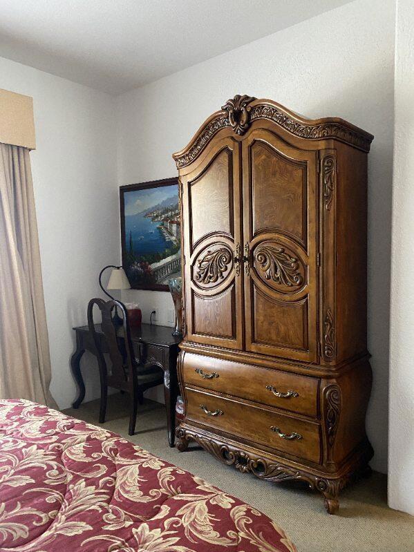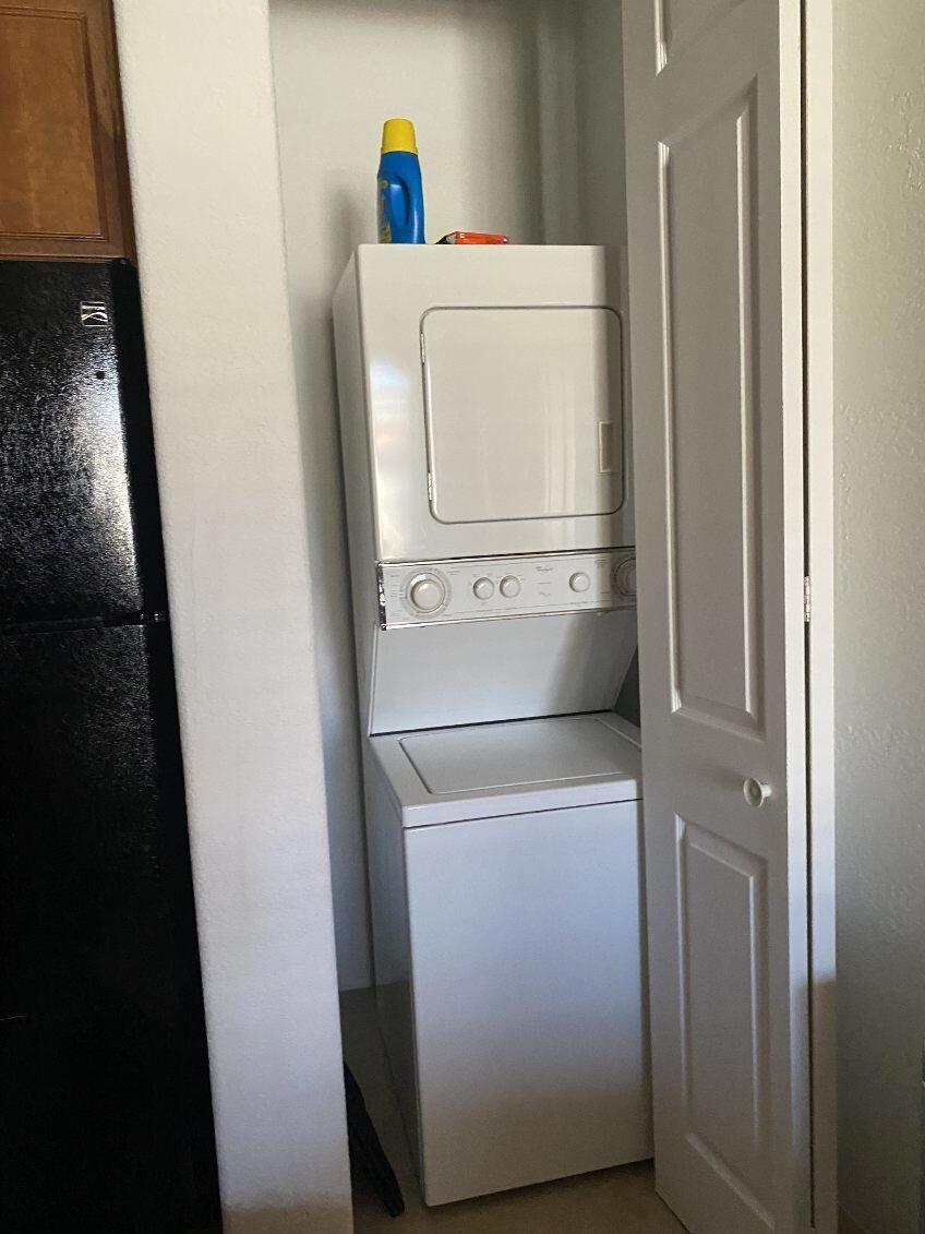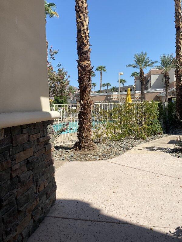 Ready for immediate occupancy. Perfect for single person or couple. Welcome home to Casitas Las Rosas. Great condo located across from Old Town La Quinta. Beautiful one bedroom, one bath situated on the second floor with easy access to pool and spa. fully furnished. Walk in closet is over-sized. The kitchen is well appointed with stove, microwave, fridge/freezer, granite counter tops. Bath is generous in size with tub/shower combo, granite counter tops. The laundry closet has stacked washer and dryer. Water, trash, internet, cable TV included. Ideally located in the heart of La Quinta. Super location and access to pool.