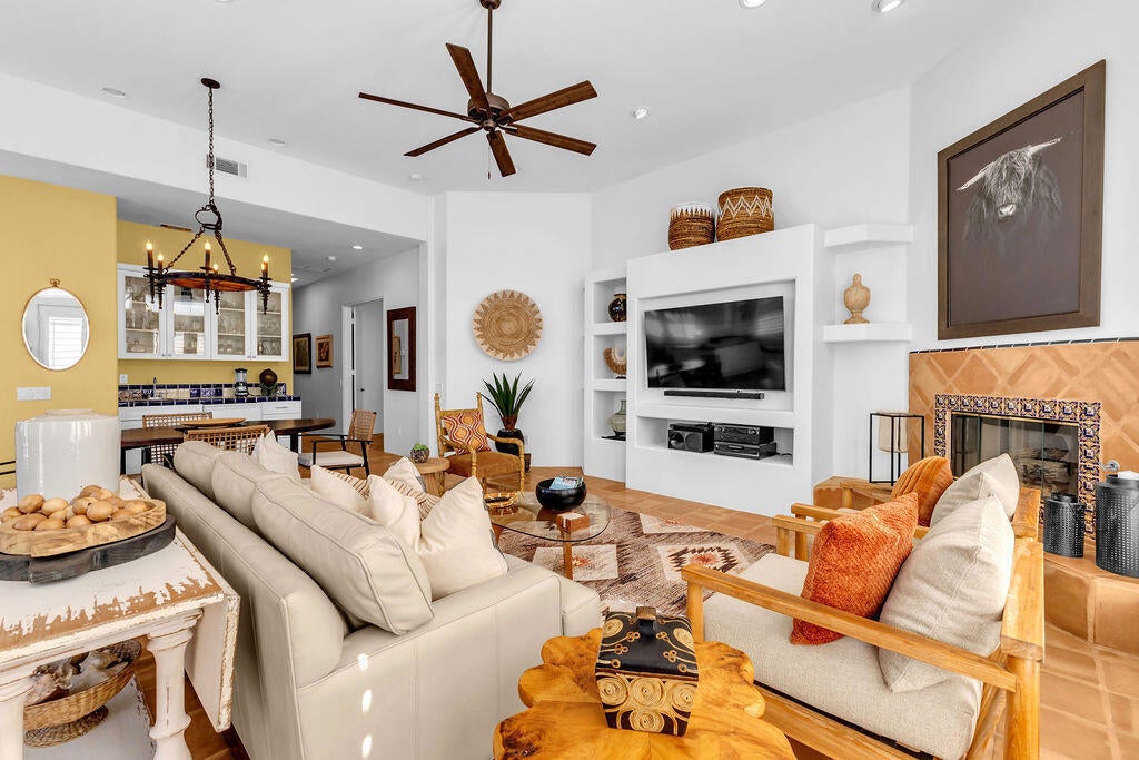 Spanish Style Retreat in La Quinta Cove Seasonal or Long Term RentalDiscover this charming 1 Bedroom Suite with an additional office area, wet bar, and a spacious open concept great room that blends comfort with a designer vacation vibe. The large kitchen features a Sub Zero refrigerator and top of the line appliances, perfect for entertaining. The master suite includes a private gym area and cozy fireplace. A washer and dryer add everyday convenience, and the garage offers secure parking and storage. Enjoy breathtaking mountain views from the front yard, featuring a sparkling pool and spa. This home offers all the conveniences of home with a vacation vibe that will make you never want to leave. Located in the scenic La Quinta Cove, close to hiking trails, Old Town La Quinta dining, shopping, and seasonal events. Available, May-Sept $5200, Oct-Dec $5500 Long Term Lease is negotiable. Property is leased 01/01/26- Through 4/07/26