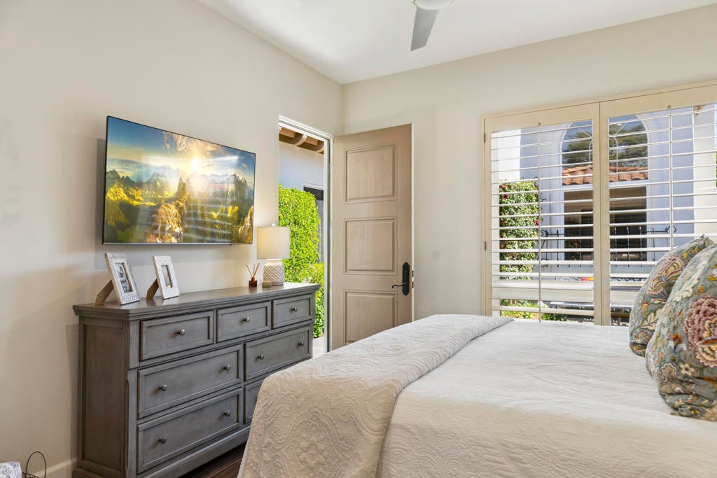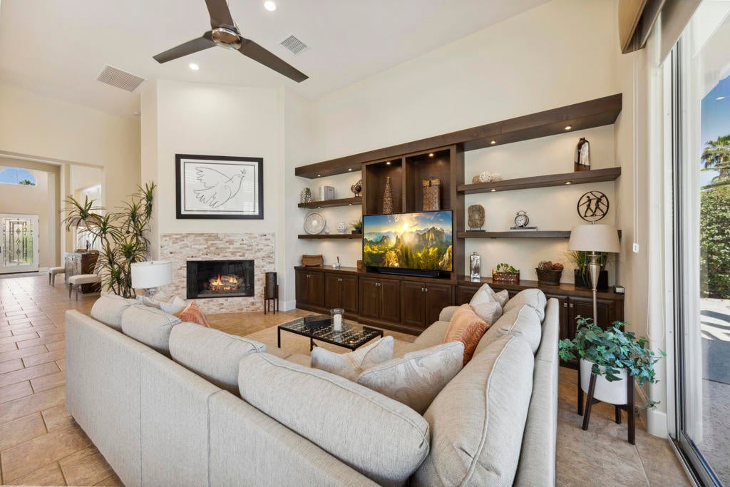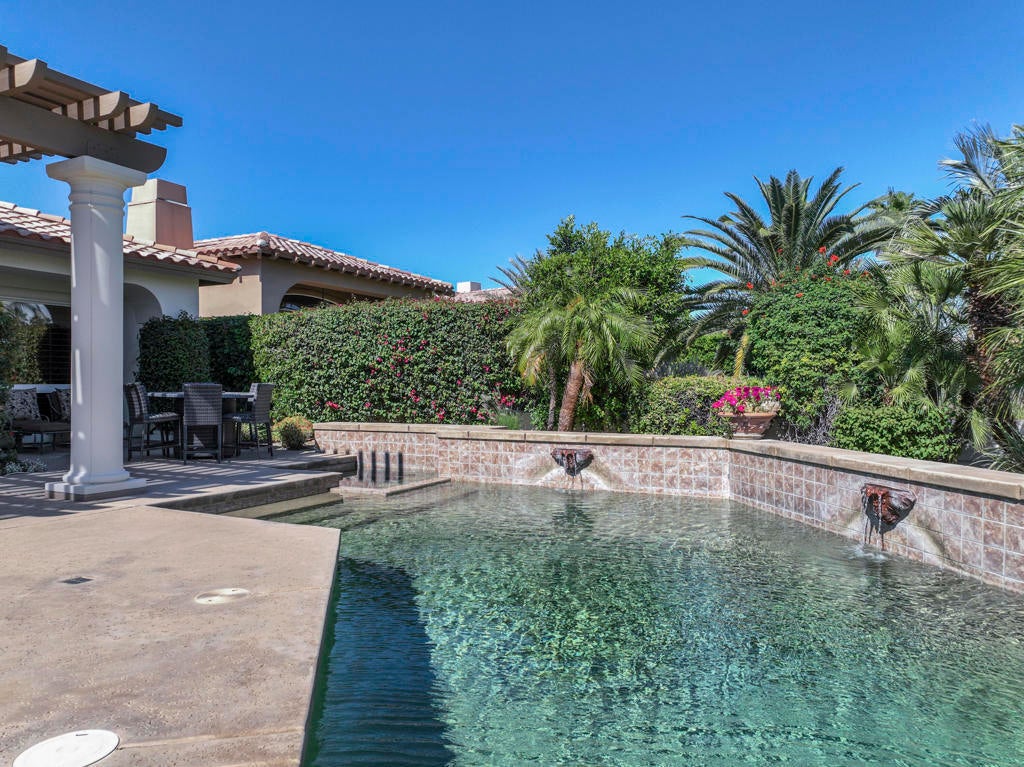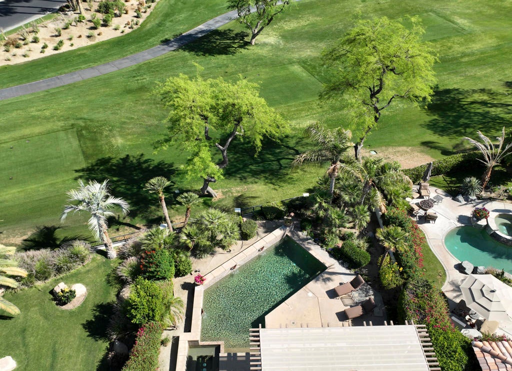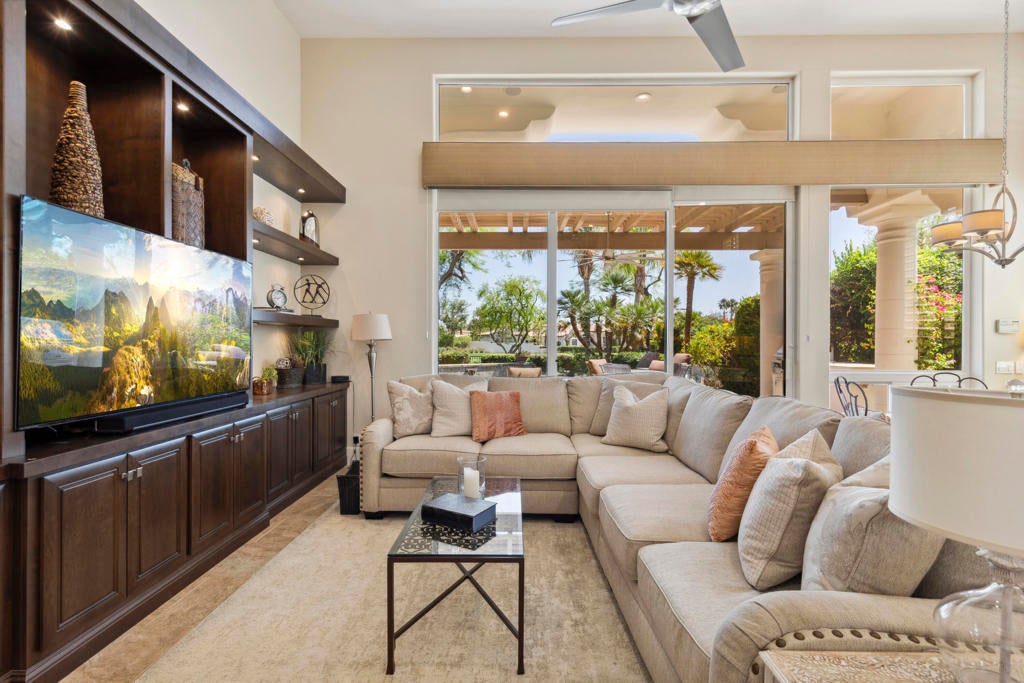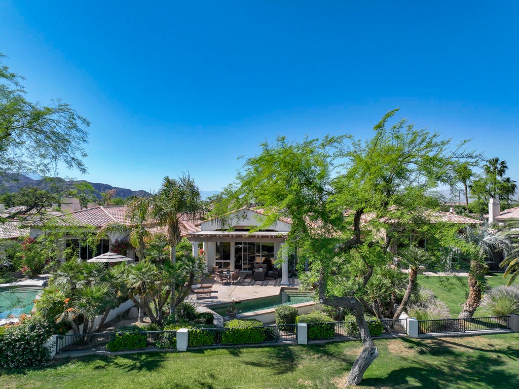 Experience the best of desert living in this beautifully updated home at Rancho La Quinta Country Club, now available at a reduced price and offered furnished for a seamless move-in (see Inventory List under Documents). Set on a private lot with expansive views, the home's resort-style setting features a classic pool with cascading water features and an elegant loggia that creates the perfect space for relaxing or entertaining outdoors.Inside, the open floor plan is designed for effortless entertaining, blending spacious living areas with high-fired ceramic flooring, fresh designer paint, and modern LED lighting. The remodeled chef's kitchen serves as the heart of the home, showcasing quartz countertops, custom cabinetry, Wolf and GE Cafe appliances, and a climate-controlled wine unit. The main house offers two bedrooms, two full baths, and a powder room, while the detached guest casita provides a private retreat. The casita's golf cart garage may also be converted into additional living space--ideal for a fourth bedroom, office, or gym.Additional highlights include a custom outdoor BBQ island, two-car garage, and separate golf cart garage. HOA dues include 24-hour guard-gated security, front landscaping, cable/internet, and access to sports and social memberships. The Rancho La Quinta Clubhouse Assessment has been PAID IN FULL. Blending luxury upgrades with a relaxed desert lifestyle, this home offers the perfect retreat for both everyday living and entertaining.