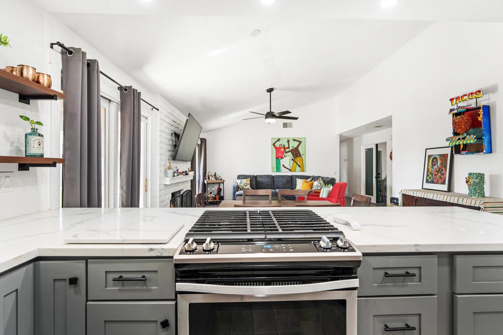 Welcome to this beautifully updated 3-bedroom, 2-bath home, perfectly situated in a desirable neighborhood with no HOA and Fee Simple land--you own it! From the moment you arrive, you'll love the inviting curb appeal with a refreshed front courtyard and low-maintenance desert landscaping.Step inside to discover a bright and airy floor plan featuring vaulted ceilings, fresh paint, new flooring, stylishly renovated bathrooms, and upgraded lighting throughout. The remodeled kitchen is a true highlight, showcasing modern cabinetry, sleek countertops, stainless steel appliances, and upgraded fixtures--ideal for everyday living and entertaining.The spacious living room offers a cozy fireplace and dual sliding glass doors that open to a covered patio, seamlessly blending indoor and outdoor living. The primary suite includes French doors to the backyard and a generous walk-in closet.Set on a large lot, the home features a pet-friendly backyard with endless potential--perfect for adding a pool, spa, or BBQ area. Fenced and gated side yards provide extra room for storage, equipment, or off-road toys.Tucked away on a quiet street, yet just minutes from shopping, dining, and conveniences. Plus, enjoy the savings of low IID power rates. This home truly has it all--don't miss your chance to make it yours! Schedule your private showing today.