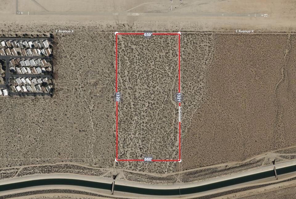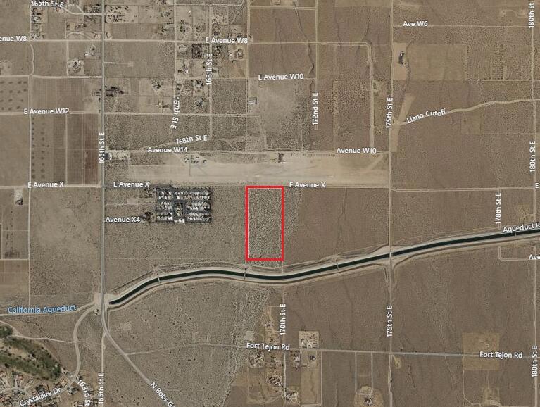 Large 20 acres borders the Crystal Airport Glider Port to the north and the Aqueduct to the south. Flat terrain with expansive views. Parcel is 1,950 feet west of 175th Street East. This lot is in the Llano Water Mutual boundary area.