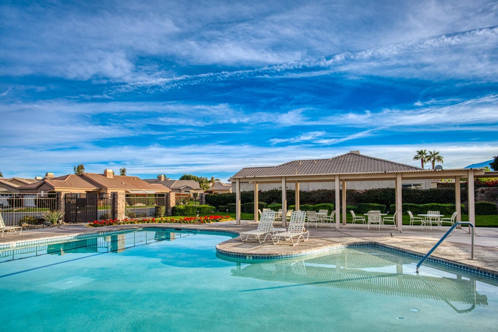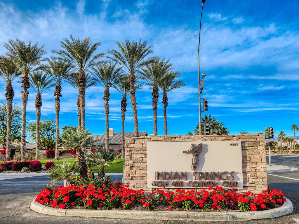 Charming Home with Stunning Southwest Views in Indian Springs Country Club!Welcome to your desert retreat in the highly sought-after Indian Springs Country Club, where breathtaking south-facing mountain views set the stage for everyday living. Freshly painted with new carpeting throughout, this home blends comfort and style in an inviting layout designed for both relaxation and entertaining. Step inside the foyer to find soaring ceilings and a spacious living area centered around a cozy corner gas fireplace--perfect for cool desert evenings. Extended sliders from both the living room and breakfast nook open to a newly landscaped backyard, where desert-friendly greenery frames the expansive covered patio that spans the entire length of the home--an ideal space for outdoor dining, lounging, or simply soaking in the views. The formal dining room, accented by elegant columns, adds sophistication, while the generous kitchen is ready for gatherings with granite countertops, bar seating, and a walk-in pantry. The private primary suite is a true retreat, featuring a dressing-room closet and spa-like ensuite with dual sinks, Jacuzzi soaking tub, and separate shower. Two additional guest rooms provide flexibility for family, visitors, or a home office. A convenient laundry room with storage leads directly to the three-car garage. Resort-Style Living at Indian Springs includes: Front yard landscape maintenance, Community pool & spa, Fully equipped fitness center, 24-hour security surveillance, Complimentary Wi-Fi & Frontier TV (HBO & Showtime). Plus, enjoy the benefit of Imperial Irrigation District power (IID) for lower energy costs. Don't miss this opportunity to own a beautifully maintained home with incredible views in one of the Coachella Valley's premier communities!