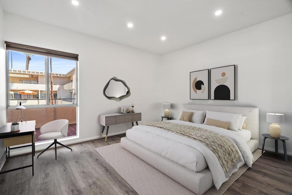 ALL UTILITIES included (except cable)!!!!Experience the best of Palm Springs living at Villa Alejo. This stunningly renovated 2-bedroom, 2-bathroom condo is your gateway to a stylish, carefree lifestyle. Imagine waking up to mountain views, then relaxing by the pool or unwinding in the hot tub. Located just a short walk from the best of downtown Palm Springs, you'll be immersed in the city's unique culture. This top-floor unit has been completely upgraded with a new kitchen, bathrooms, flooring, and the convenience of an in-unit washer and dryer. Live a life of ease with community amenities like a gym, community laundry, and reserved parking. Separate storage unit and a secured bicycle storage area is also available and accessible from the community garage. If stairs are a challenge, there is an elevator to conveniently take you from the garage to the second floor. Plus, all utilities are included, leaving you with more time (and money) to enjoy everything Palm Springs has to offer.