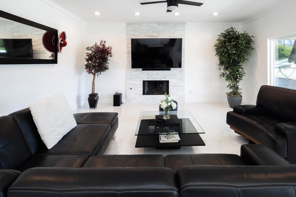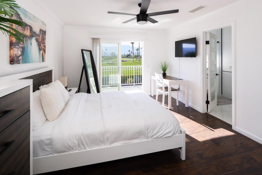 Welcome to 41215 Carlotta Drive, an elegant and fully furnished desert retreat offering sweeping golf course frontage, unobstructed views of the San Jacinto Mountains, and luxurious indoor-outdoor living. Enjoy your morning coffee and evening tea with the wonderful views offered by this vacation getaway. This beautifully maintained 4-bedroom, 3-bathroom home is a perfect seasonal getaway or short-term vacation rental, designed to capture the essence of the Palm Desert lifestyle. Please see the virtual tour. https://my.matterport.com/show/?m=bhVeBpioQcXInside, the home boasts a bright, open layout with vaulted ceilings and large windows that frame the dramatic natural surroundings. The living room is warm and inviting, centered around a cozy fireplace, while the adjacent kitchen features granite countertops, stainless steel appliances, and ample room for entertaining. Stylish furnishings and curated decor throughout create a turnkey experience for guests. The spacious primary suite includes direct backyard access, a walk-in closet, and a spa-like bath, while the additional bedrooms offer comfort and flexibility.Step outside to discover your private backyard paradise. Overlooking the fairways of The Lakes Golf Course, the outdoor space includes a sparkling pool and spa, a covered patio for lounging or al fresco dining, and a custom gas firepit--perfect for cool desert evenings. A dedicated TV watching area enhances the entertainment options, allowing you to enjoy your favorite shows or sports with mountain views in the background.Set in a peaceful Palm Desert neighborhood not affiliated with The Lakes Country Club, this home is ideally located just minutes from El Paseo shopping, fine dining, golf, and hiking. Offered fully furnished for vacation rental, this property is an exceptional find for snowbirds, families, or anyone looking for a turnkey escape in the Coachella Valley.Minimum 30 days rental. Rates Fluctuate based on season.May - September - $6,500/monthNovember/December $6,500/monthJanuary - April $8,000/monthRates Negotiable if term exceeds 30 days.