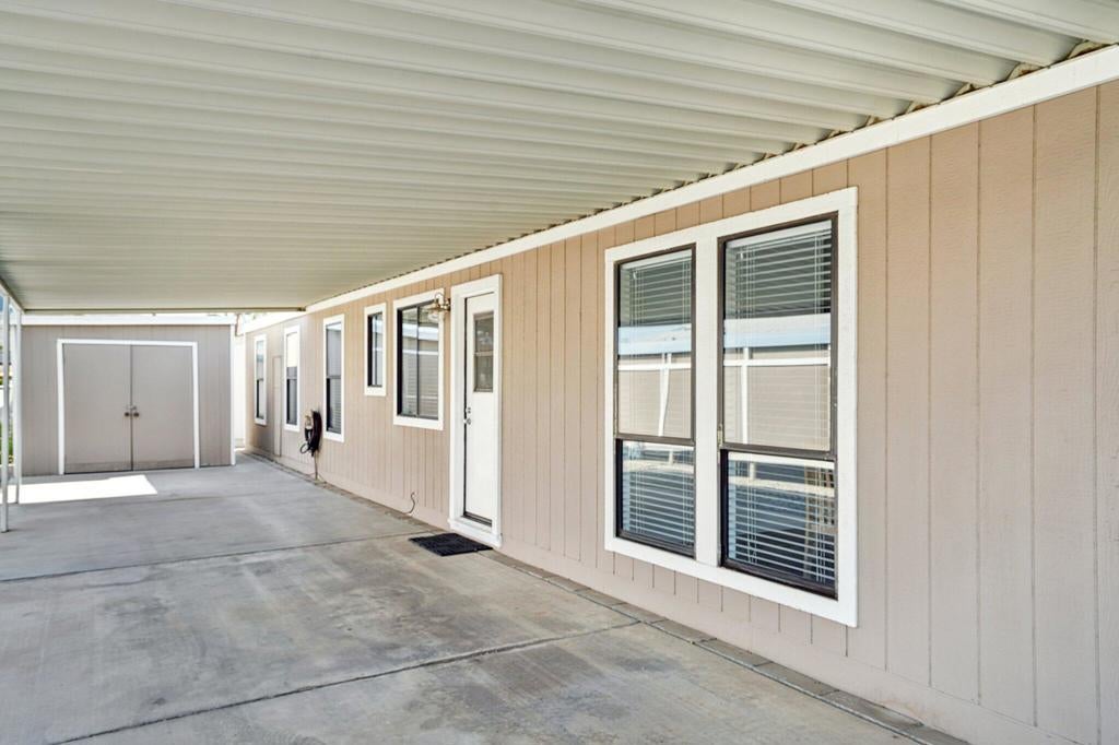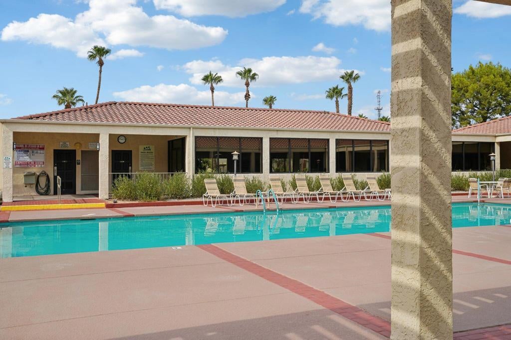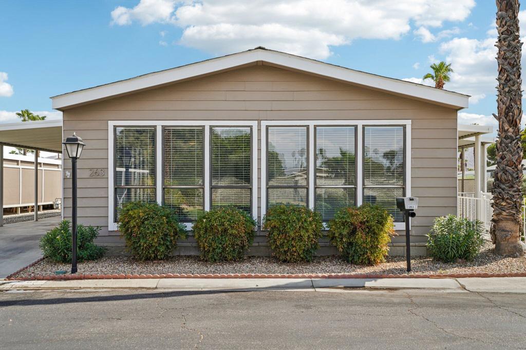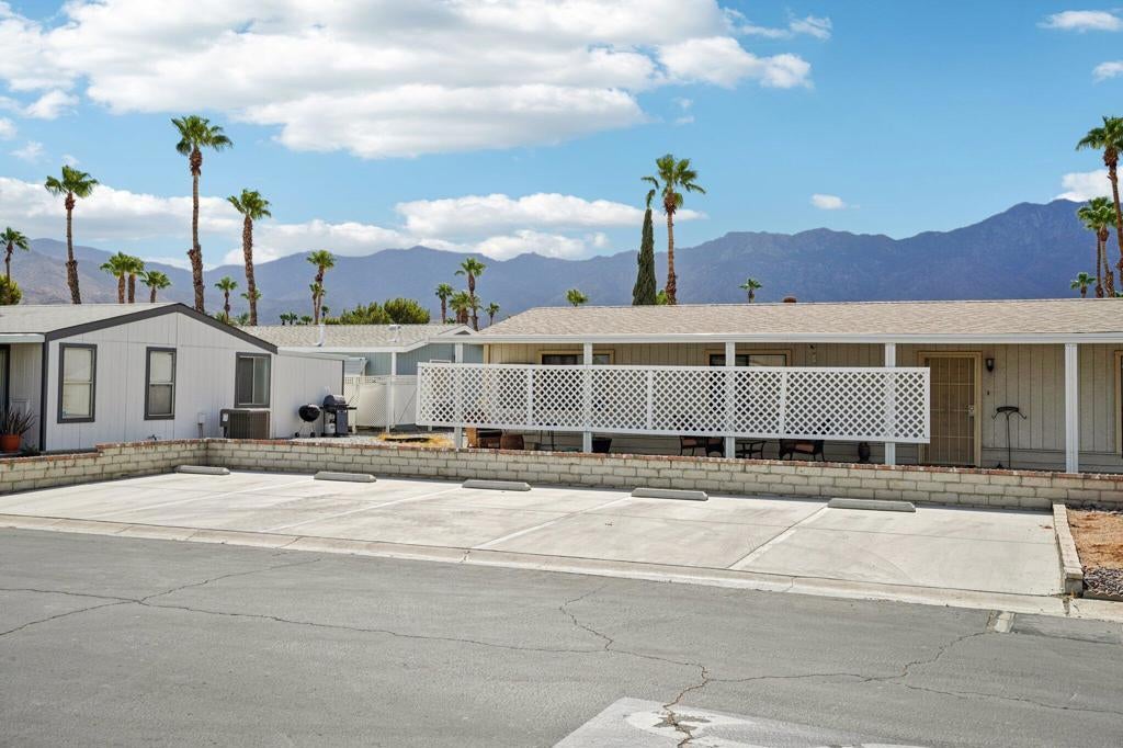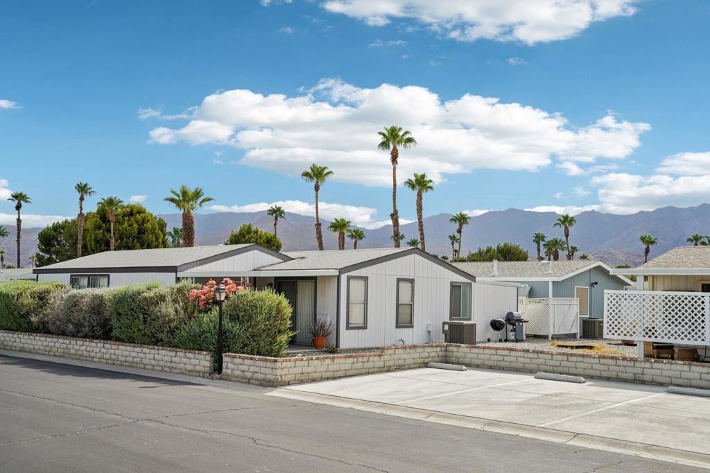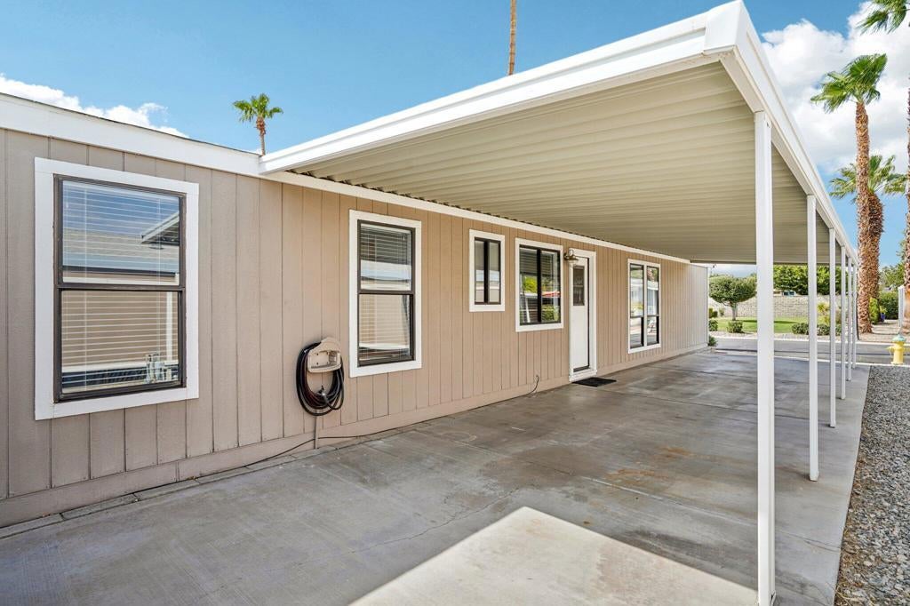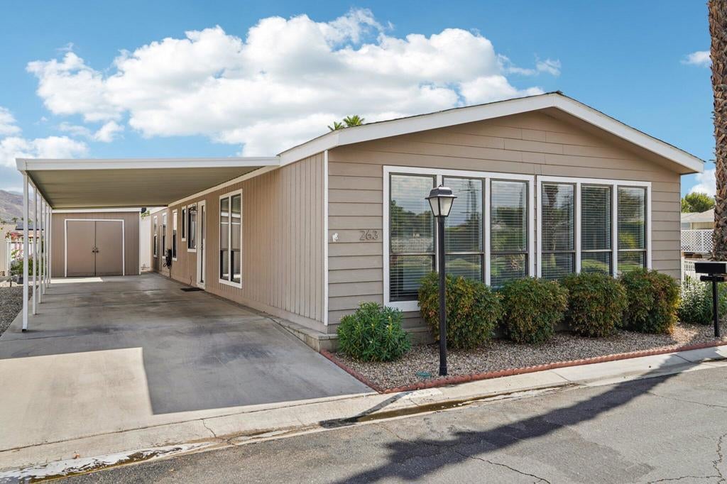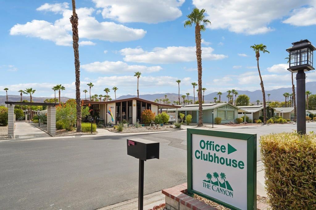 Welcome home to this beautiful 2 bedroom, 2 bath manufactured home offering over 1,500 sq. ft. of comfortable living, ideally situated on a desirable corner lot in a highly desired, welcoming senior (55+), owner-occupied (no rentals) park community, The Canyon. The open and airy floor plan is filled with natural light, creating a warm and inviting atmosphere throughout. Generous living, dining area, and den flow seamlessly, making it easy to relax or entertain, while the well-designed laundry room with extra cabinetry adds everyday convenience. Outside, you'll appreciate the two-car covered carport, a separate storage unit for tools, bikes, or seasonal items, and a spacious covered patio that provides the perfect spot to enjoy your morning coffee or take in the evening's western sunsets. This resident-owned community offers a lifestyle centered on comfort and connection. Enjoy resort-style amenities including sparkling pools and large soothing spa, year-round heated and cooled shuffleboard courts, billiards, card room, fitness room, tennis and pickleball courts, and a beautifully updated clubhouse that hosts a wide variety of social activities and events. With the added privacy of a corner lot, the benefit of an additional storage unit, ample guest parking, and the peace of mind of an owner-only community, this home combines comfort and convenience to provide the buyer with an ideal opportunity to embrace desert living at its finest. Potential residents of The Canyon will be asked to show a credit score of 750 and a monthly income of three (3) times the average monthly space rent of $945. Pets are permitted; dogs need to be under 20 lbs, unless it has a service dog certification. Other information is available Mon-Fri from the office located in The Canyon. Monthly space rent/lease is $945 per month + Utilities. Commercial Land Lease - Expires 2040.