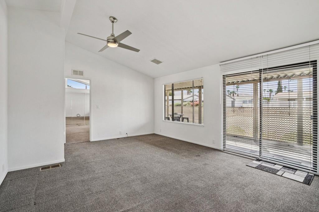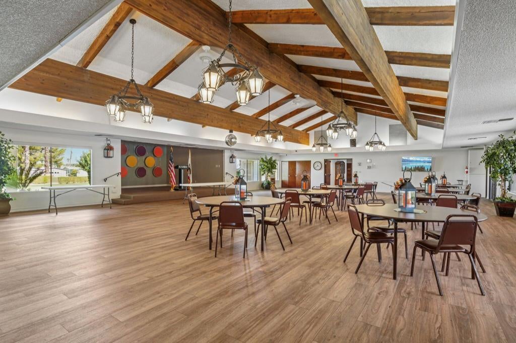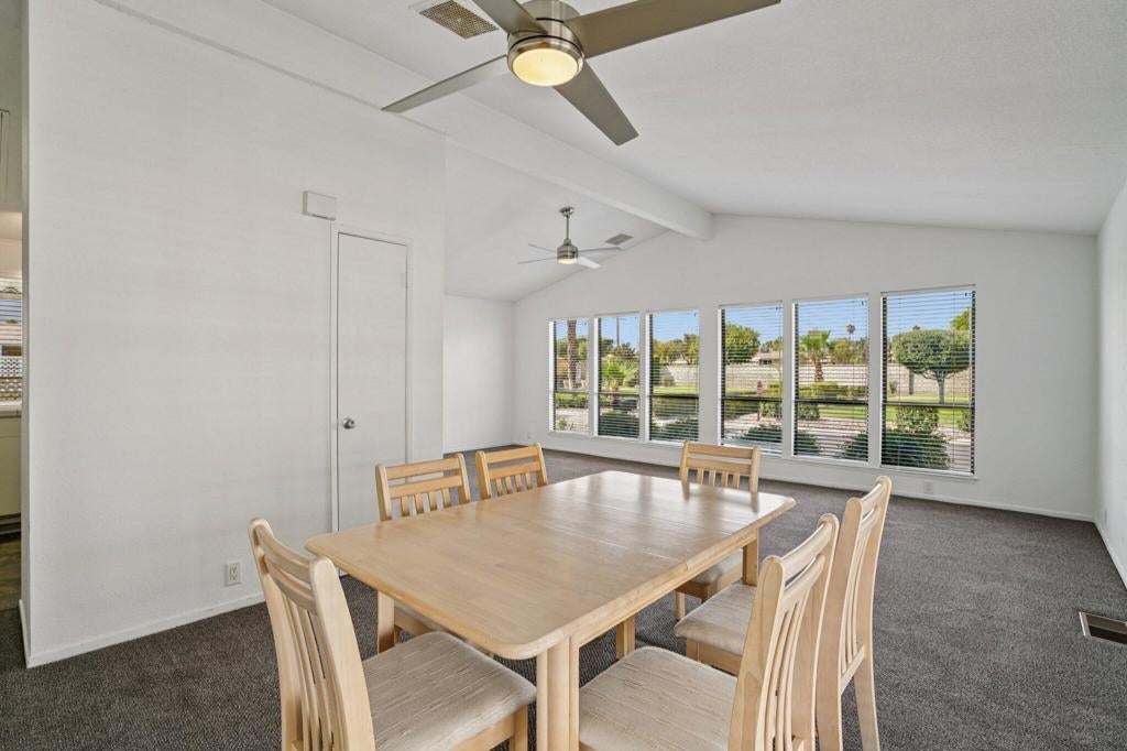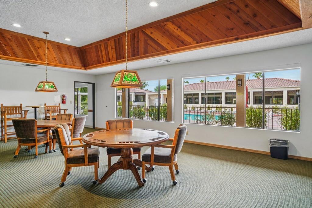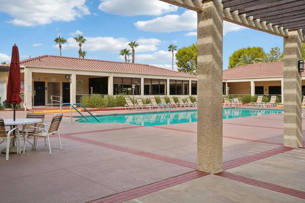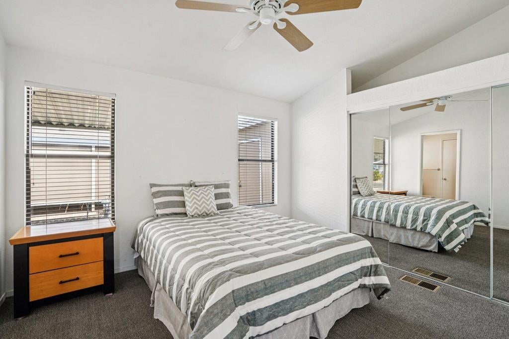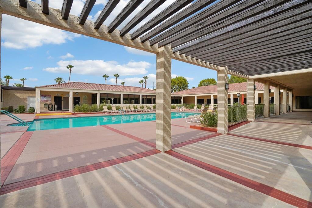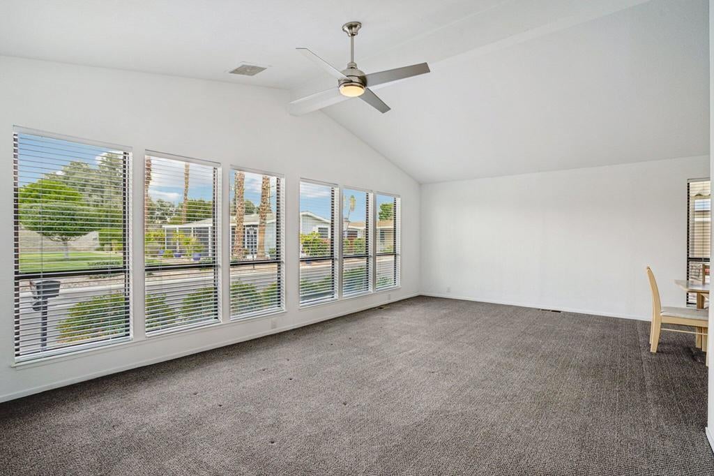 Welcome home to this beautiful 2 bedroom, 2 bath manufactured home offering over 1,500 sq. ft. of comfortable living, ideally situated on a desirable corner lot in a highly desired, welcoming senior (55+), owner-occupied (no rentals) park community, The Canyon. The open and airy floor plan is filled with natural light, creating a warm and inviting atmosphere throughout. Generous living, dining area, and den flow seamlessly, making it easy to relax or entertain, while the well-designed laundry room with extra cabinetry adds everyday convenience. Outside, you'll appreciate the two-car covered carport, a separate storage unit for tools, bikes, or seasonal items, and a spacious covered patio that provides the perfect spot to enjoy your morning coffee or take in the evening's western sunsets. This resident-owned community offers a lifestyle centered on comfort and connection. Enjoy resort-style amenities including sparkling pools and large soothing spa, year-round heated and cooled shuffleboard courts, billiards, card room, fitness room, tennis and pickleball courts, and a beautifully updated clubhouse that hosts a wide variety of social activities and events. With the added privacy of a corner lot, the benefit of an additional storage unit, ample guest parking, and the peace of mind of an owner-only community, this home combines comfort and convenience to provide the buyer with an ideal opportunity to embrace desert living at its finest. Potential residents of The Canyon will be asked to show a credit score of 750 and a monthly income of three (3) times the average monthly space rent of $945. Pets are permitted; dogs need to be under 20 lbs, unless it has a service dog certification. Other information is available Mon-Fri from the office located in The Canyon. Monthly space rent/lease is $945 per month + Utilities. Commercial Land Lease - Expires 2040.