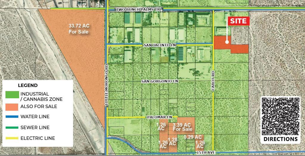 ■ Industrial Land For Sale in Desert Hot Springs■ Previously approved for CUP #01-16■ Ideally located next to Palm Springs and has close I-10 access to serve all of Southern California■ Priced to sell■ Located in the Desert Hot Springs Industrial Park