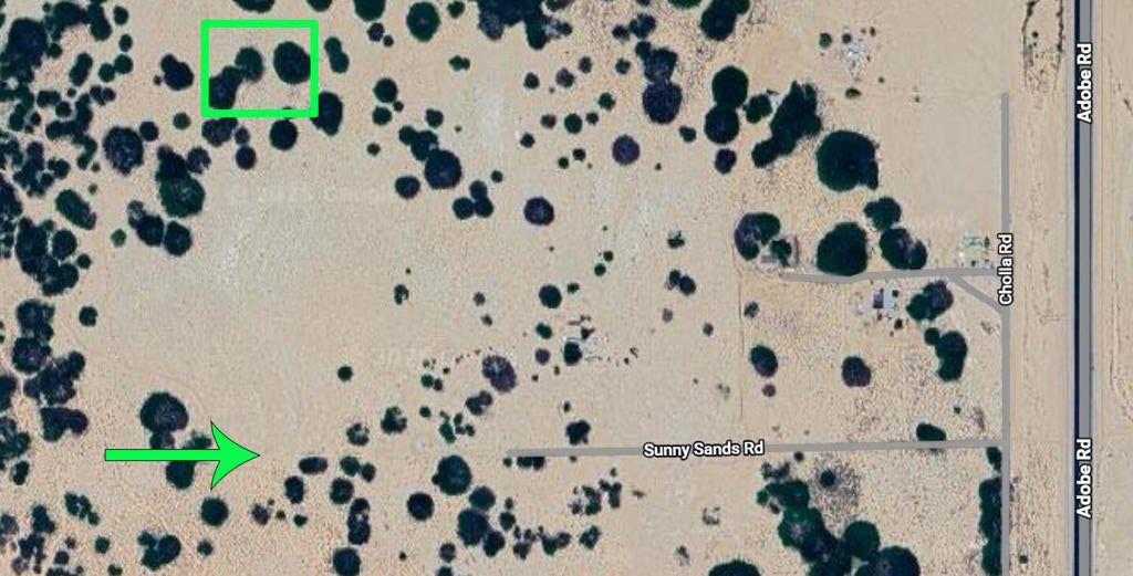 The parcel offers approximately 2.5 acres of vacant land. Located off Adobe Rd which is the main road leading the the 29 Palms Marine Base. The address is not official; it is only given for location. Coordinates are 34.205014N,115.064331W.