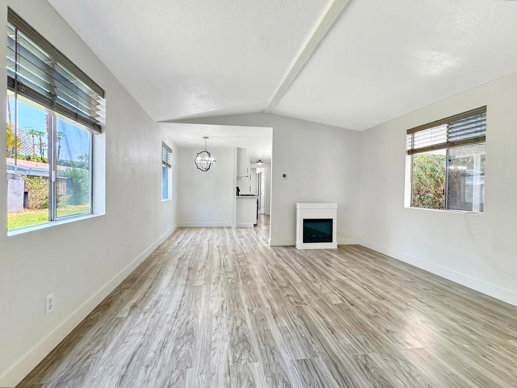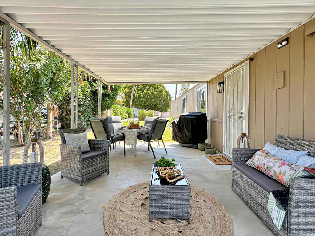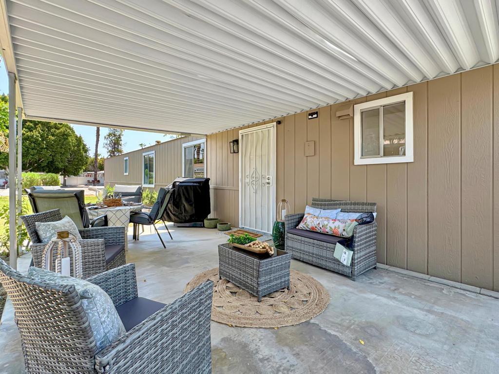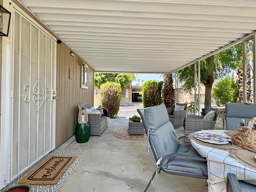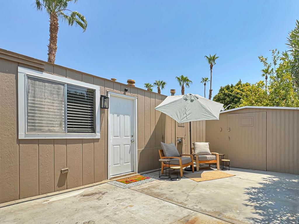 Recently updated and move-in ready! This charming home in the highly desirable Palmas de La Quinta community offers fresh upgrades throughout, including new flooring, stylish kitchen cabinets and countertops, and updated bathrooms. Bedrooms feature brand-new carpet, while the entire interior and exterior have been freshly painted, giving the home a bright and welcoming feel. Enjoy outdoor living with a private patio on the left side of the property and a large shed on the right, providing extra storage and convenience. Located in West Indio, right at the La Quinta border, Palmas de La Quinta is one of the area's most sought-after communities, just minutes from shopping, dining, schools, and everything the Coachella Valley has to offer. Community amenities include a pool and spa, clubhouse, fitness center, game room, and playground perfect for enjoying the desert lifestyle. Don't miss this fantastic opportunity to own a beautifully updated home in a prime location!