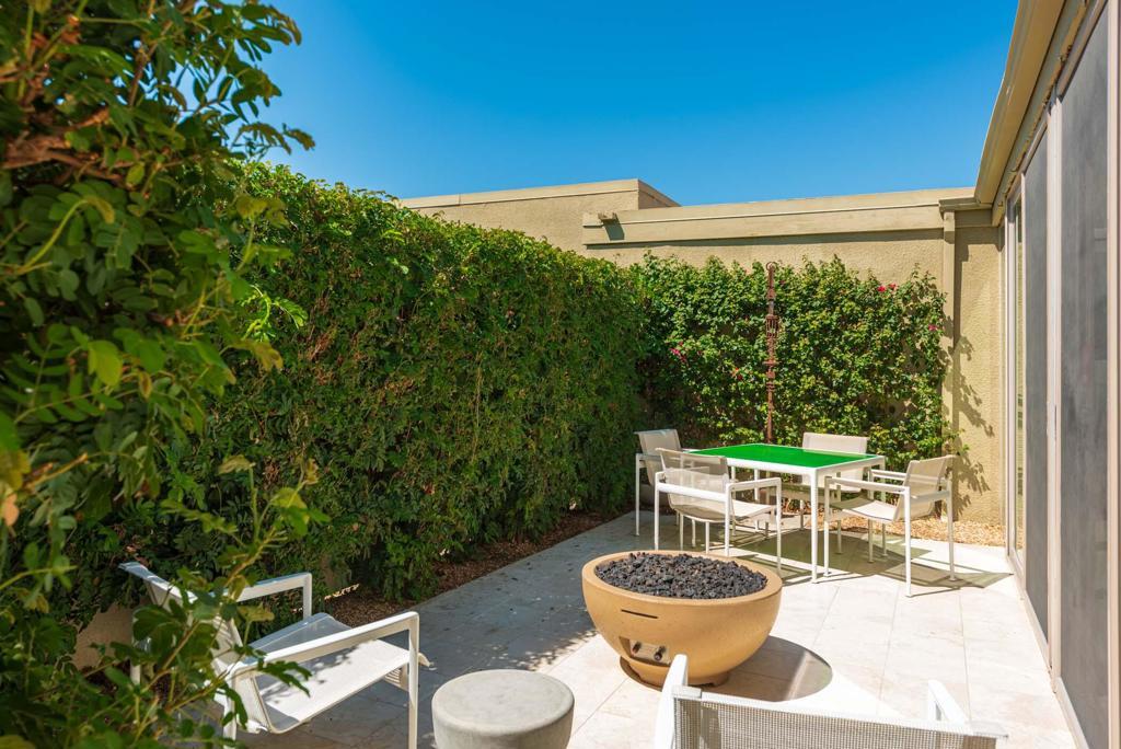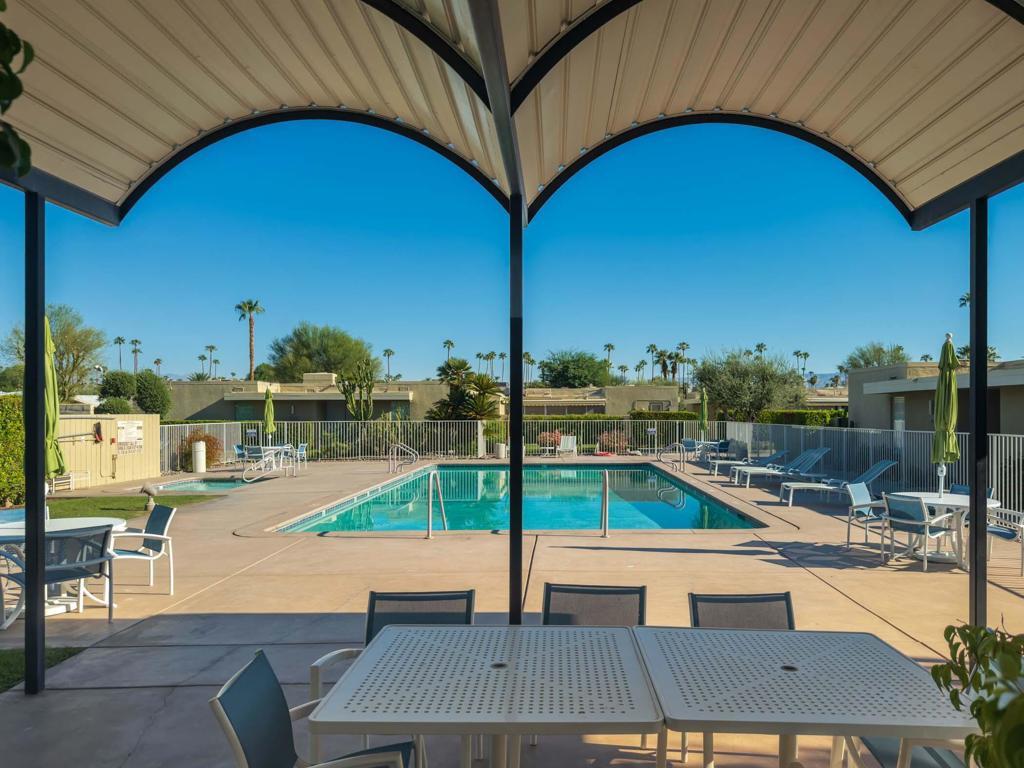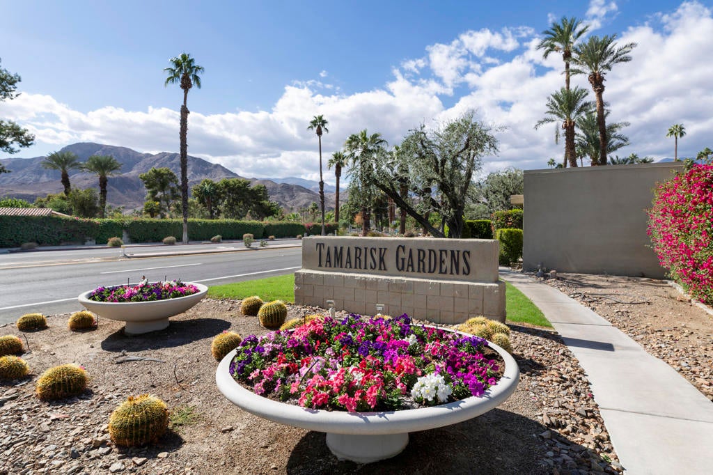 Price Improvement to be the deal of the mid century!!!! This stunning, light filled condo available at the highly desirable Tamarisk Gardens is waiting for you! 1 of only 28 condominium homes, built in 1966 and designed by architects McCarthy and Hartfelder, it is located adjacent to and steps away from the Tamarisk Country Club. The open, light filled floor plan consists of a large living room with a 2-way gas fireplace, and formal dining area which opens to a private patio. The updated chef's kitchen includes top-of-the-line Wolf, SubZero and Bosch appliances. There is an informal dining area off the kitchen as well as a breakfast bar to allow for plenty of entertaining. There are two main suites, each with a generous walk-in closet, plus a large den/office. Each of the two baths have been updated. The home opens onto private, south facing patio with mountain views and has loveling evening lighting. The home also offers plenty of upgraded interior lighting and ceiling fixtures to create the perfect mood for evening entertainment. There is also leased solar with favorable rates, and electric window coverings. Assigned carport and an additional dedicated parking space is included. The grounds are impeccably maintained, with a community pool and spa which are steps from this home. Some of the furniture could available outside of escrow. Buyers and their agents are to conduct thorough investigates regarding the property and verify any information regarding this property.