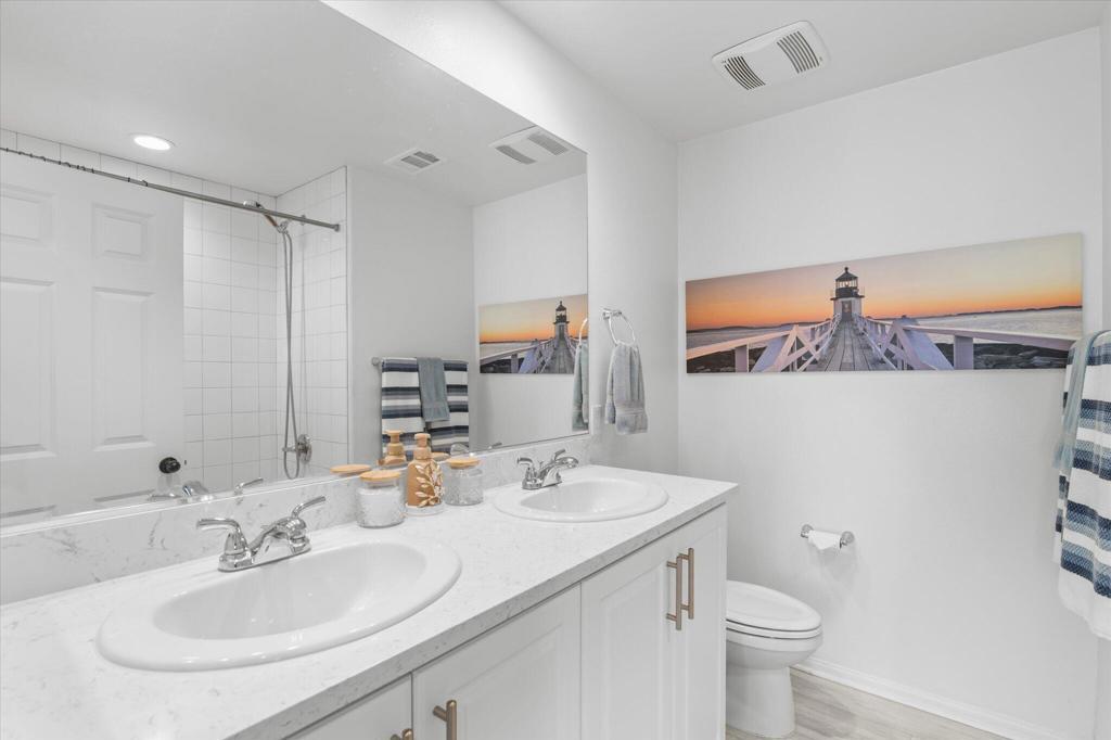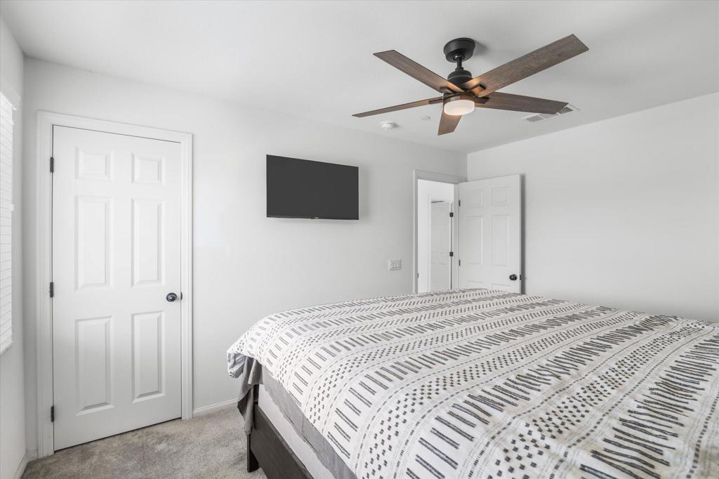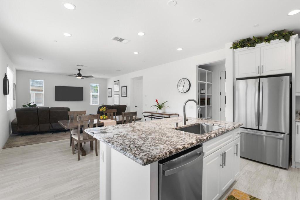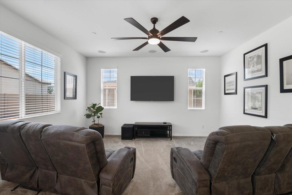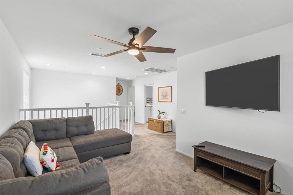 Welcome to Your New Home in the Highly Desirable Summerly Community!This beautifully upgraded and move-in-ready two-story single-family home offers everything you've been searching for--space, comfort, and incredible views! Nestled in a newly developed neighborhood, this 3-bedroom, 3-bathroom gem features a spacious open layout with a large loft, formal living room, cozy family room, and a 2-car garage.Step into the bright and airy family room, complete with light-catching windows and built-in surround sound--perfect for entertaining or relaxing. The adjacent dining area seamlessly connects to the gourmet kitchen, creating an ideal open-concept living space. The kitchen boasts a large center island with designer granite countertops, soft-close white cabinetry, stainless steel appliances, recessed lighting, and a generous walk-in pantry.Upstairs, you'll find a spacious loft, two secondary bedrooms, a full bathroom, and a luxurious primary suite. The primary suite features a large bedroom, walk-in shower, dual vanities, and an expansive walk-in closet.Step outside to a low-maintenance backyard loaded with upgrades--including a recently built 420-sqft storage room with two 7-foot roll-up doors and a separate man door. Whether you need space for work equipment, golf carts, dirt bikes, or quads, this area has you covered. The property also includes 12-foot RV gates, a permitted RV/boat driveway and parking area--eliminating the need for off-site storage!Additional highlights include:Low-lease solar panelsTankless water heaterFire sprinkler systemSeven added windows for enhanced natural lightConveniently located near shopping, golf course, parks, walking trails, lake activities, Storm Stadium, and the 15 freeway--this home truly has it all.Don't miss your chance--this stunning home is a must-see!