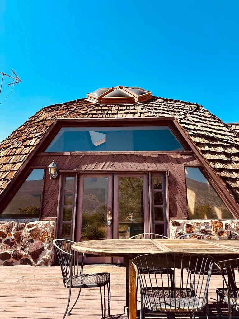 Own an iconic geodesic dome home in Pinyon Crest, just 20 minutes from El Paseo in Palm Desert. Set on 1.03 acres with stunning mountain views, this classic R. Buckminster Fuller design features a natural rock fireplace, custom stained glass, and abundant natural light. Enjoy a fenced yard, deck, spa, and ample space for outdoor living and development potential. The HOA maintains community-owned wells, providing fresh, clean water to all residents, graded roads, mailboxes and locking back gates for security and privacy. Pinyon Crest is a national monument and wildlife habitat, 10-20 cooler than the desert cities below. Home is being sold ''as-is, where-is'' and priced to sell--an outstanding opportunity to purchase in this unique mountain community.
