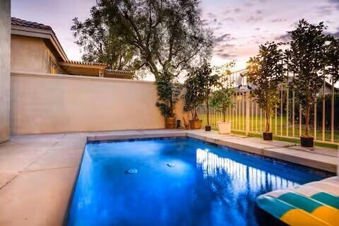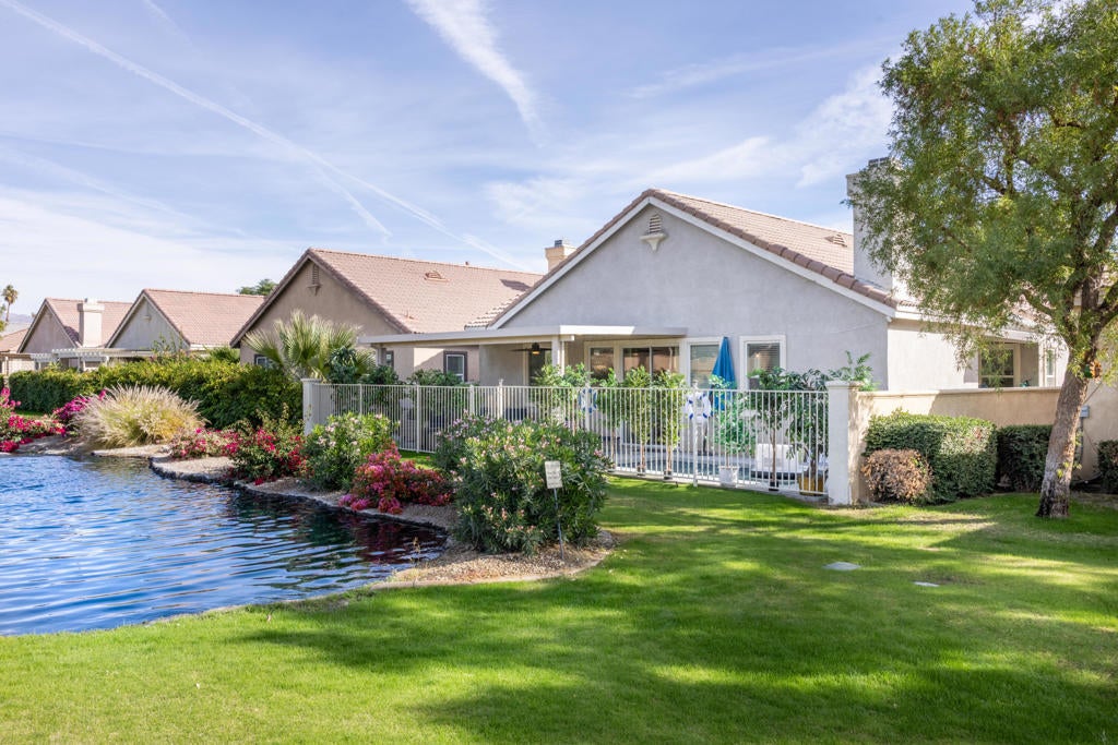 Honey stop the car! This custom designed 7 bed LAKEFRONT home in the beautiful Indian Palms community is waiting for you! Half a mile to shops, groceries and dining, but you won't want to leave! The open kitchen boasts sleek granite countertops and plenty of space for meal preparation against the backdrop of the pristine fountain. Throughout the home, you'll find brand new Pergo flooring, adding both style and durability for you and your whole family to make lasting memories. Sports and game lovers will appreciate the private golf putting green, croquet, sandbox for kids and HUGE game room w/air hockey, billiards, skee ball +. Step outside to your own private oasis, featuring new pebbletech pool/jacuzzi and big tanning shelf perfect for desert vibes. The backyard is unique, backing onto a picturesque pond and gated. It's kid friendly, creating a serene enchanting atmosphere. Two brand new patio covers, in both the back and side yard, provide ample shade and comfort for outdoor lounging or entertaining. Sought-after Indian Palms community has access to top-notch amenities including 3 community swimming pools, 3 pristine golf courses, tennis, bocce ball, and a well-equipped gym. This home offers the perfect blend of comfort, style and resort-like living. Don't miss this incredible experience! STR Permit #051548. Rates subject to change based on season, et al. Info provided deemed reliable but interested parties must verify all related to square footage, utilities, etc