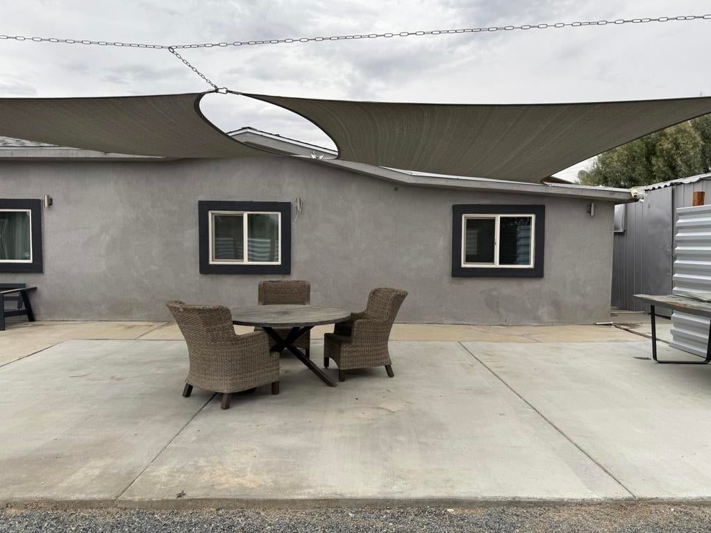 Welcome to your very own 1/2 acre Ranch! Beautiful property with sweeping mountain views and room to roam. This upgraded ranch home sits on a fully fenced 1/2 acre, offering privacy, style, and space to breathe. Walking as a 4 bed, 2 bath at approx. 1,400 sq ft, the home feels fresh and modern with new finishes throughout and a massive 12x30 shed for storage, projects, or play. Enjoy crisp, clean water from every tap with the premium Nuvia Pro Alkaline Water System included. Recent 2023 upgrades bring peace of mind and comfort--new roof, stucco, dual pane windows, a powerful 5-ton A/C heat pump, quartz countertops, tiled baths, and sleek LED lighting inside and out. Each bedroom shines with new mirrored closet doors, while the property's galvanized long-span fencing wraps the entire ranch in both security and style. This property is ready to enjoy from day one. Offered AS-IS, it's the perfect mix of classic desert ranch character and today's modern upgrades.