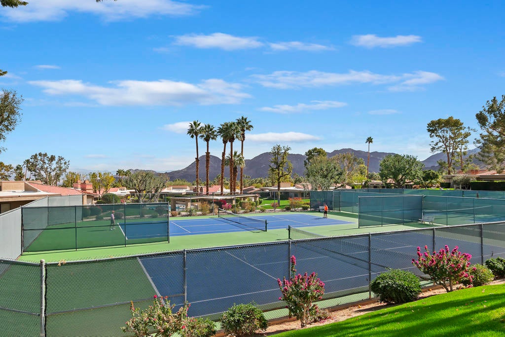 This fabulous turnkey, fully furnished condo is nestled in the serene Hidden Hills community, just below the prestigious Bighorn Golf Club, off Highway 74. Offering 2 bedrooms and 2 baths, this beautifully remodeled home boasts an open floor plan featuring a cozy fireplace and custom shutters throughout. The chef's kitchen is a standout, with sleek, new upgrades and abundant storage in custom cabinetry. The tranquil private patio provides the perfect outdoor space to relax and unwind. Notable upgrades include a newer HVAC system, washer and dryer, and a new hot water heater, ensuring comfort year-round. For your convenience, Spectrum cable and internet are included. Enjoy access to a wealth of amenities within the gated community, including multiple pools and spas, as well as 2 tennis & 2 pickleball courts. The condo is just 2 miles from El Paseo, offering excellent dining, shopping, and entertainment options, and is close to hiking, biking, and nature walks for outdoor enthusiasts. Available after December 19, 2025. Seasonal lease price $4200 a month..
