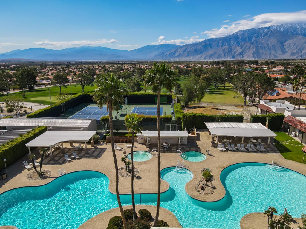 Price adjustment! Large 3BR/2.5BA single family home with private pool and spa in the sought after Mission Lakes Country Club *Modern 2005 construction with an open floor plan and magnificent vaulted ceilings *Chef's kitchen with center island and stainless steel appliances and a 4-burner induction cooktop with pop up vent *Spacious dining area overlooking the private backyard *Grand living area with gas fireplace and direct access to a new deck, pool and spa added in 2021 *Primary bedroom with walk in closet and spa like bath with soaking tub and separate shower with built in seating bench *Guest bedroom with en-suite bath *Den/3rd bedroom is perfect for guests or as a home office *1/2 bath and separate laundry room with a full size washer & dryer *Internal access to a 3-car side by side garage with additional parking in the driveway *Excellent closet space, brand new recessed lighting inserts and modern screw less electrical and switch plates throughout *Fresh interior paint job and brand new carpet in the bedrooms *Owner solar purchased in 2022 *Dual zoned central heat and AC plus swamp cooler; AC units installed new in 2022/2023 *New hot water heater in 2022 *2386 sq ft and built in 2005 (per tax record - not verified by sellers or agent) *HOA Dues: $465/mo (includes use of the club house, gym, golf course, tennis, community pool and dining/bar options)