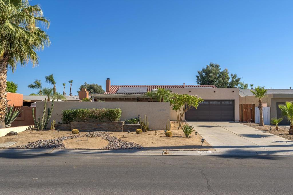 The main photo says it all- Welcome to this charming 3 bed 2 bath 1400+ sq foot single family home in the desirable non gated community of Palm Desert Country Club community. From your private, gated pool area, enjoy spectacular southern mountain views while relaxing by the built in fire pit, sunken spa or under the covered seating area on the stamped concrete patio.As you move toward the main entrance you will find a cozy outdoor dining space with convienent pass through to kitchen. Inside the living room highlighted by vaulted ceiling, full stone fireplace, oversized patio doors that open directly to the pool perfectly framing those breathtaking southern mountain views. Kitchen has been updated w/ SS appliances, granite counters & ample cabinets. Garage access comes right into the kitchen. Primary bedroom features en suite bath and private patio door leading to the back yard. The 3rd bedroom is a versatile space, also with patio access, ideal for a guest room, office, or hobby area. The spacious back yard is enhanced with a new paver patio providing even more outdoor space.Palm Desert CC Golf course is just down the street and your minutes from world-famous Indian Wells Tennis Gargen home to the BNP Paribas Tennis tournament. Shopping, groceries, access to Interstate 10 or the new Acrisure Arena, home to the Coachella Valley Firebird AHL hockey team is all just a short drive away.
