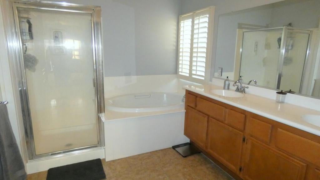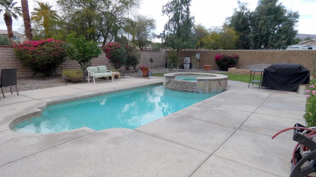 This is a beautiful Tuscan style house with tile roof, high ceilings and open great room floor plan. Plantation shutters with lots of light pouring in. The master suite is enormous with plantation shutters. The master bath has double sink vanity, double door walk-in closet, tub and separate clear glass shower. The kitchen is very spacious, with an island and breakfast bar as well as casual eating, lots of cabinets and a cozy breakfast overlooking the front patio. Also, fresh paint and brand new vinyl flooring. The house includes a fantastic one bedroom, one bath casita.. The casita has its own entry off entrance patio and is perfect for guests, as an office or a great 4th bedroom. There are ceiling fans in the great room and the bedrooms. The large backyard has pool, spill-over spa and grassy area for outdoor fun. The community includes a nice playground area for kids. The tenant must provide the proof of income and have good credit score. The tenant pay for the utilities. . Also, tenant to purchase renter's insurance .