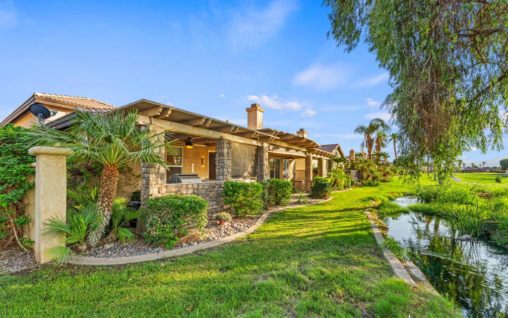 Prime Investment Opportunity - 3-Bedroom Home with RV Garage & No Rental RestrictionsThis upgraded 3-bedroom, 3.5-bath home--including a private attached casita with its own full bath--is a rare investment opportunity in one of the desert's most sought-after locations.A major highlight is the 5014 RV garage (with direct access to the home), plus an additional 2-car garage. Investors will immediately see the potential--this oversized RV garage can be kept as-is for added value or converted into additional living quarters, a game room, or even a large rental suite to maximize income.The home features recent upgrades including newer flooring, fresh interior paint, newer AC units, and a saltwater Pebble Tec pool & spa. A private gated courtyard with a custom water feature, Alumawood cover, ceiling fan, and multiple sitting areas adds to its rental appeal. Custom electric outdoor privacy screens make the backyard comfortable year-round, while the property backs onto a peaceful water stream and greenbelt for extra privacy.Best of all, this section of the community has no rental restrictions, making it a turnkey short-term rental with high-demand potential. Its prime location within walking distance to Coachella, Stagecoach, and the Empire Polo Club ensures year-round interest from festival-goers and vacationers alike.Sold fully furnished and move-in ready, this property offers a lucrative opportunity to generate strong rental income immediately. With its combination of location, flexibility, and upgrades, this is the best-priced investment home in the community--a must-see for serious investors. This is the perfect 1031 tax exchange purchase for the serious investor looking to generate cash flow for years to come.