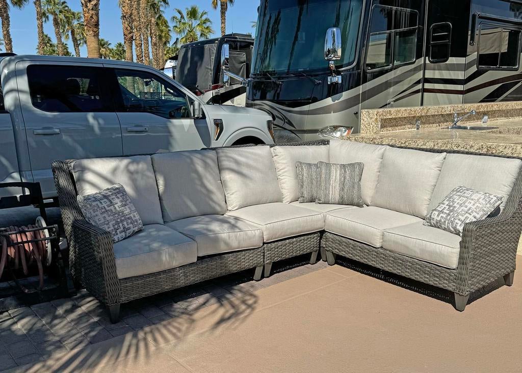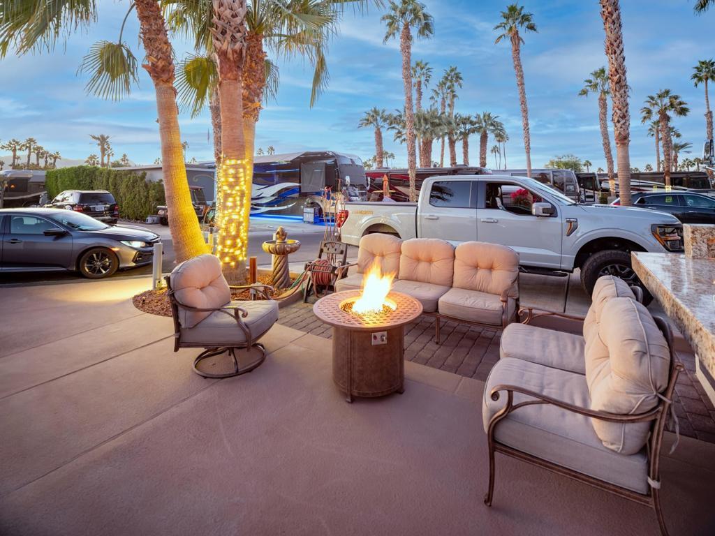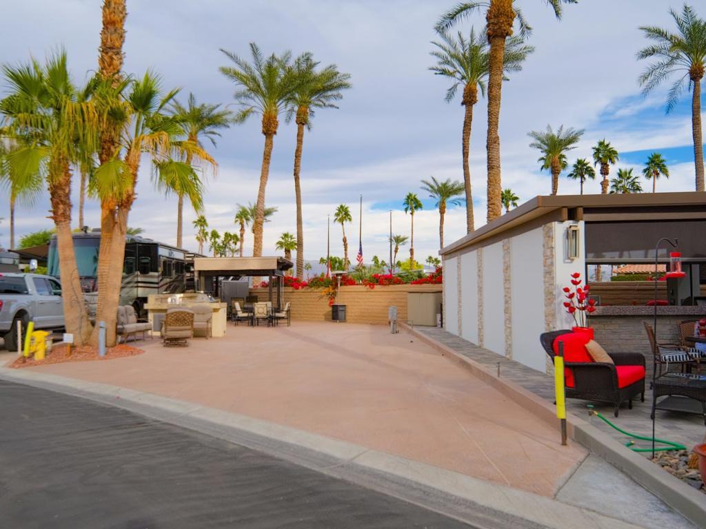 After a fun evening at the clubhouse, retreat to your private oasis at Outdoor Resort Indio. This quiet, perimeter lot is ideal for entertaining, with a spacious outdoor kitchen featuring granite tile countertops, stainless appliances, a large BBQ, and a 10x10 pergola with an aluminum roof. Custom furniture covers, exterior lighting, a ceiling fan, and manual and electric shades ensure comfort and style.The lot accommodates a 45-foot motorcoach and two cars, with tasteful landscaping adding to its charm. Conveniently located near the pool, sauna, and laundry, it combines privacy with easy access to amenities.As a lot owner, you'll also enjoy world-class resort features, including an executive golf course, clubhouse, pickleball courts, and more. This is your opportunity to own a stunning retreat and embrace the luxury RV lifestyle at Outdoor Resort Indio.ORI is a gated Class A RV park. Only class A RVs.