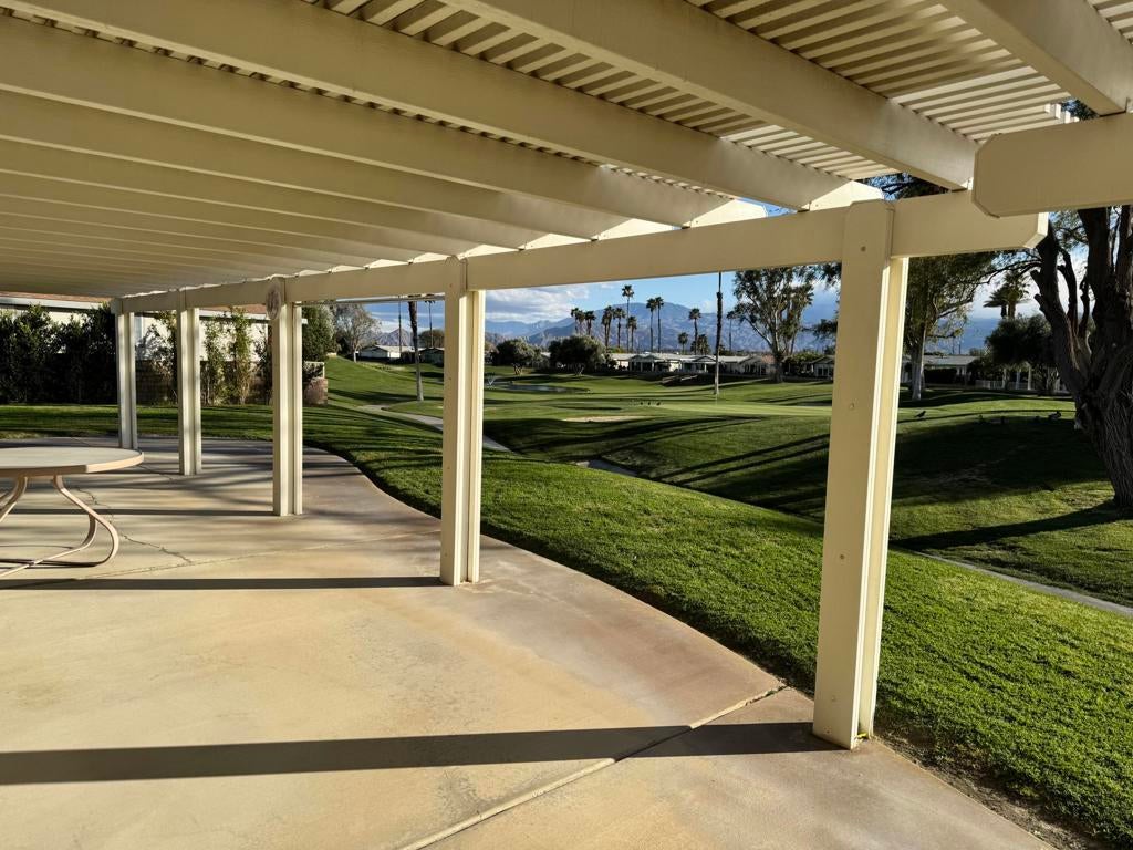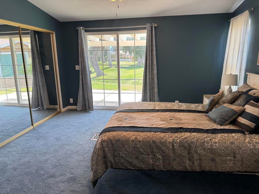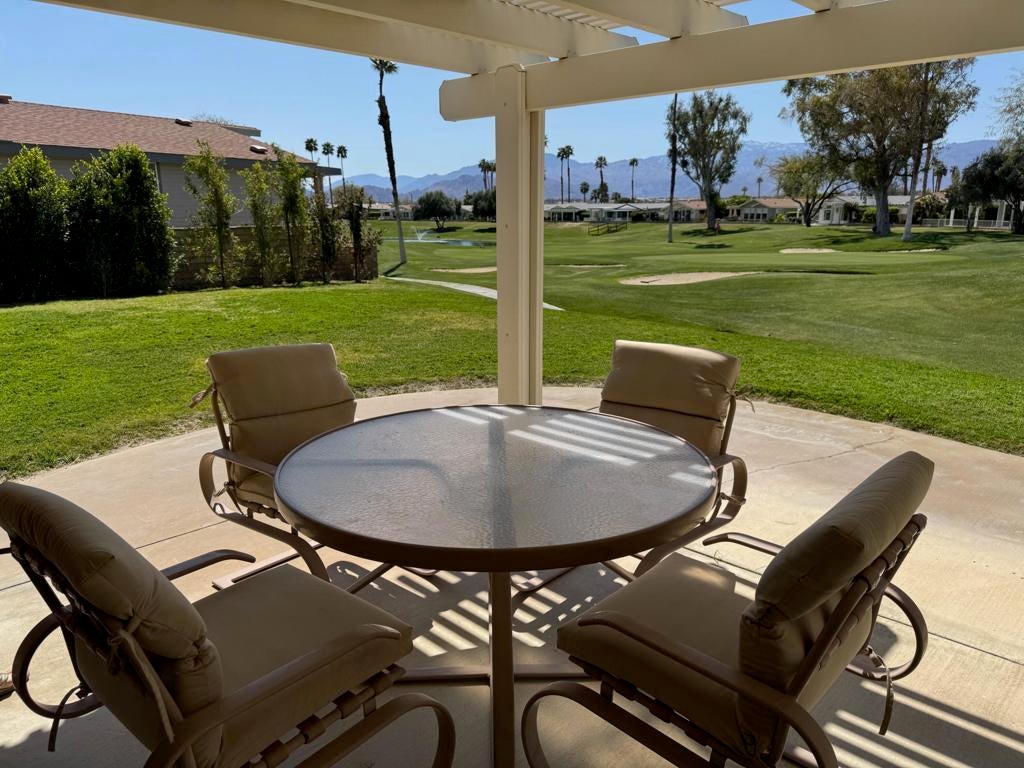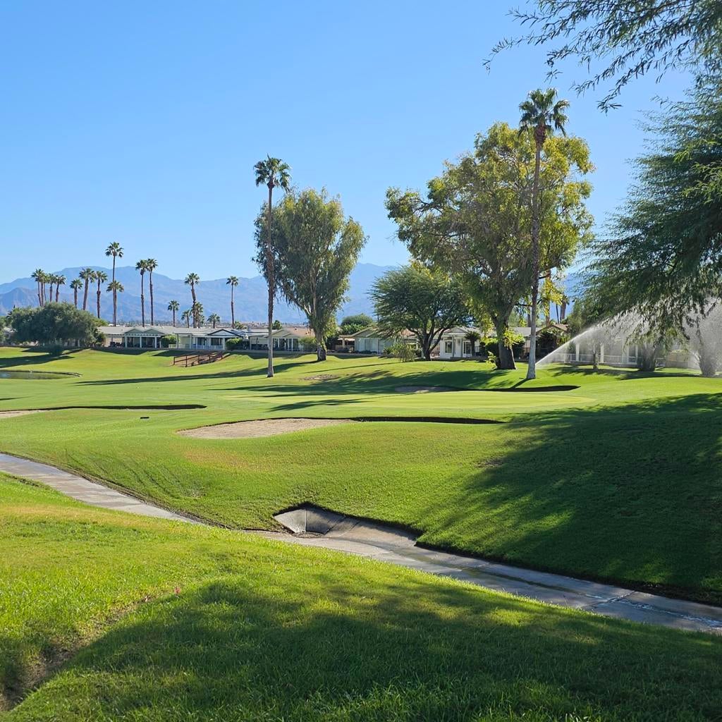 Welcome to this stunning, beautifully remodeled, Golf Course property located in the coveted 55+ community of Jack Ivey Ranch. This completely furnished, move-in-ready home offers everything you need for luxury living, including a golf cart, linens, bedding, dishes, and electronics. Set on a large, quiet 9,583 sq. ft. corner lot, this Mediterranean-style home boasts 2 bedrooms, 2 bathrooms, and a spacious office/den with a futon. This home has an open floorplan that provides ample space for both comfort and convenience. Enjoy panoramic views of the 10th Hole on the golf course, and the majestic San Jacinto and San Gorgonio Mountains from your expansive backyard patio. Inside, you'll find elegant upgrades such as new windows, fresh paint, new flooring throughout, stainless steel appliances, quartz countertops, and modern recessed lighting. With a new furnace and A/C (2022), a new water heater (2023), and a well-maintained landscape, this home is both beautiful and efficient. Located just steps away from the golf course and offering easy access to local amenities, this home is truly a gem. Don't miss the chance to own this beautifully remodeled home with breathtaking views in a peaceful and welcoming community! This home is being offered Turnkey Furnished. Ivey Ranch CC & GC, is a gated, senior community of manufactured homes integrated with a 9 hole golf course, Pro-shop, Driving Range, 4 community pools, 2 community spas, Club House and a Seasonal Restaurant. In Ivey Ranch you own the land.