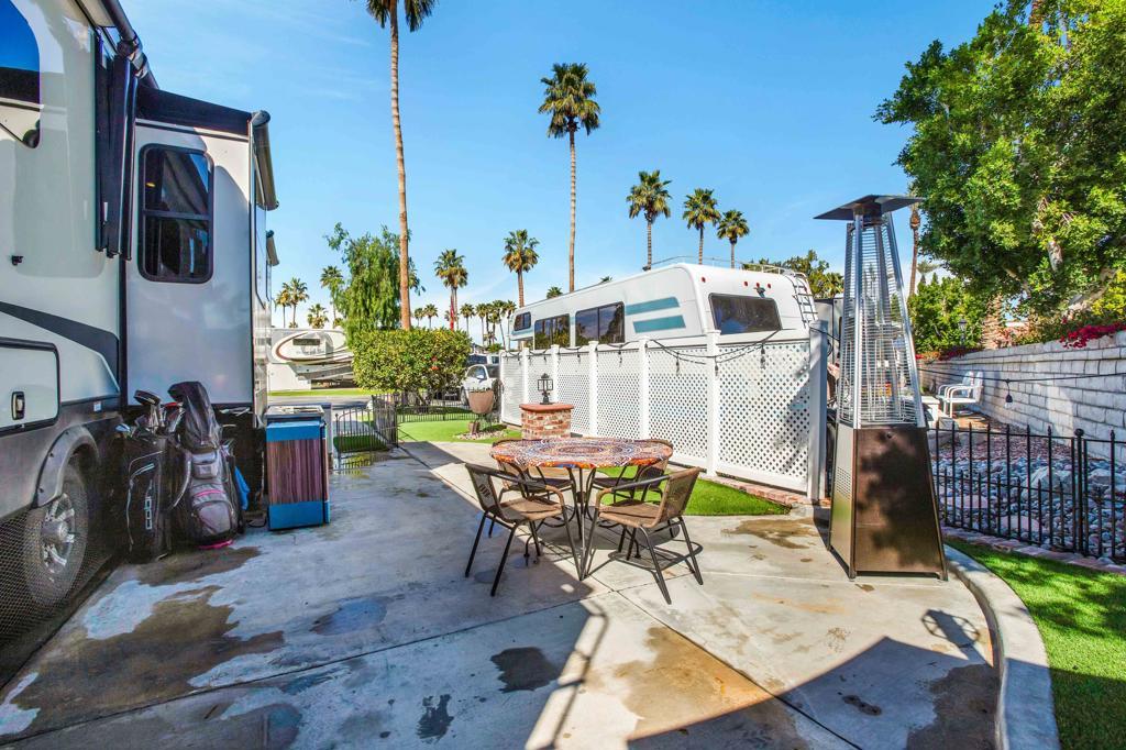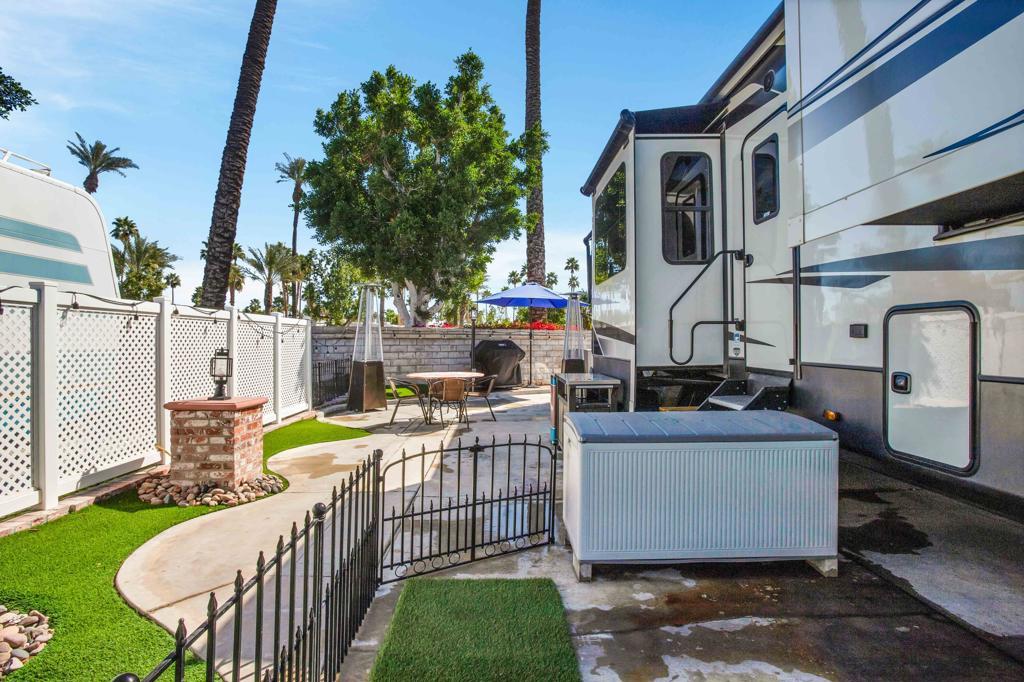 Discover the epitome of convenience and beauty with this lot near the La Palma Clubhouse and resort entry/exit. Lush fruit trees and expertly designed artificial turf accents adorn the landscape. Marvel at the stunning mountain and golf course views from the front, creating the perfect setting for your dream escape.Outdoor Resorts Palm Springs is a Five Star RV Resort Community combining luxury with affordability. It is a guard gated resort that sits on 137 beautifully landscaped acres with 27 holes of executive golf, 10 tennis courts, 13 pickleball courts, 8 swimming pools, a fully equipped fitness center, espresso bar, sports bar, beauty salon/barber shop, full-service restaurant, convenience store, 2 club houses, activities, special events and so much more.