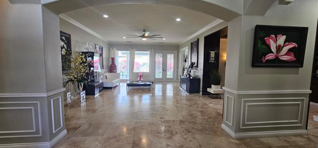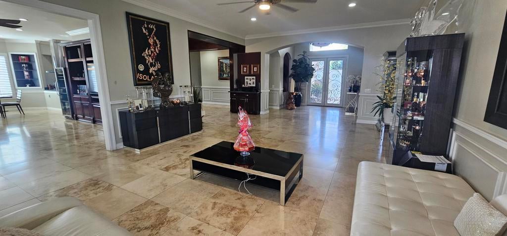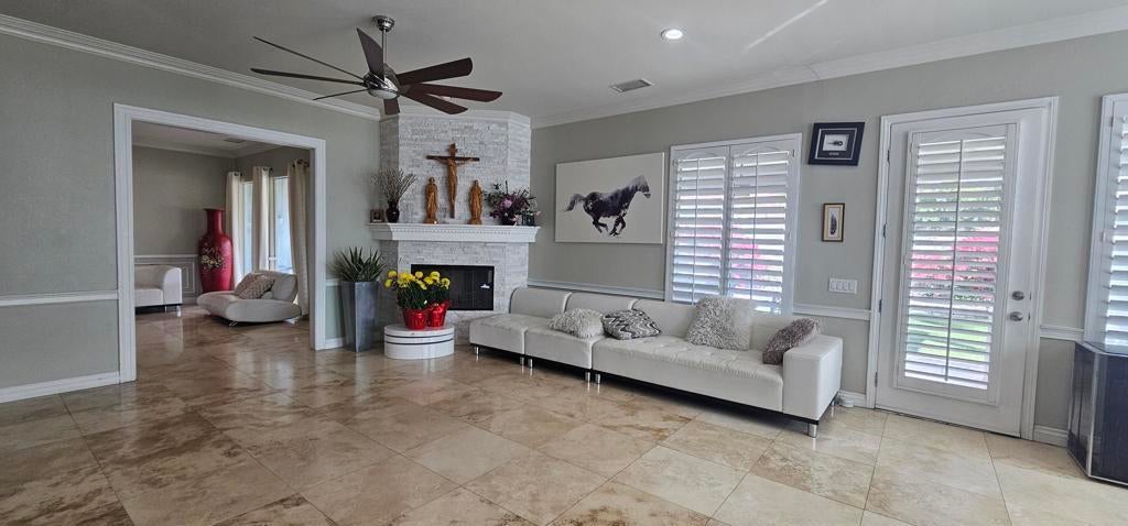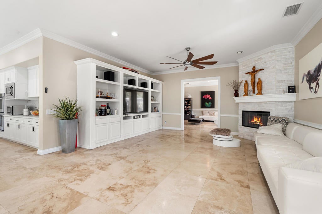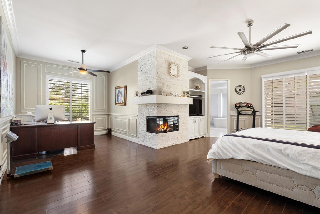 Exquisite Home in the Prestigious Gated Community of Versailles. Sold Furnished!Step into luxury with this breathtaking 4-bedroom, 4-bathroom home, nestled in the highly sought-after gated community of Versailles. Boasting over $400,000 in premium upgrades, this masterpiece seamlessly blends elegance, comfort, and modern design.From gorgeous flooring to an ornate wrought iron gate, every detail has been thoughtfully curated. The gourmet kitchen, fully updated as of March 14, 2025, features top-of-the-line finishes and flows effortlessly into the family and breakfast rooms, both warmed by a cozy fireplace. French doors in the living room open to a sprawling patio, creating an incredible indoor-outdoor living experience.The outdoor space is an entertainer's dream, complete with a built-in barbecue, dedicated sink, and a tranquil Koi pond surrounded by lush, mature landscaping. The expansive backyard offers a serene retreat with breathtaking mountain views, perfect for both relaxation and entertaining.The updated master suite is a private sanctuary, featuring its own fireplace, office area, and direct patio access. The spa-like ensuite includes dual vanities, a soaking tub, a separate shower, and a spacious walk-in closet.With a 3-car garage and countless additional upgrades, this home is an absolute must-see. Schedule your private tour today and experience the elegance of Versailles living!