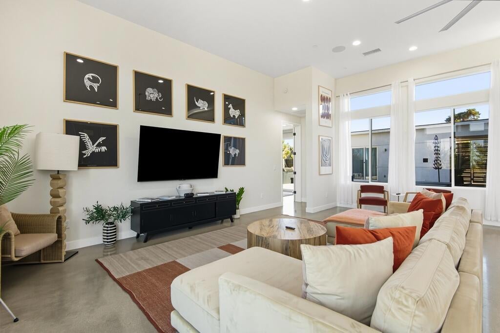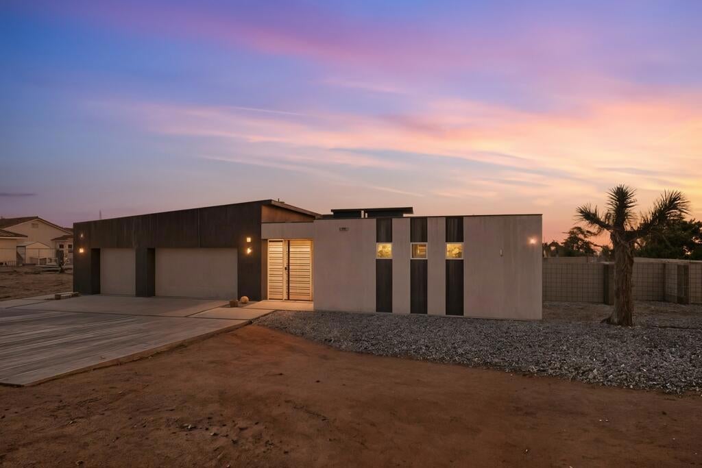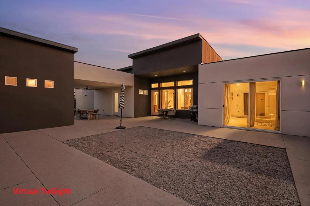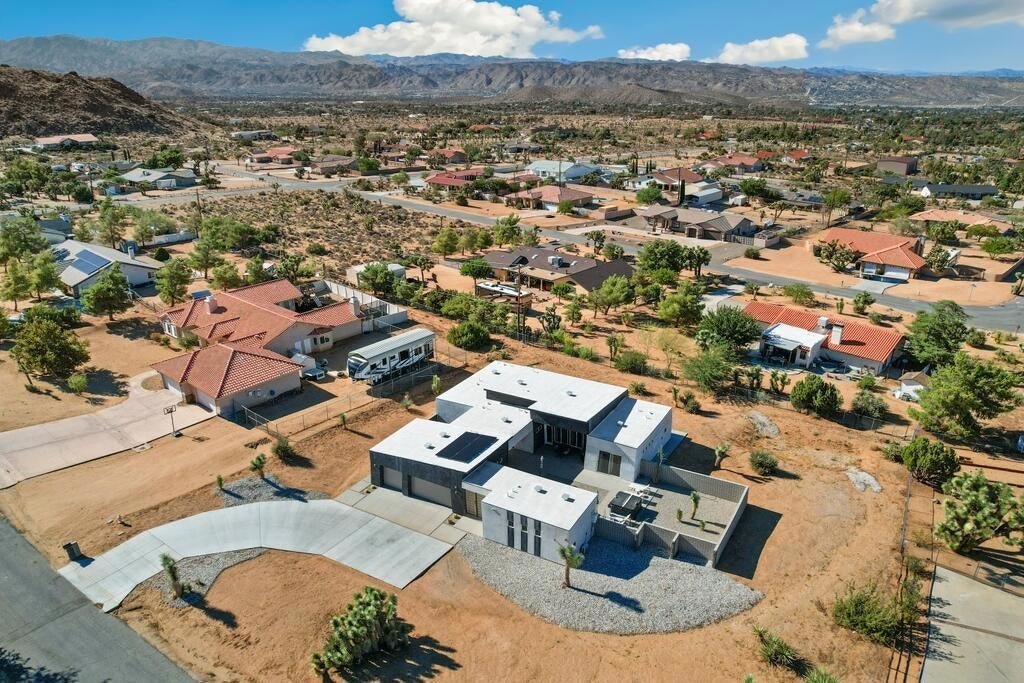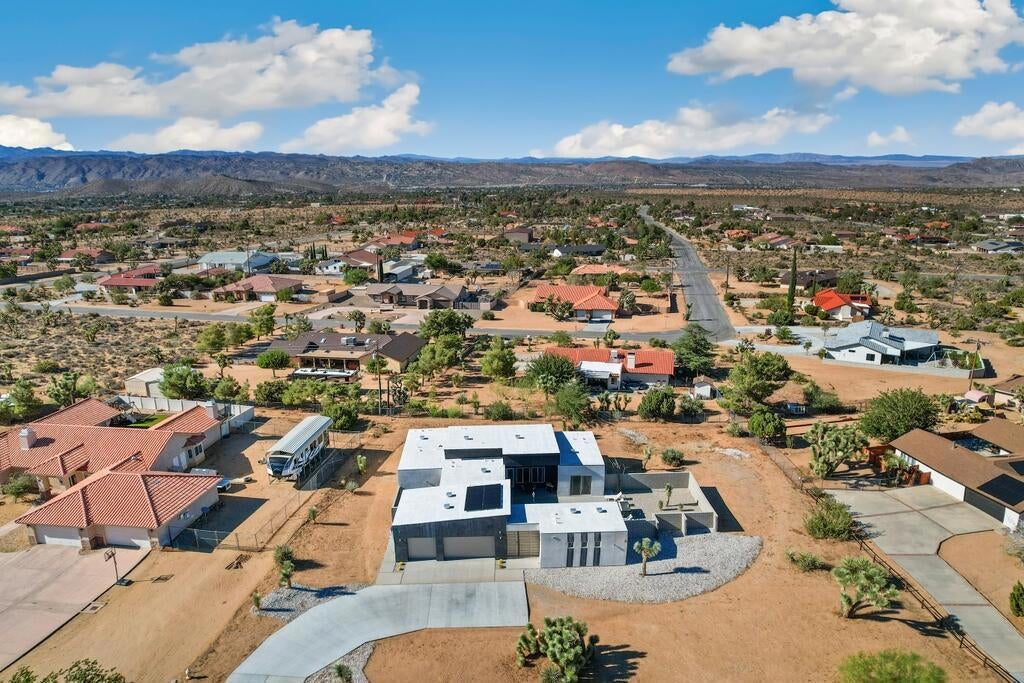 Enter into modern desert luxury with this custom home! This 4-bedroom, 4.5-bath home (including the private casita) blends style, comfort, and flexibility. Behind a custom gate, enjoy a spacious enclosed courtyard with multiple outdoor gathering areas--perfect for entertaining or relaxing under the desert skies. Inside, the dramatic open living room features soaring ceilings + designer finishes, and an entertainer's dream kitchen with a large quartz island and premium stainless steel appliances. Additional highlights include a 3-car garage, RV parking, and eco-conscious upgrades such as 10 paid solar panels and a tankless water heater. After a day exploring Joshua Tree National Park, unwind on your private courtyard patio while enjoying breathtaking sunsets. Ideal as a personal retreat or short-term rental, this home delivers modern luxury and desert living at its finest--don't miss this rare opportunity!