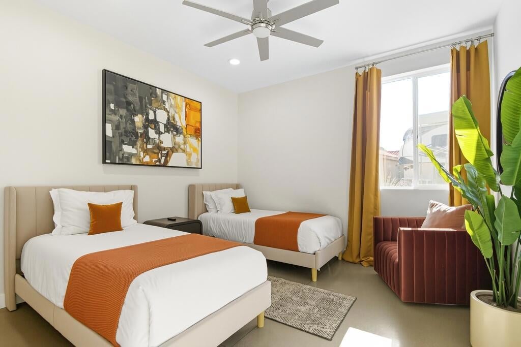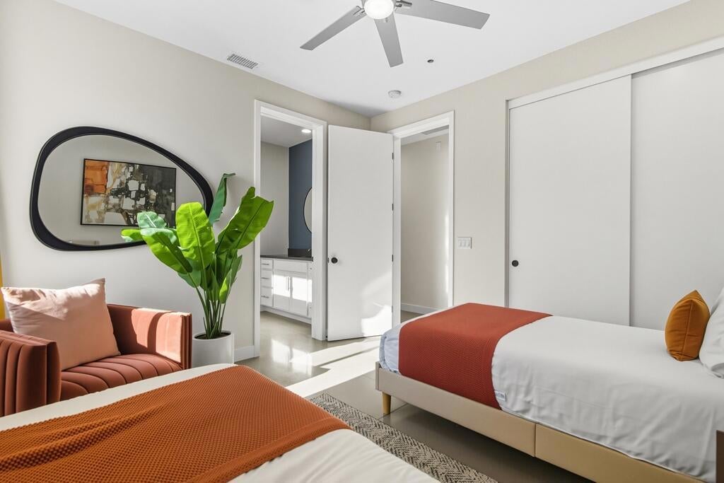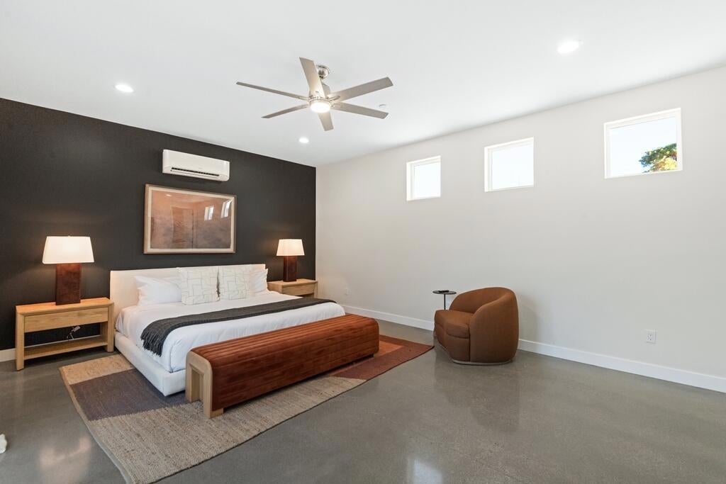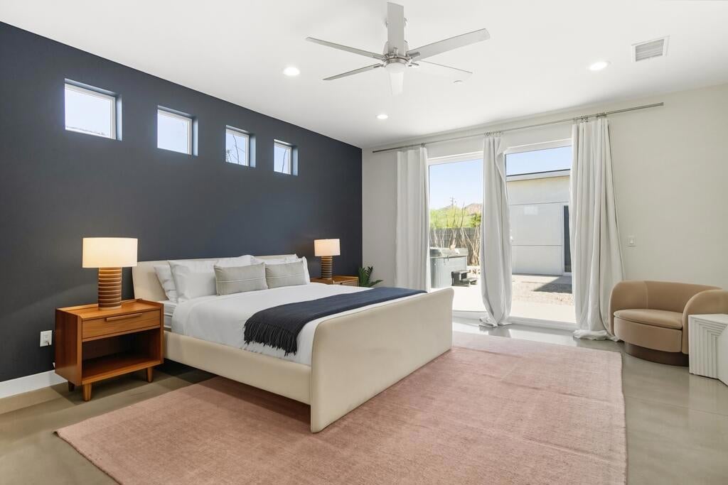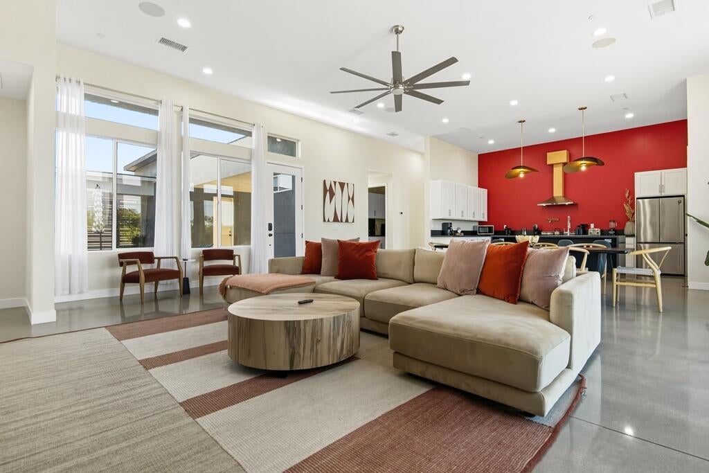 Enter into modern desert luxury with this custom home! This 4-bedroom, 4.5-bath home (including the private casita) blends style, comfort, and flexibility. Behind a custom gate, enjoy a spacious enclosed courtyard with multiple outdoor gathering areas--perfect for entertaining or relaxing under the desert skies. Inside, the dramatic open living room features soaring ceilings + designer finishes, and an entertainer's dream kitchen with a large quartz island and premium stainless steel appliances. Additional highlights include a 3-car garage, RV parking, and eco-conscious upgrades such as 10 paid solar panels and a tankless water heater. After a day exploring Joshua Tree National Park, unwind on your private courtyard patio while enjoying breathtaking sunsets. Ideal as a personal retreat or short-term rental, this home delivers modern luxury and desert living at its finest--don't miss this rare opportunity!