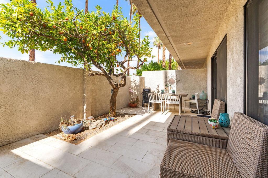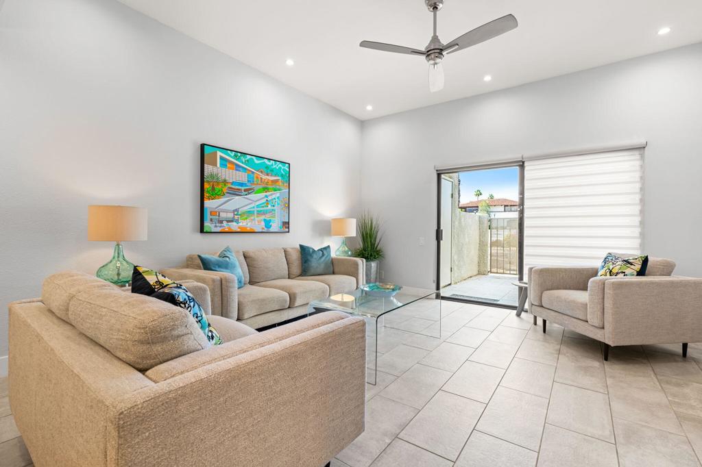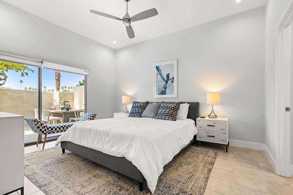 Beautifully Remodeled Condo in the Heart of Downtown Palm Springs!This stylishly updated and turnkey furnished condo offers modern luxury and unbeatable convenience--available for a 1-year lease. The sleek kitchen features stunning waterfall quartz countertops, brand-new stainless steel appliances, and abundant natural light. The primary suite offers a private retreat with a plush king bed and en suite bath showcasing elegant stone finishes. The guest bedroom is equally inviting, complete with a comfortable queen bed and excellent separation for added privacy. Throughout the unit, marble ledger accent walls add a touch of sophistication. Enjoy your own private patio with a dining set and lounge chairs, ideal for relaxing or entertaining. The community offers multiple pools with breathtaking mountain views. In-unit washer and dryer included. All just blocks away from the best restaurants, nightlife, and attractions Palm Springs has to offer. A perfect blend of comfort, style, and location!
