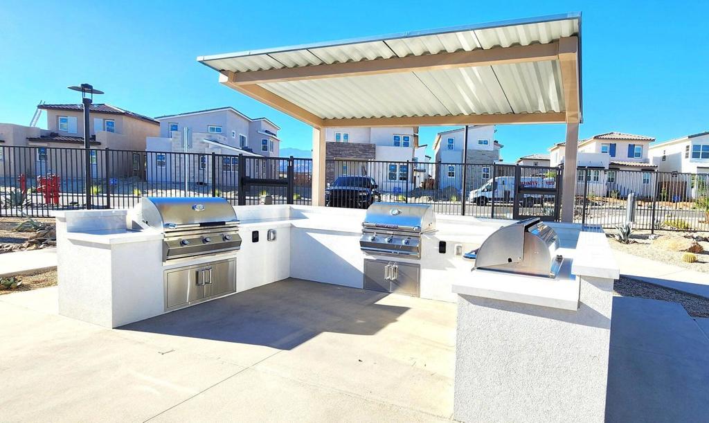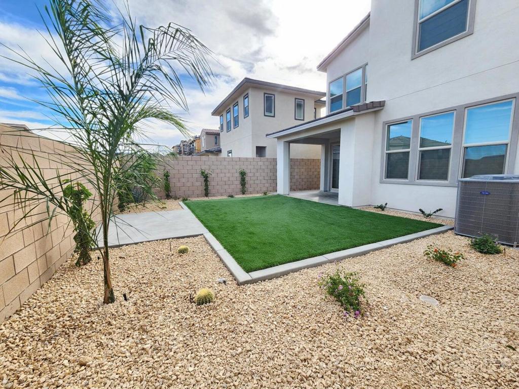 Move -in available NOW!. Step into this gorgeous open-concept home featuring a spacious great room with a modern kitchen island and PAID OFF solar panels that help save on electricity costs. Enjoy tile and laminate flooring throughout, upgraded window blinds, and the convenience of a Washer, Dryer, and Refrigerator already included.Relax and entertain in your backyard, complete with low-maintenance artificial turf and beautiful desert landscaping.Residents of The Grove enjoy an array of resort-style amenities, including a resort pool, lap pool, kiddie pool, spas, pickleball and bocce courts, fitness center, shaded playground, event lawn with stage, patio covers, fire pit, and barbecue areas--perfect for fun and relaxation year-round.Located close to major shopping centers and with easy access to the I-10 freeway, this home combines luxury, comfort, and convenience.Don't miss out--contact the listing agent today for more details. Pet Restrictions.